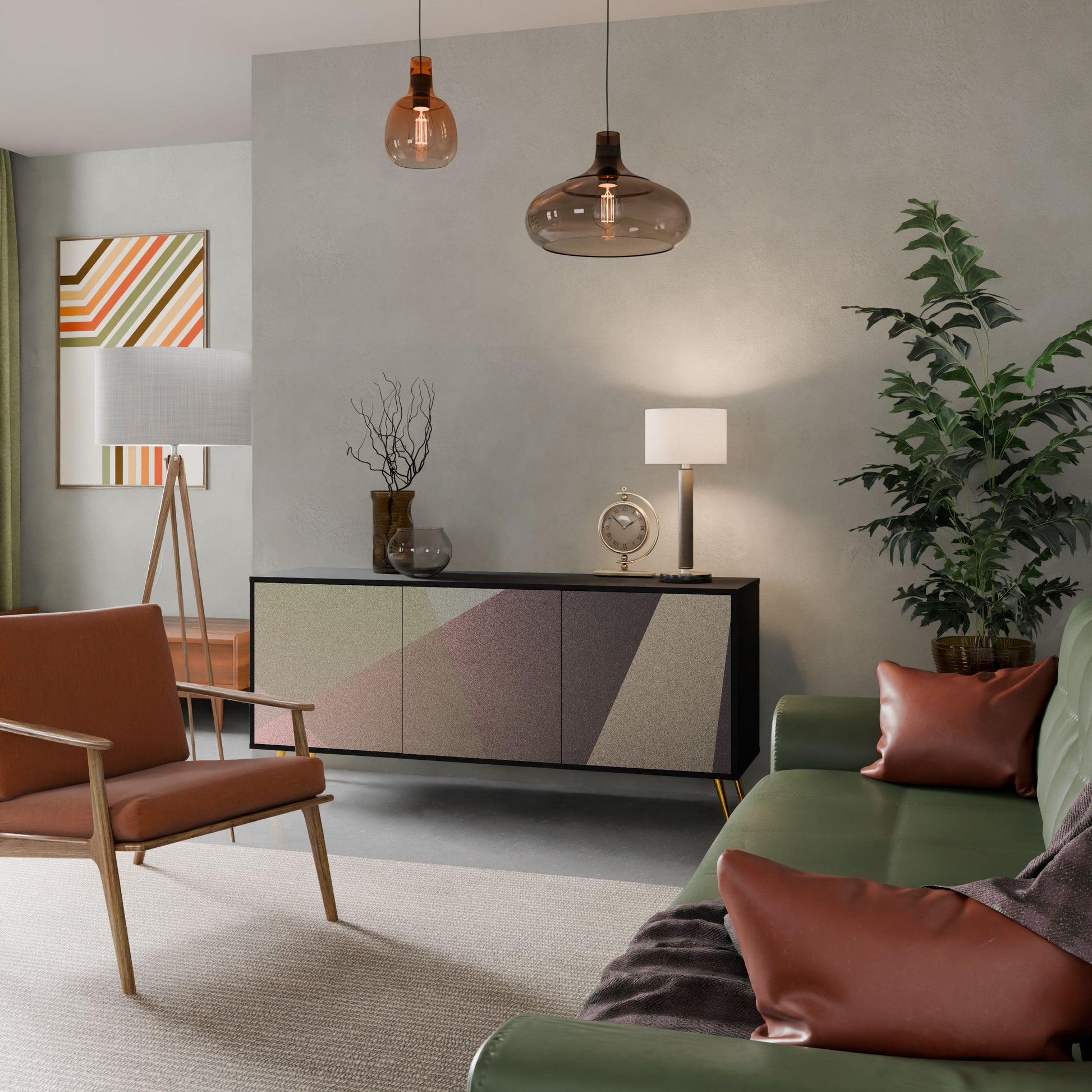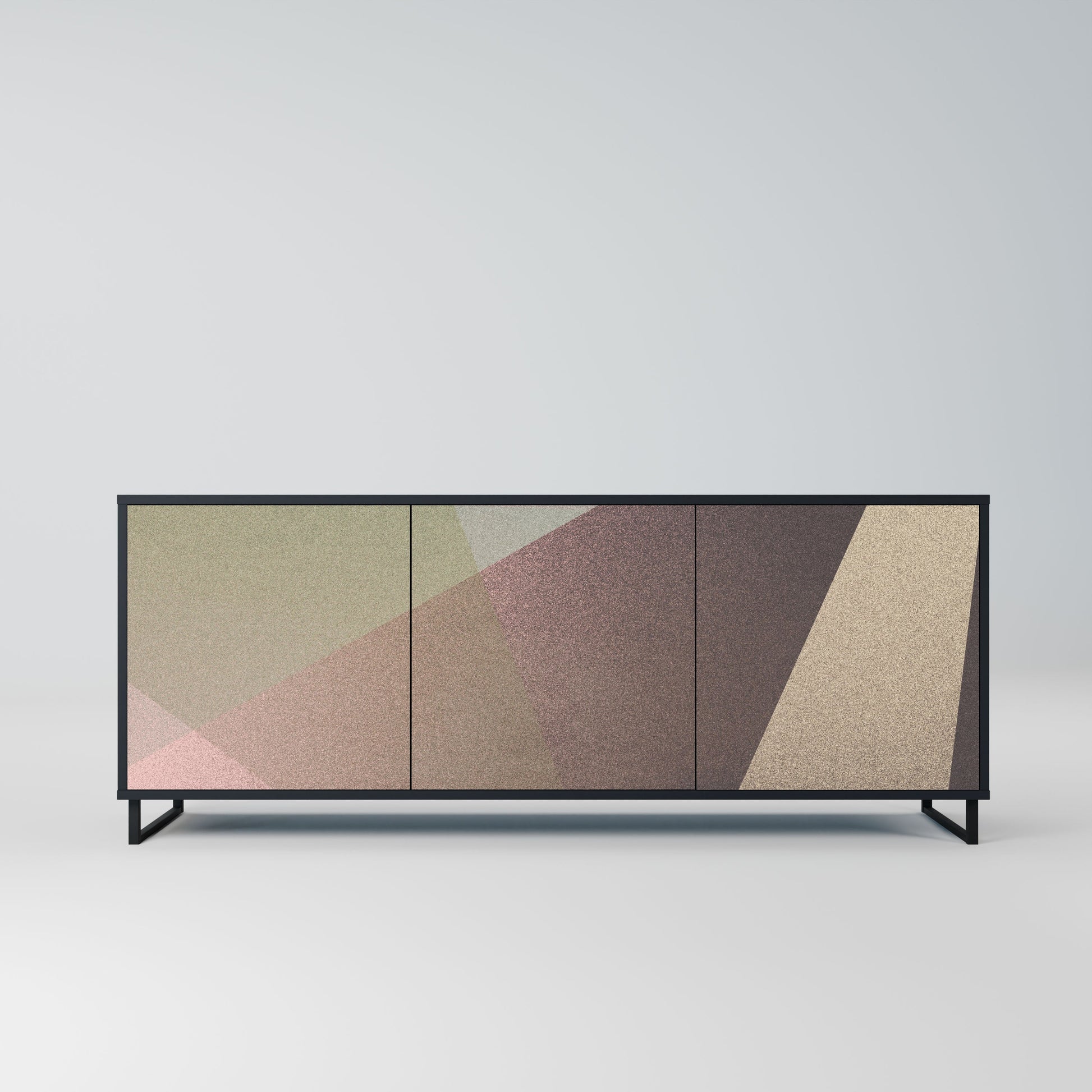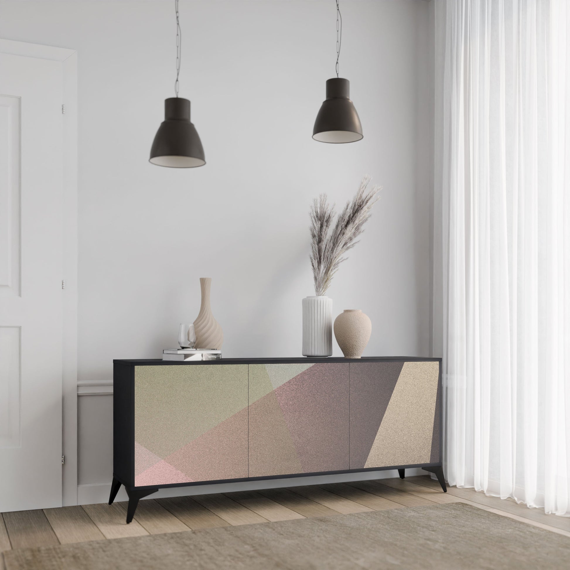 BEIGE GEOMETRY 3-Door Sideboard in Black Finish