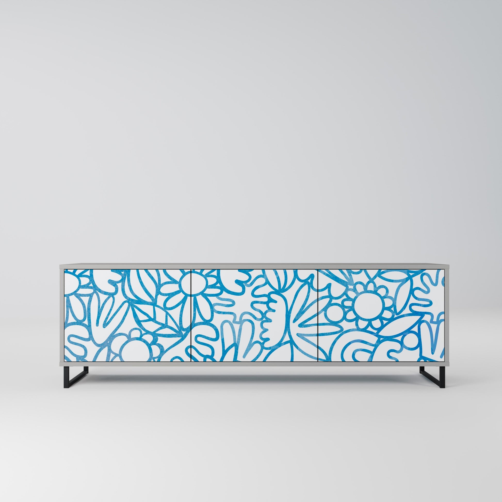 The grey body of the stand creates a refined, modern accent that pairs beautifully with industrial and minimalist arrangements. The fronts with a designer print add character and uniqueness, making this piece not only practical but also a standout decorative element.