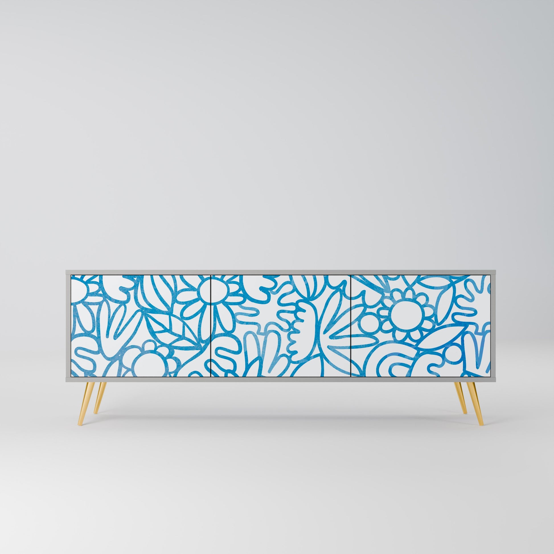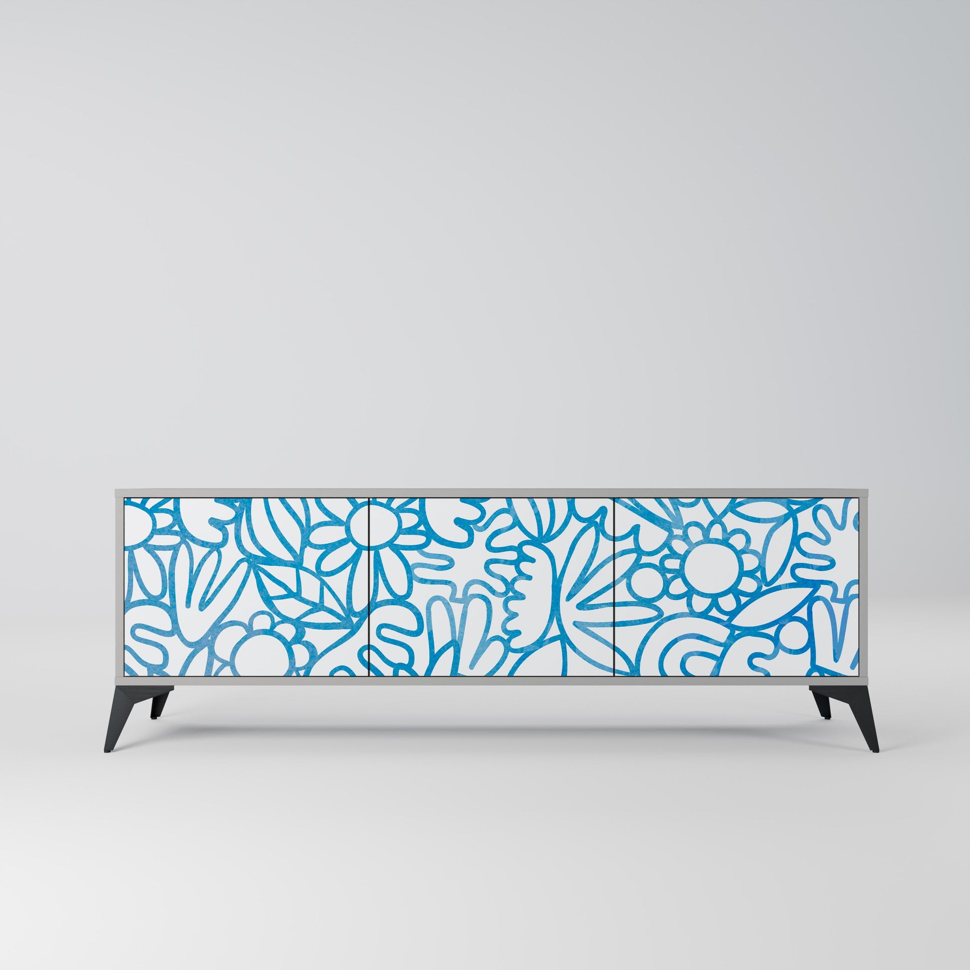 BLOOMY MORNING 3-Door TV Stand in Grey Finish