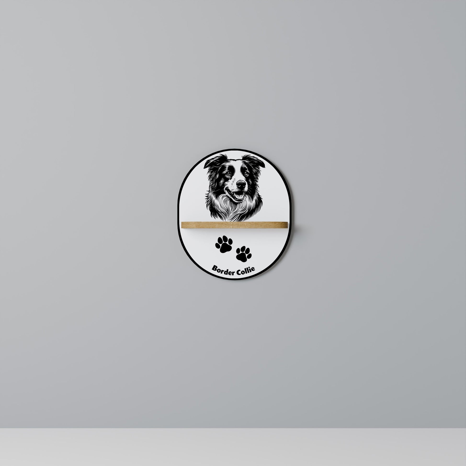 BORDER COLLIE Oval Art Shelf In Oak Effect