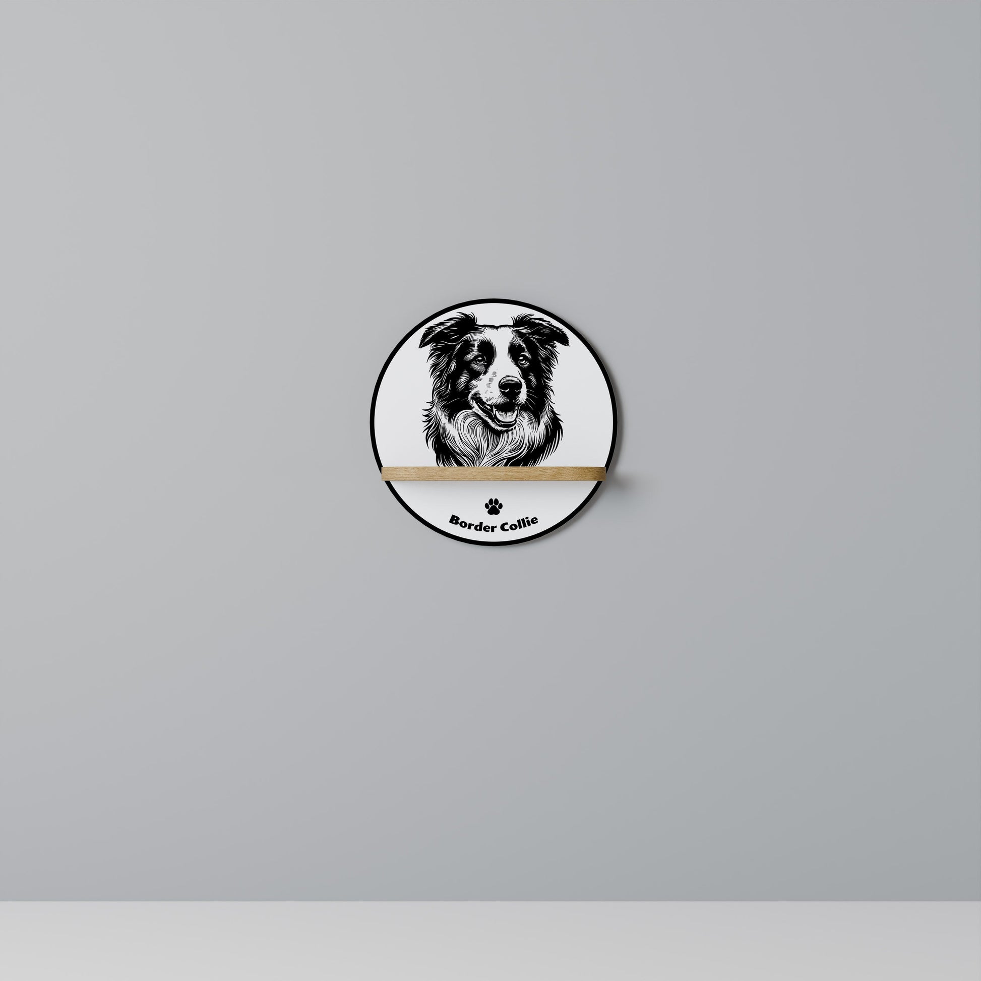 BORDER COLLIE Round Art Shelf In Oak Effect
