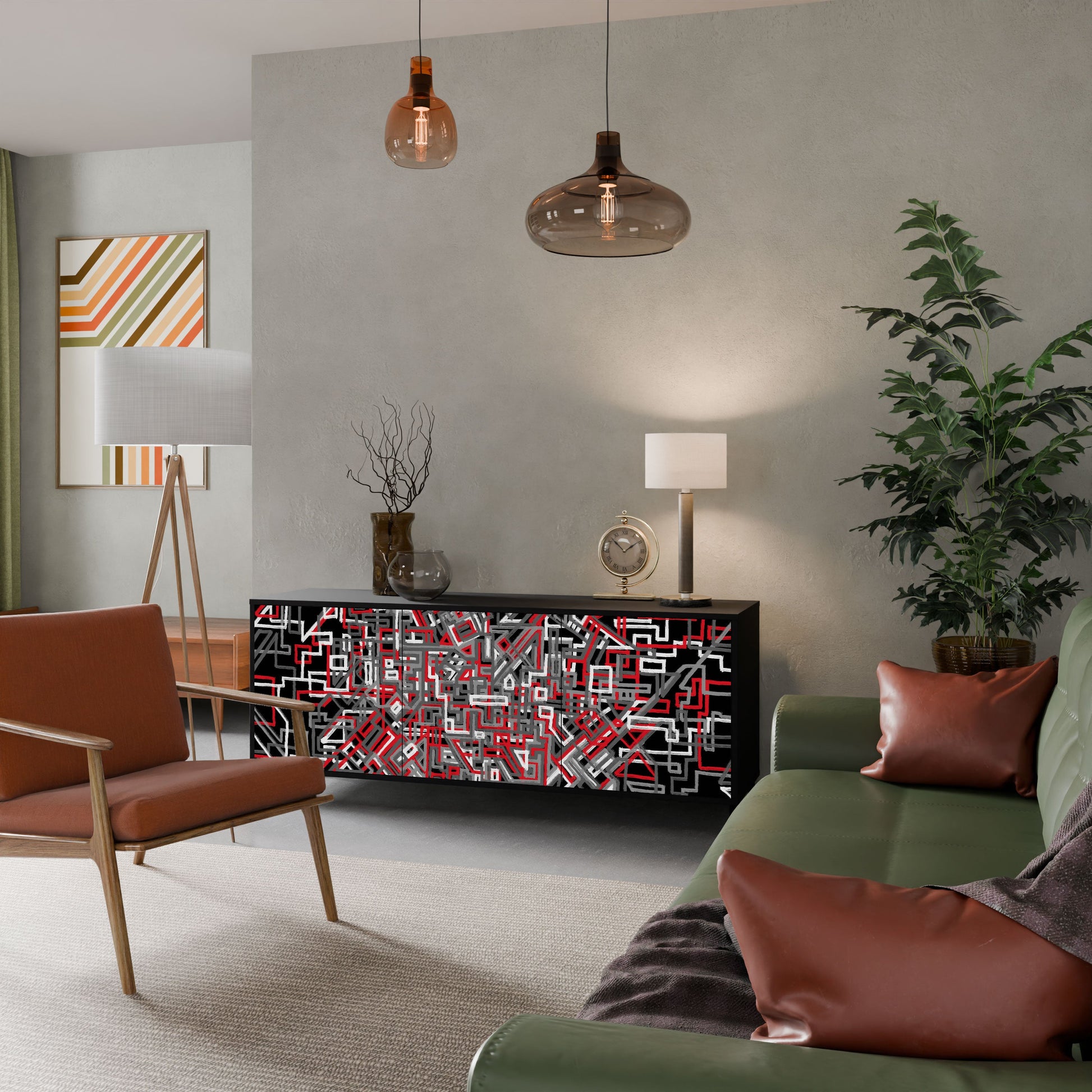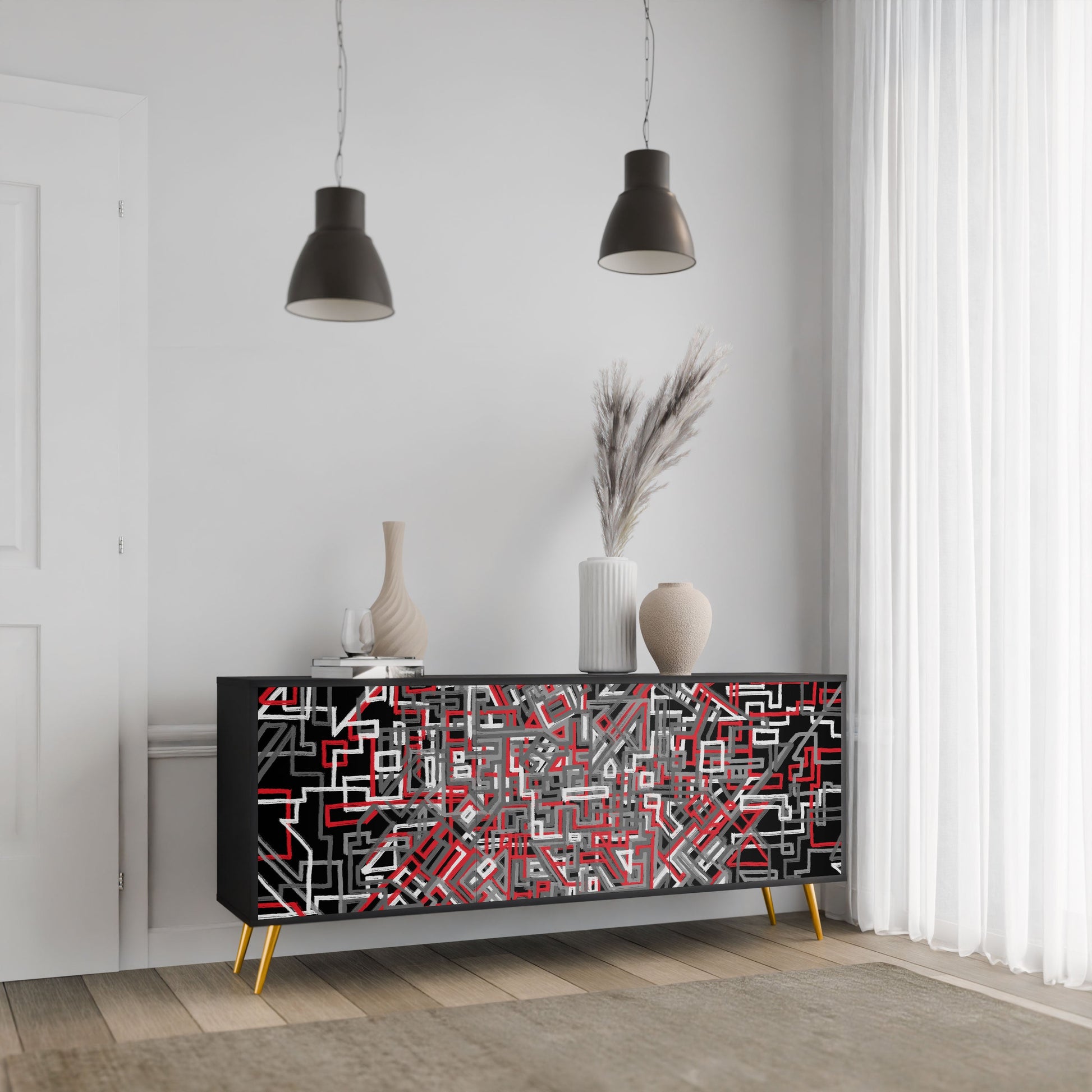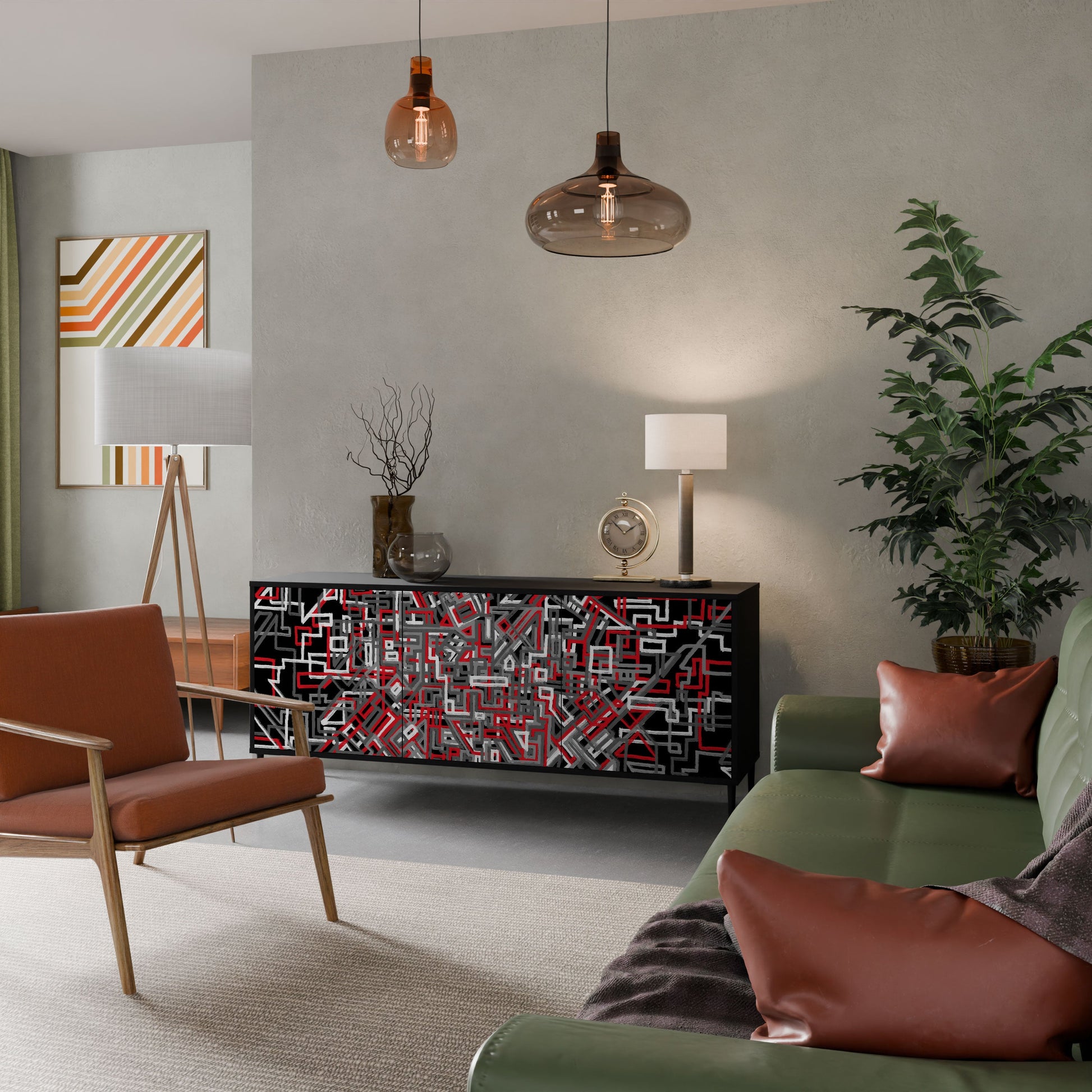 BROKEN LINES 3-Door Sideboard in Black Finish