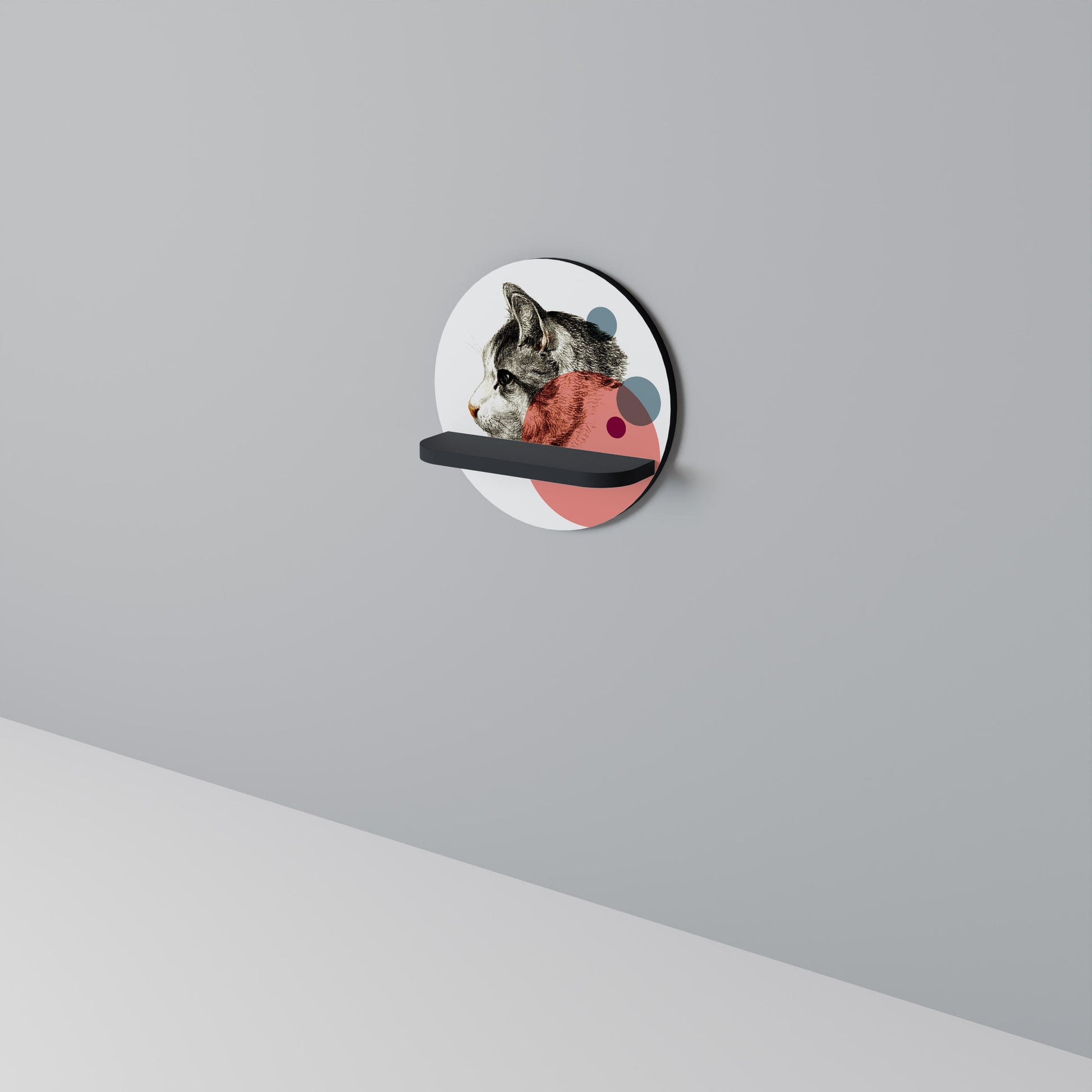 BUBBLE CAT SKETCH Round Art Shelf In Black Finish