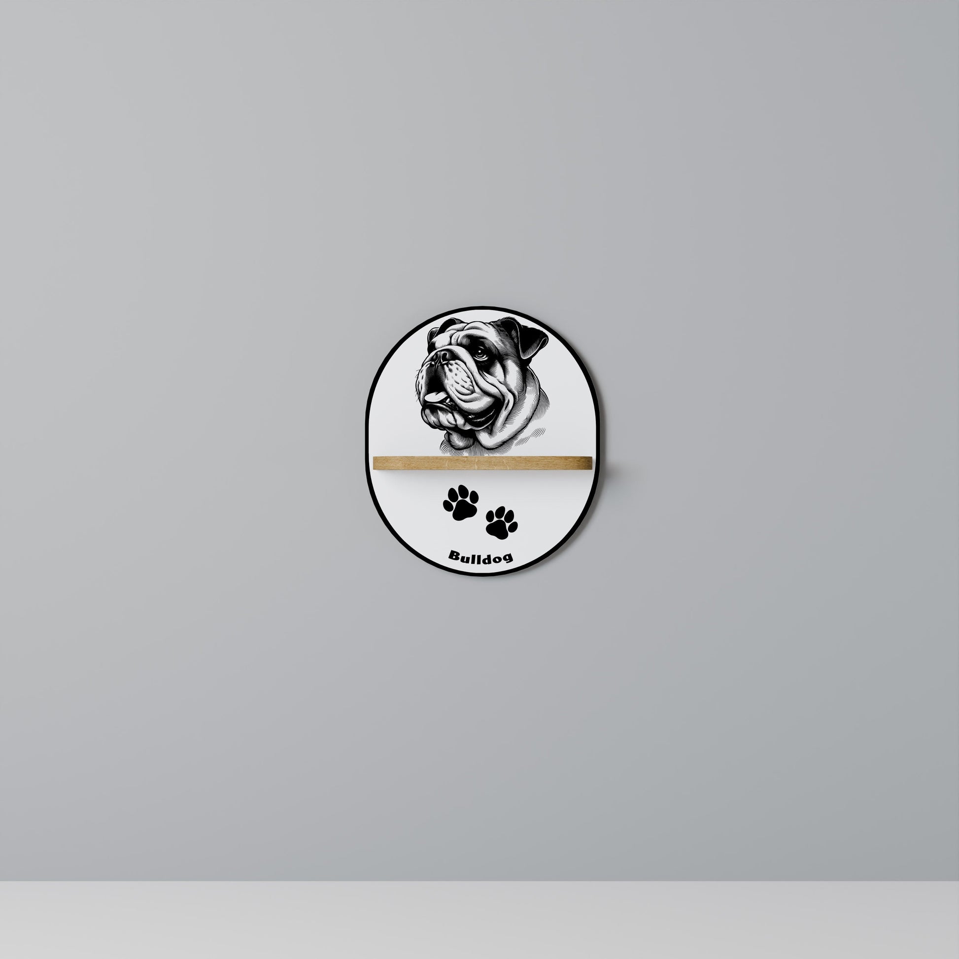 BULLDOG DOG Oval Art Shelf In Oak Effect