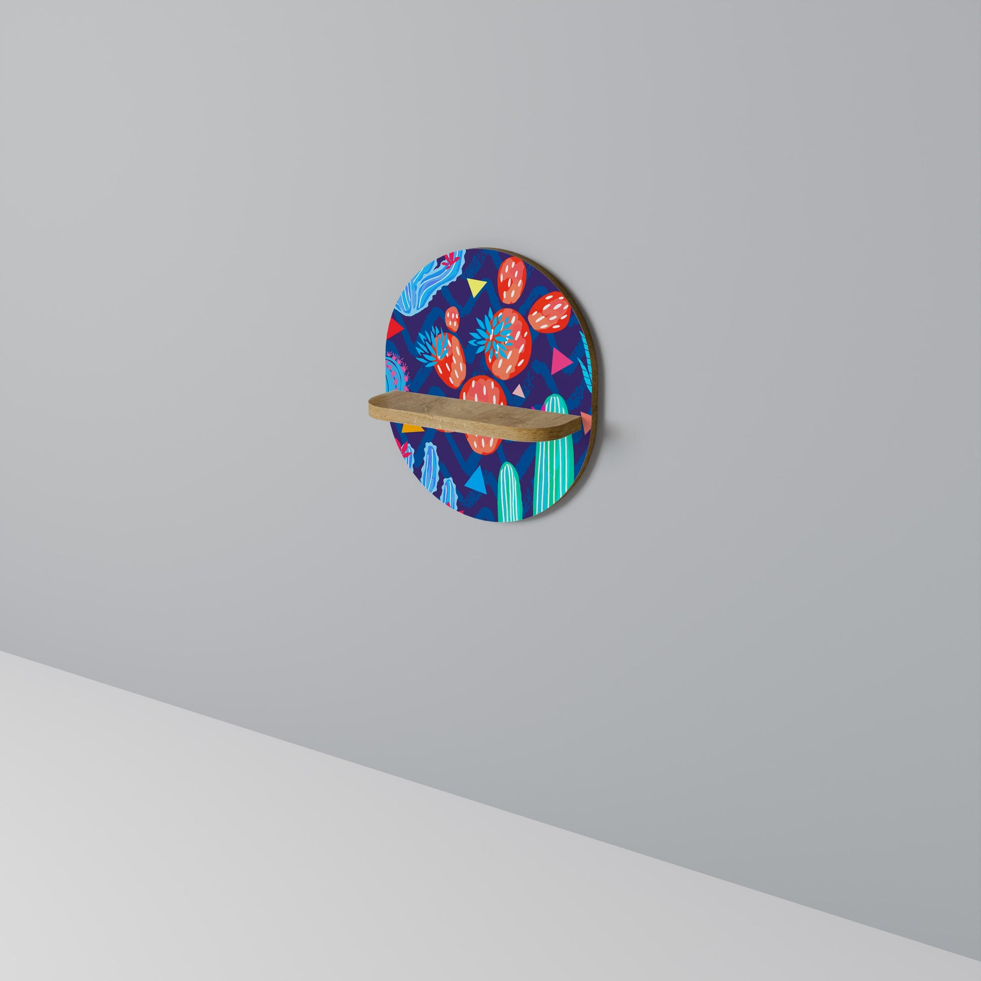 CACTUS VIBES Oval Art Shelf In Oak Effect