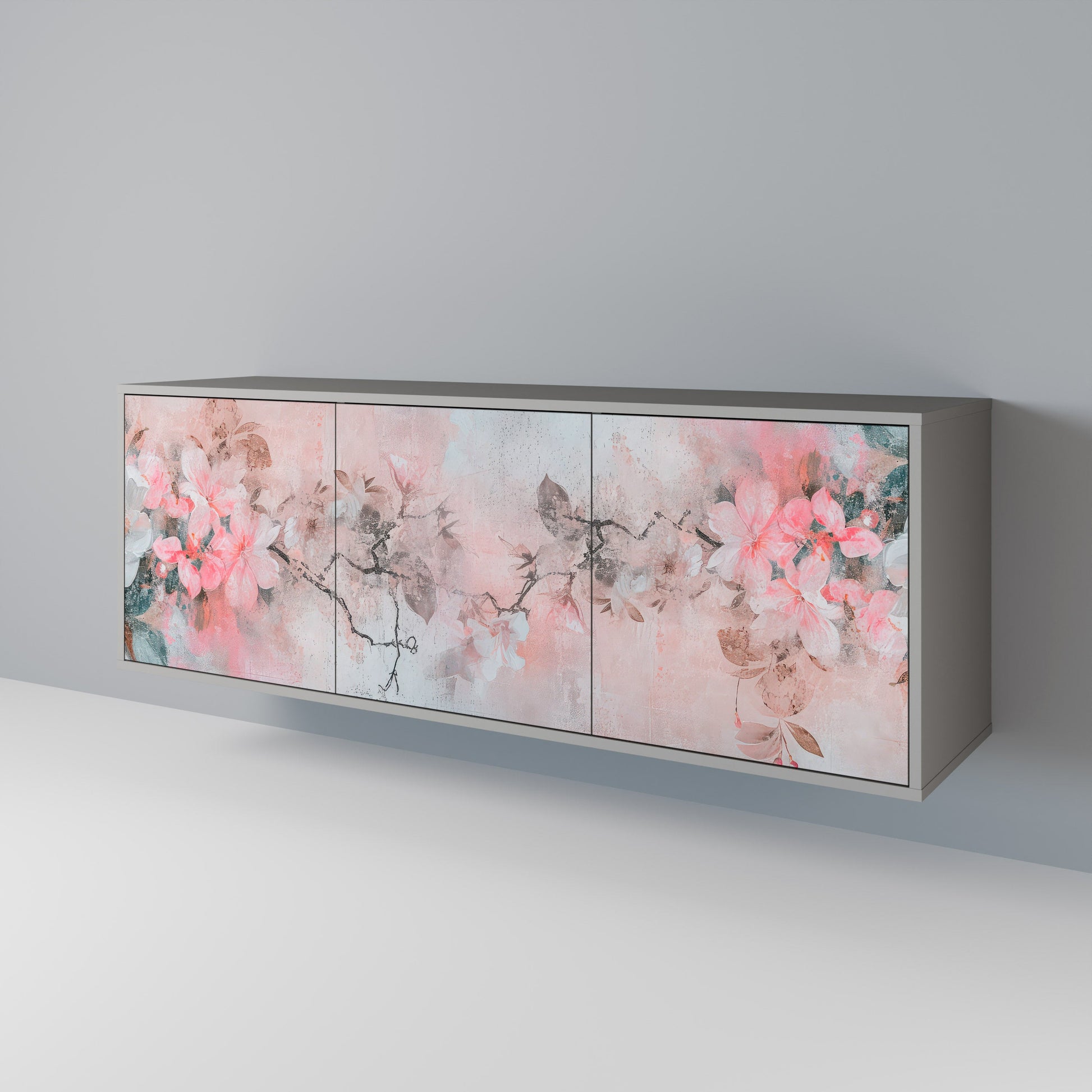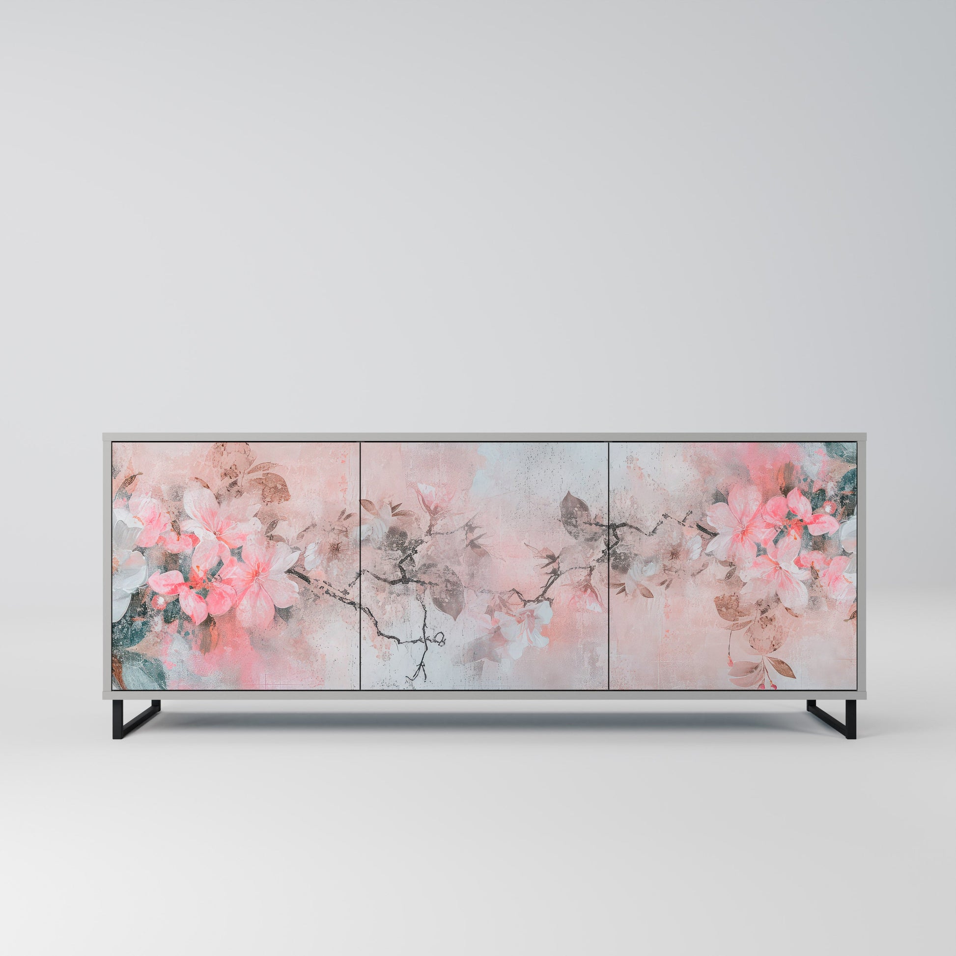 CHERRY BLOSSOM 3-Door Sideboard in Grey Finish