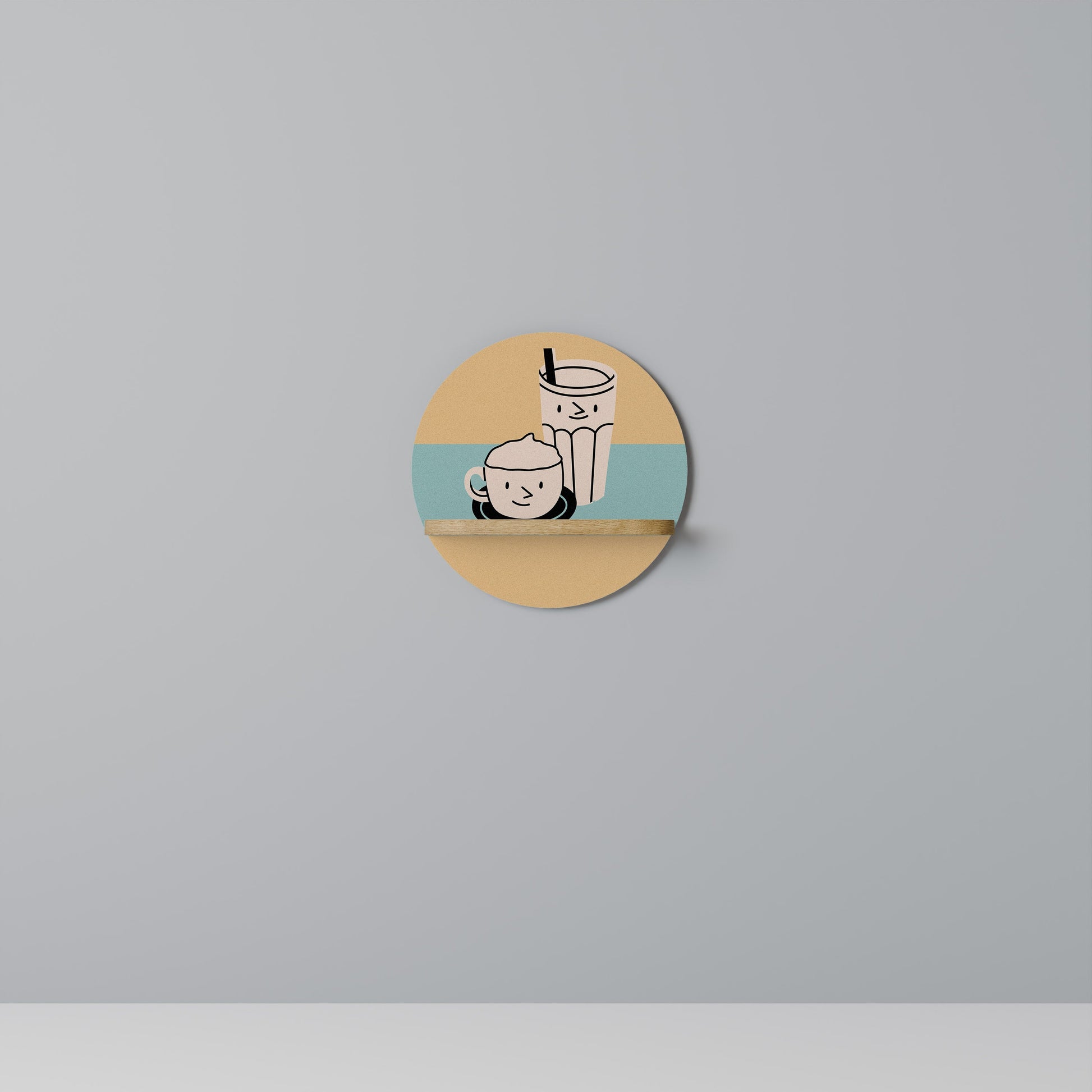 COFFEE PLEASURES Round Art Shelf In Oak Effect