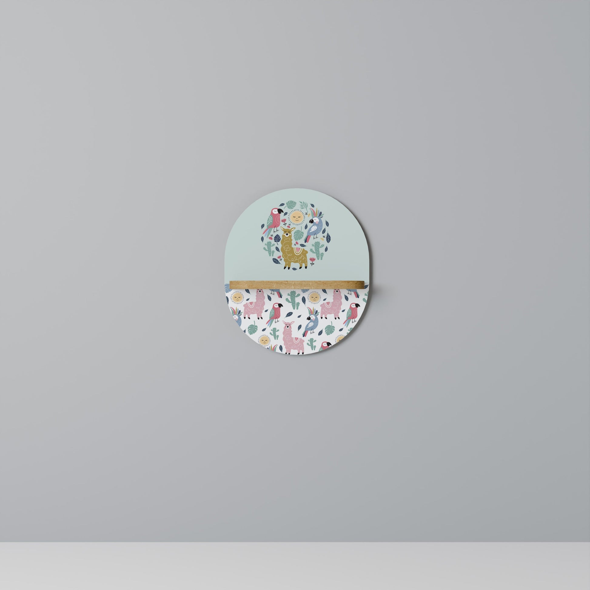 COLORFUL ALPACAS Oval Art Shelf In Oak Effect