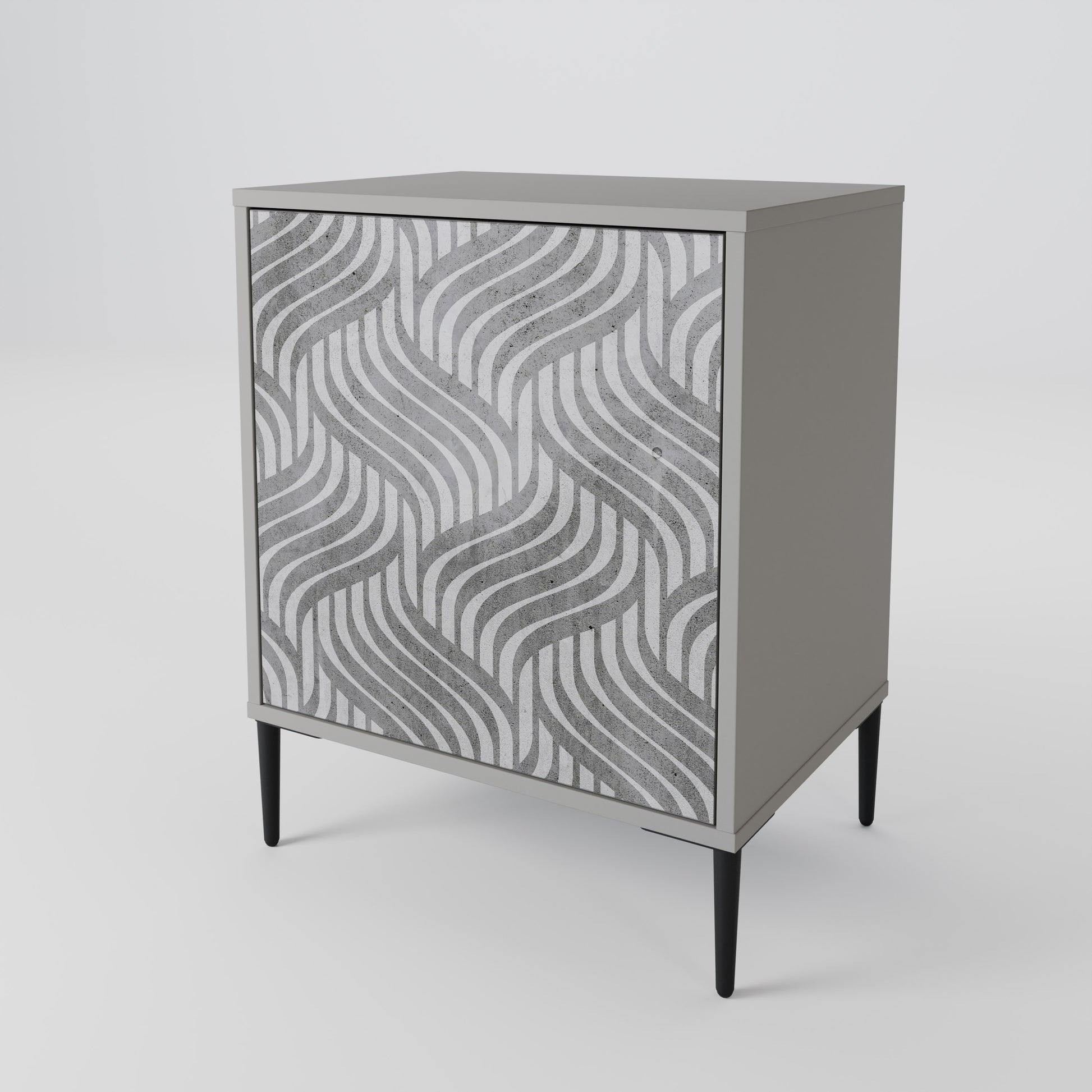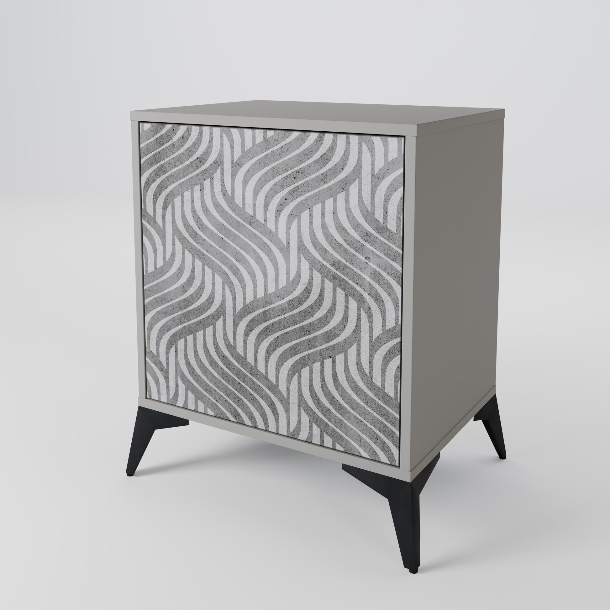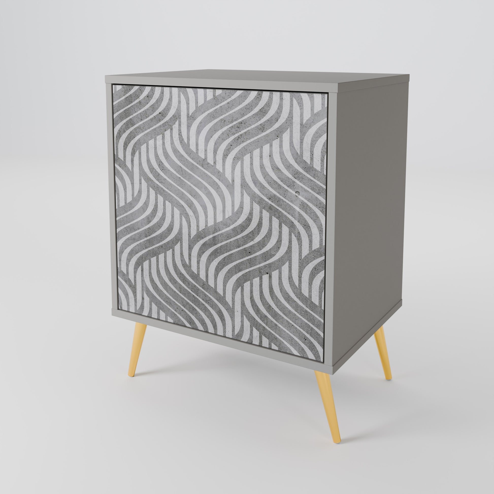 This compact yet remarkably elegant piece of furniture impresses with its minimalist design, perfectly fitting into both modern and classic interiors. The subdued grey color of the body gives the furniture a subtle yet distinctive character, while the fronts with a unique print add an artistic touch.