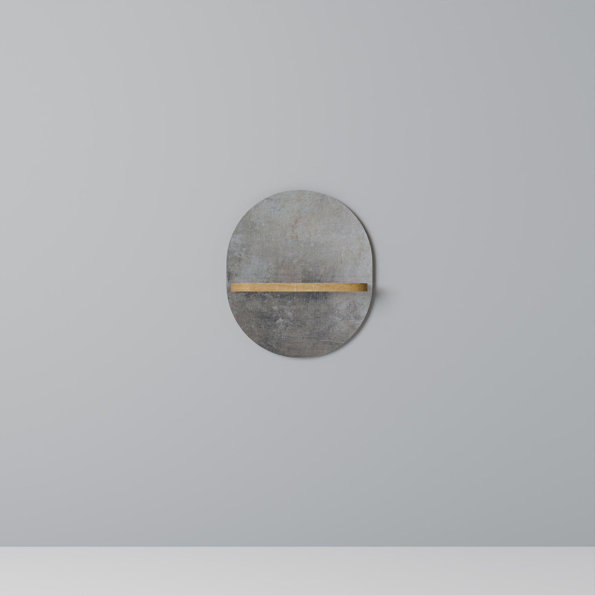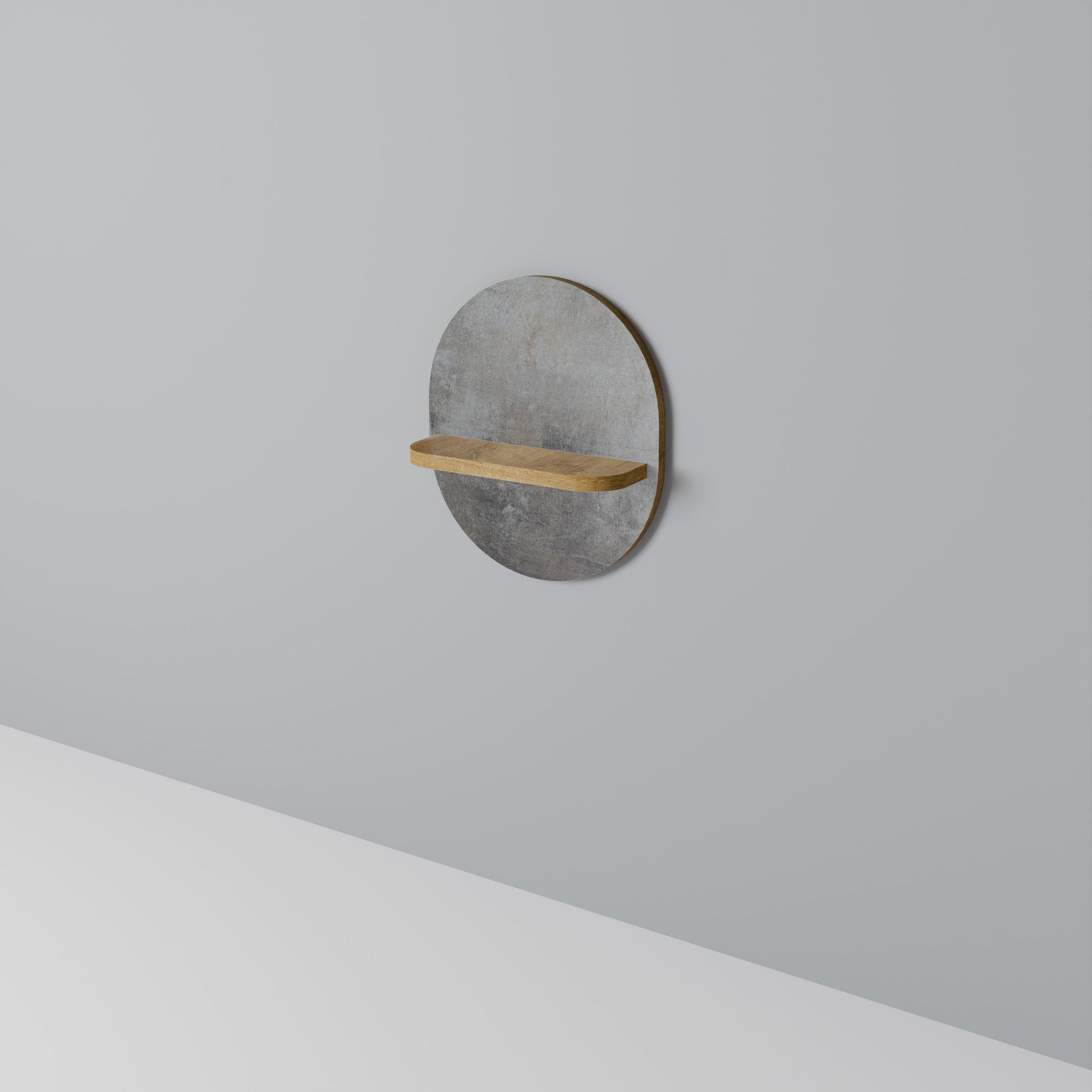 CONCRETE WALL Oval Art Shelf In Oak Effect