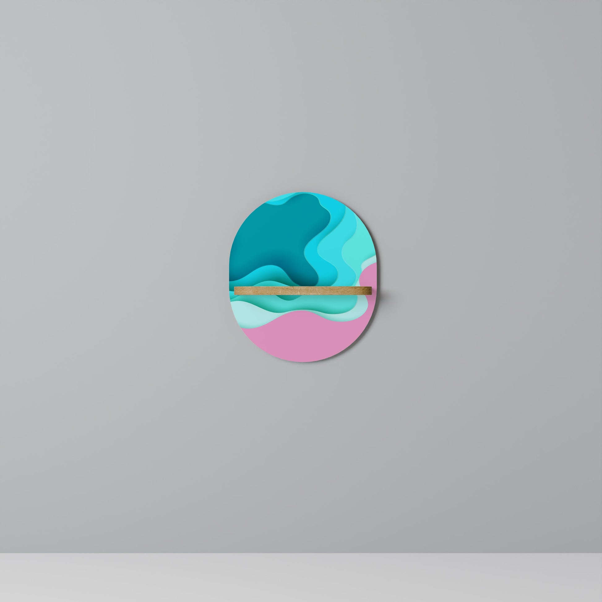 CYANIC ABYSS Oval Art Shelf In Oak Effect