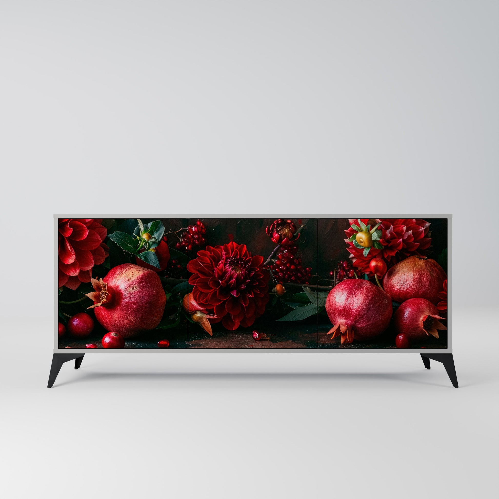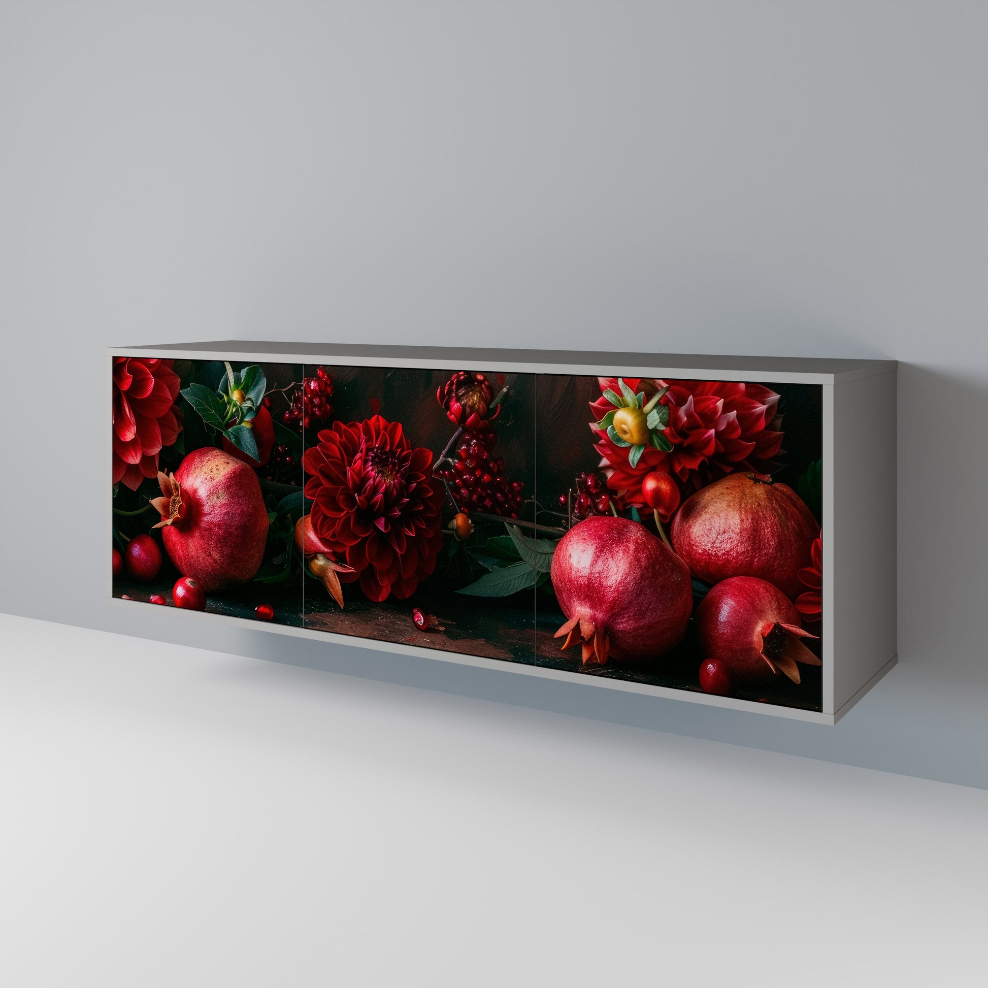DAHLIAS AND POMEGRANATES 3-Door Sideboard in Grey Finish