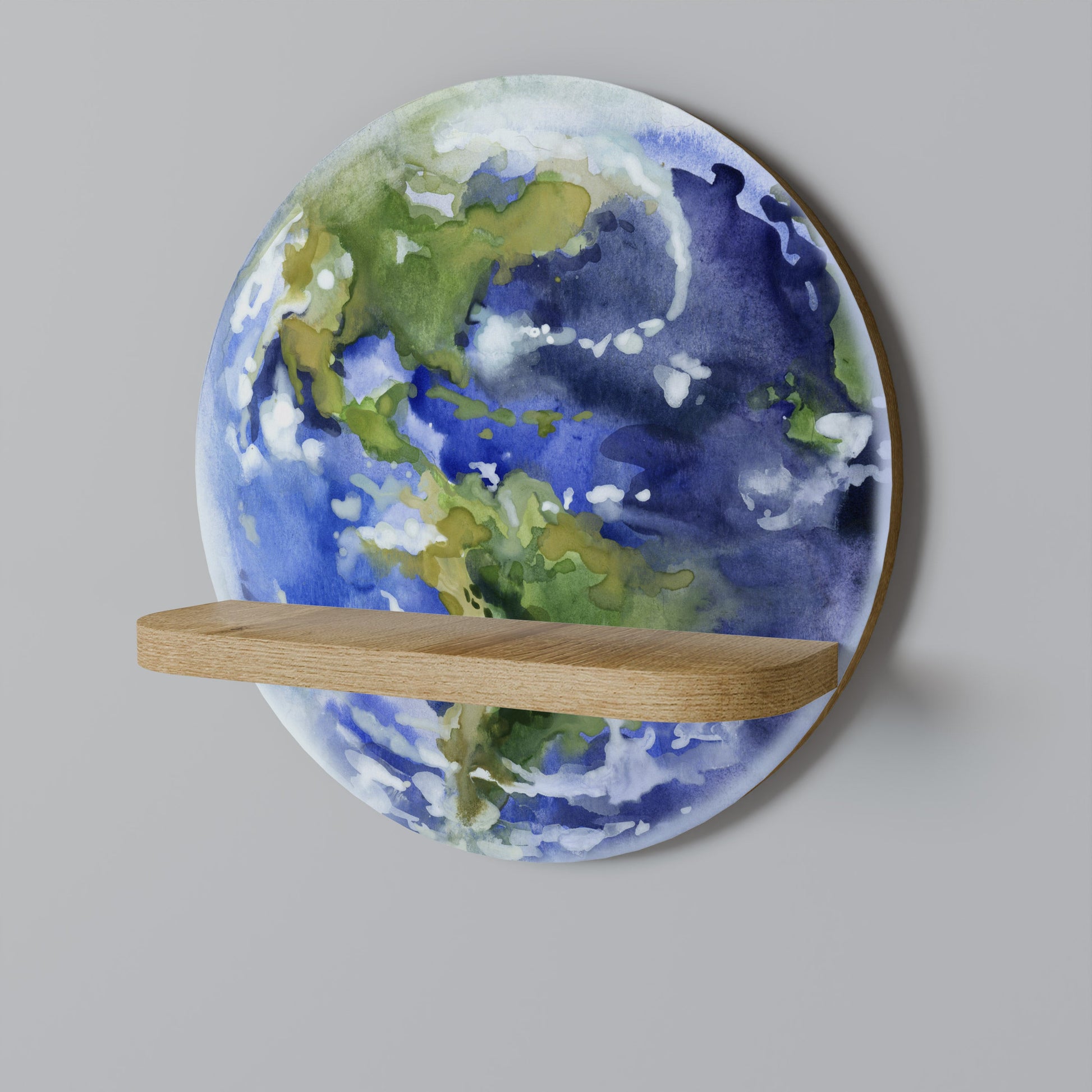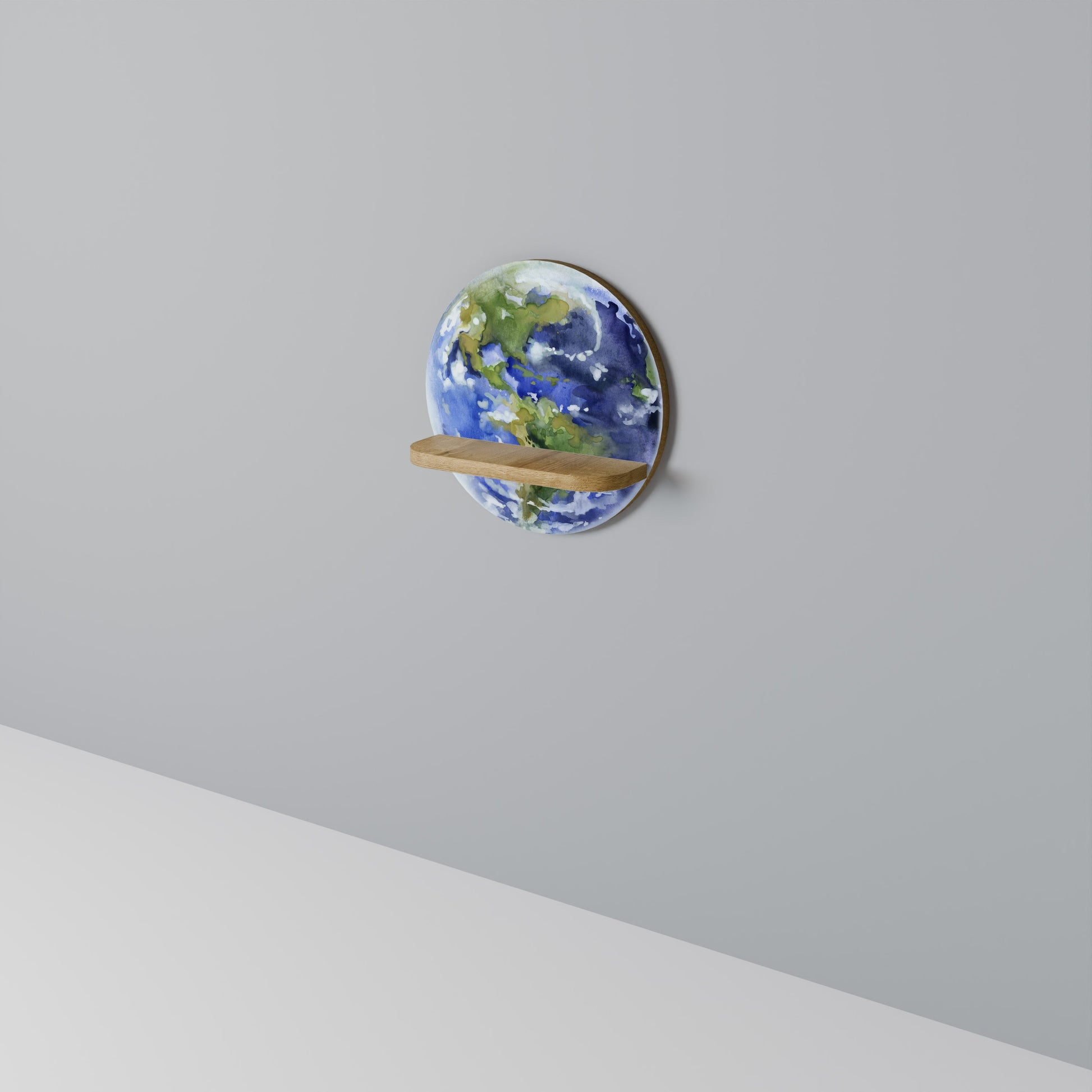 EARTH TROOP Round Art Shelf In Oak Effect