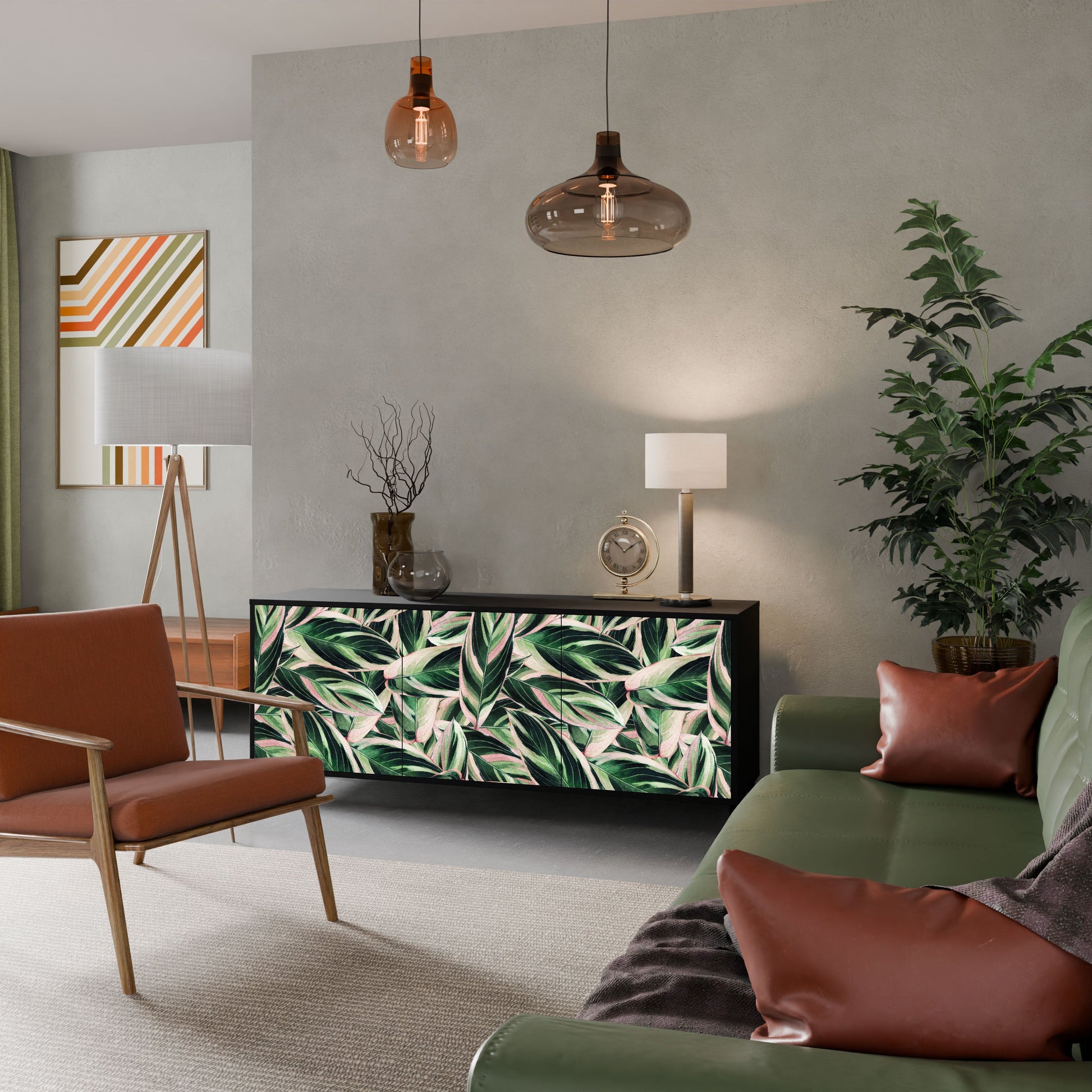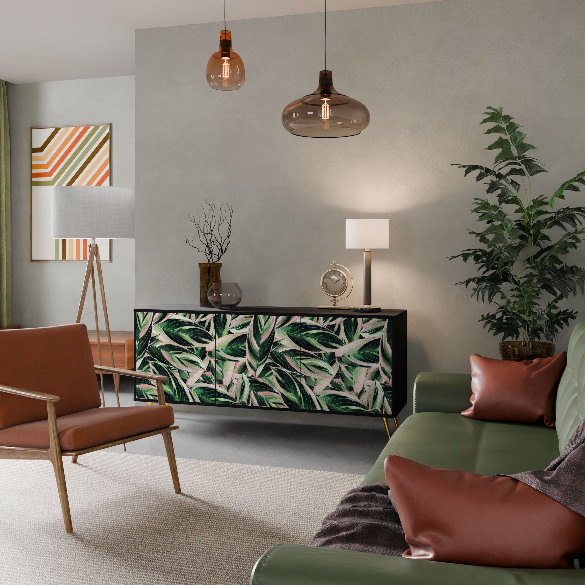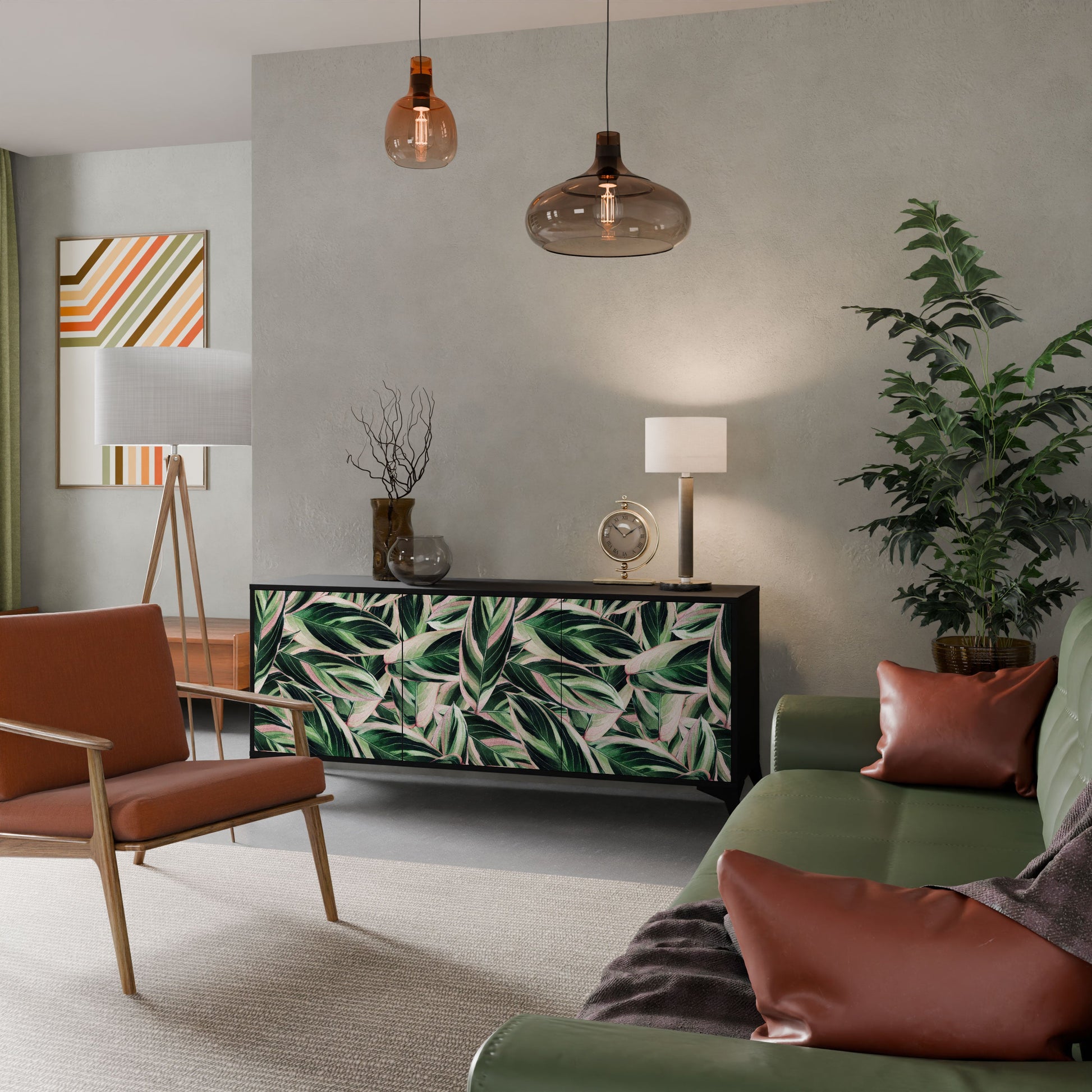 Elegance and functionality in a single piece of furniture – our 3-Door Sideboard with a black body is the perfect solution for lovers of stylish, modern interiors. The black body emphasizes the bold character of the furniture, while the fronts with a unique print add an artistic touch. It fits perfectly in the living room, bedroom, or office, complementing both modern and industrial arrangements.