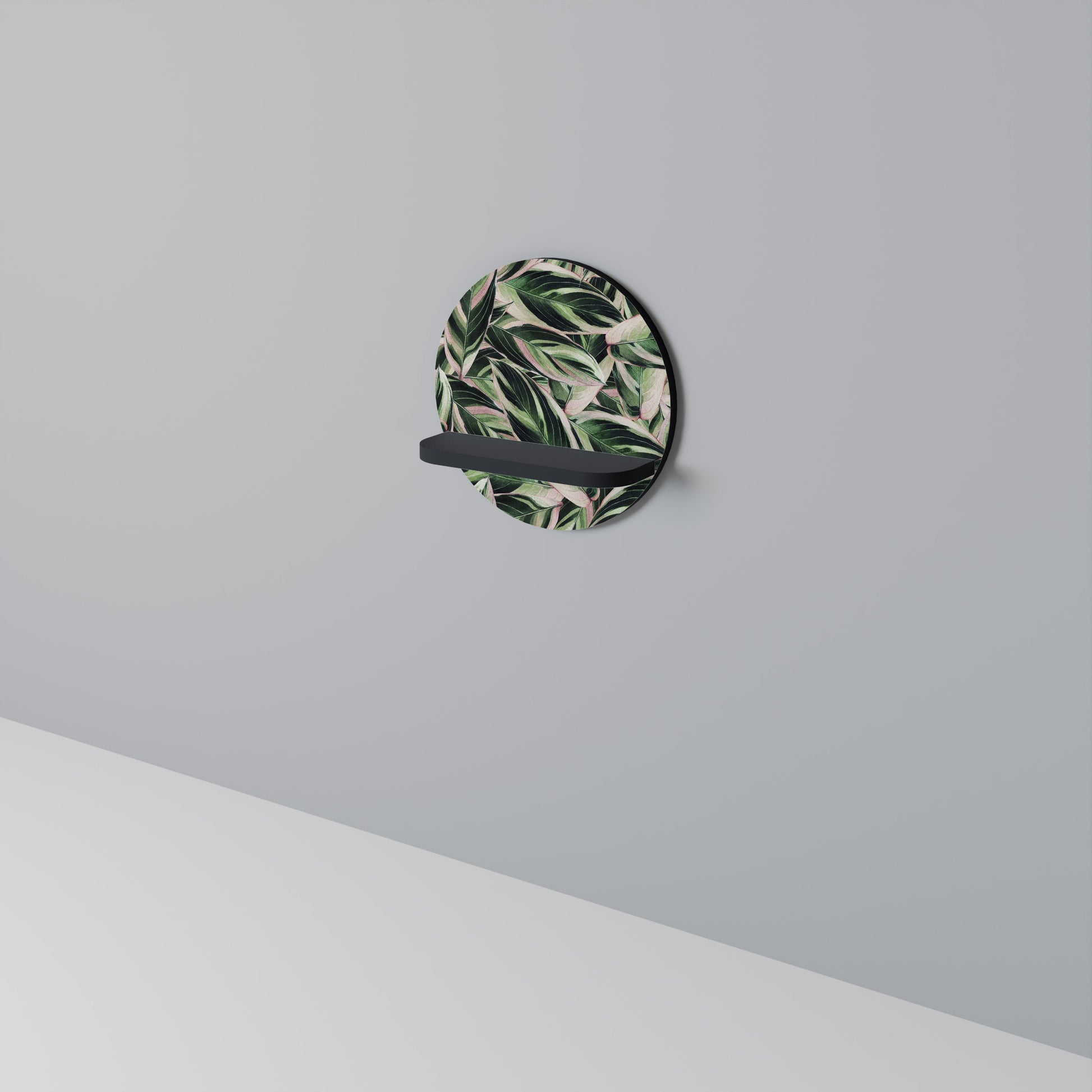 The shelf captivates with its smooth, round shape, adding a sense of balance and sophistication to any space. The deep black finish introduces a touch of contemporary elegance and visual contrast, making it a striking addition to both minimalist and industrial-style interiors.