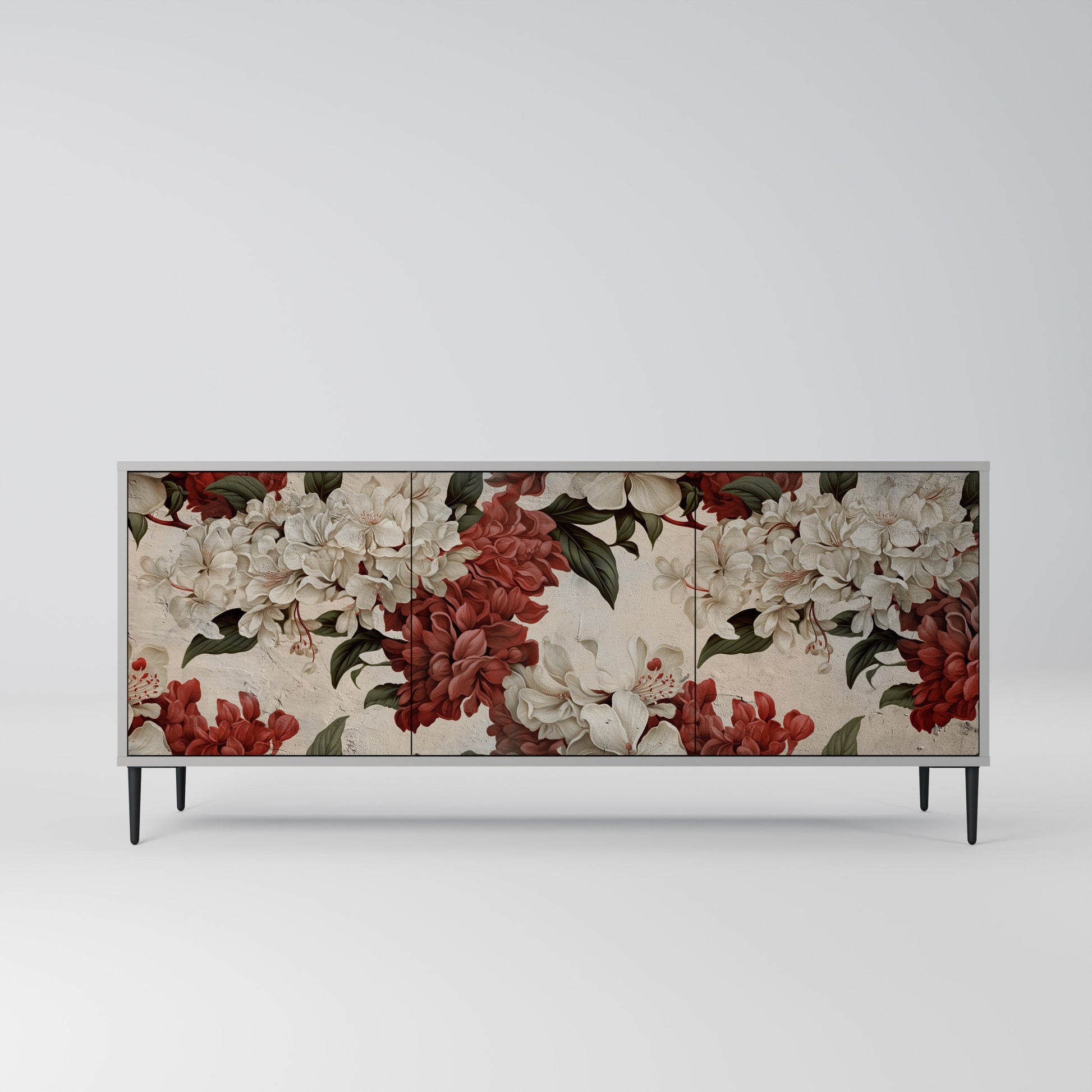 Elegance and functionality in a single piece of furniture – our 3-Door Sideboard with a grey body is the perfect solution for lovers of stylish, modern interiors. The grey body emphasizes the refined character of the furniture, while the fronts with a unique print add an artistic touch. It fits perfectly in the living room, bedroom, or office, complementing both modern and industrial arrangements.