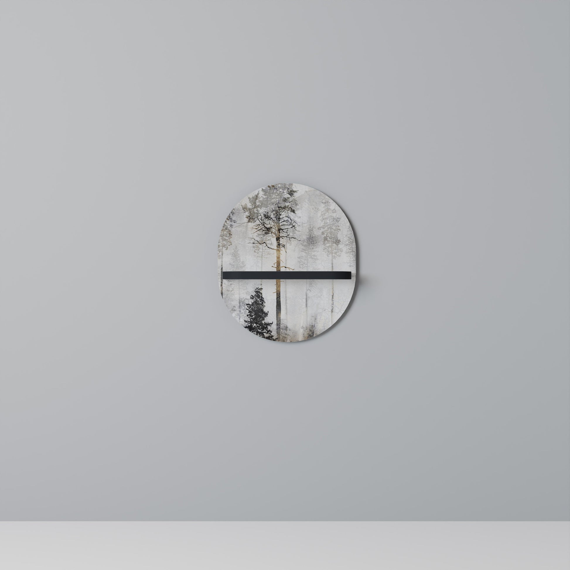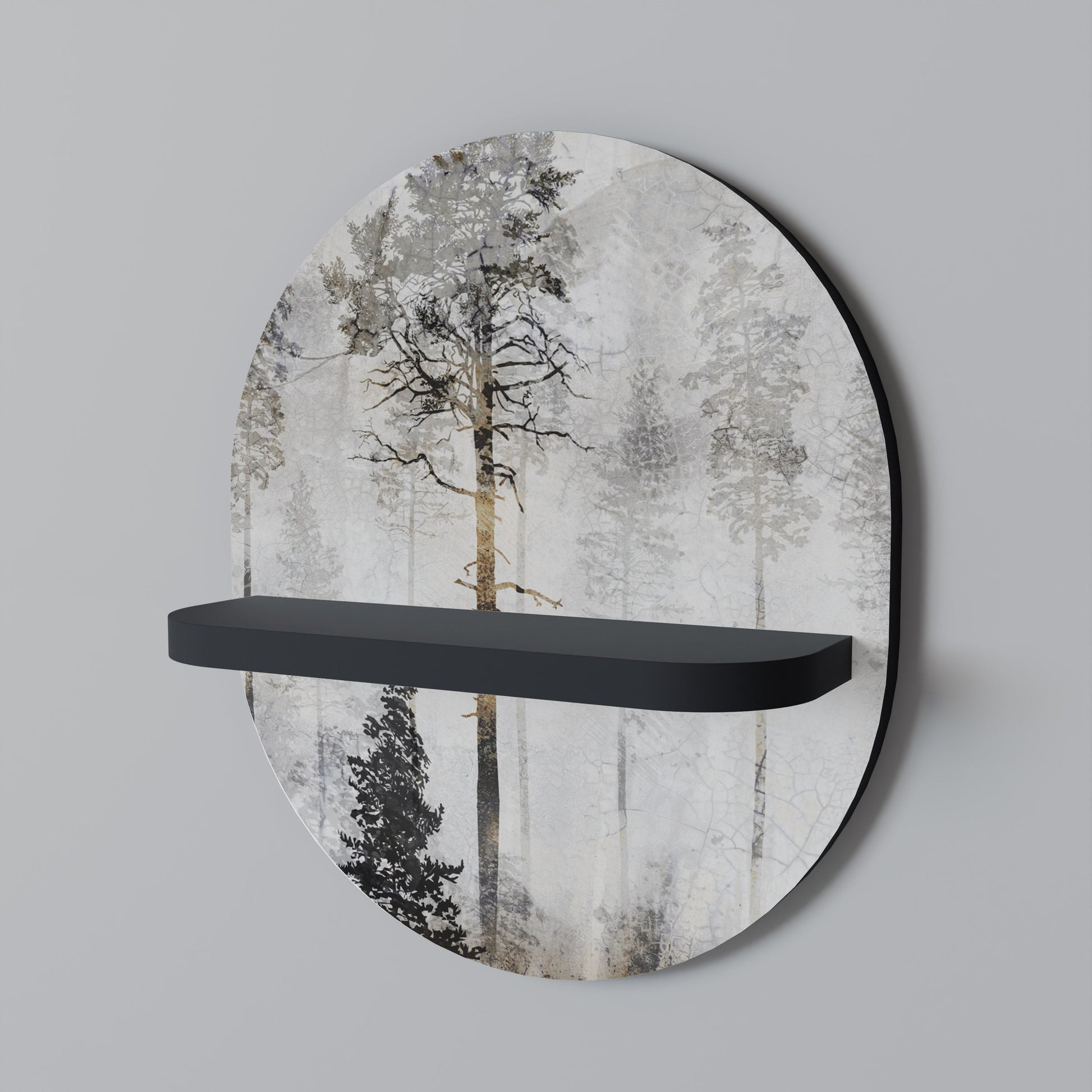 FADE IN THE TREES Oval Art Shelf In Black Finish