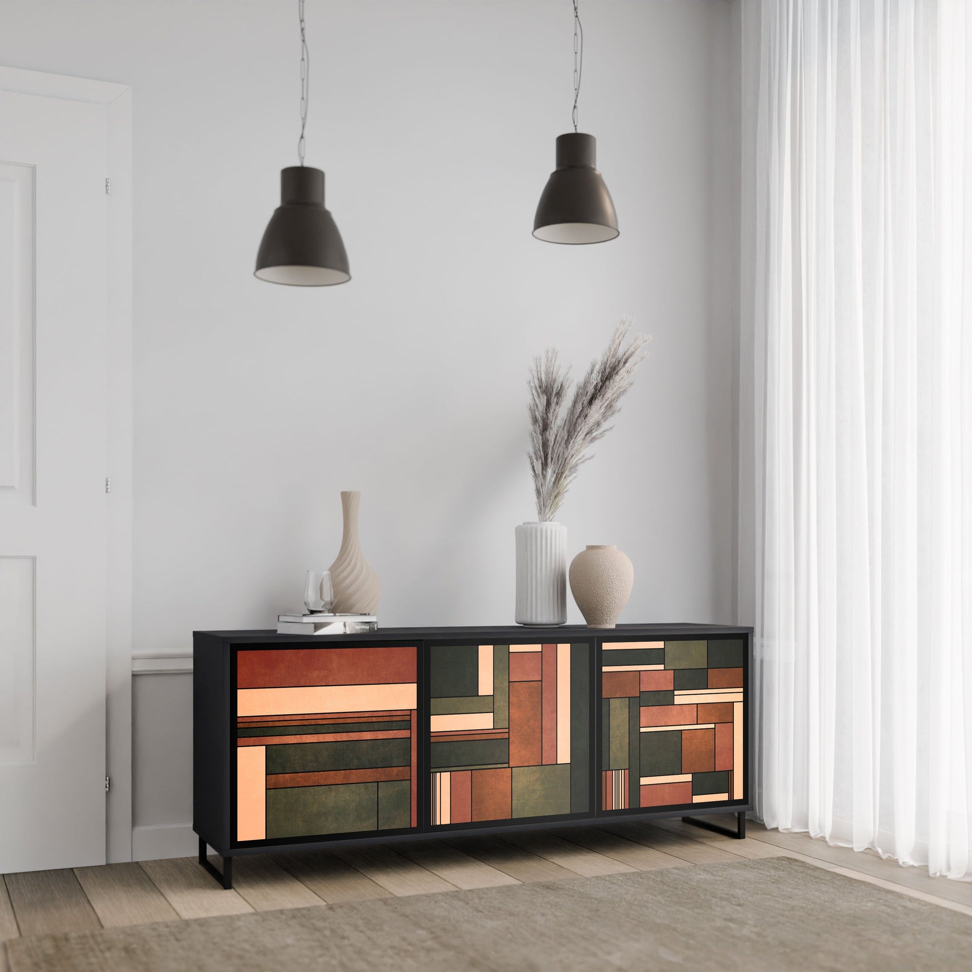 Elegance and functionality in a single piece of furniture – our 3-Door Sideboard with a black body is the perfect solution for lovers of stylish, modern interiors. The black body emphasizes the bold character of the furniture, while the fronts with a unique print add an artistic touch. It fits perfectly in the living room, bedroom, or office, complementing both modern and industrial arrangements.