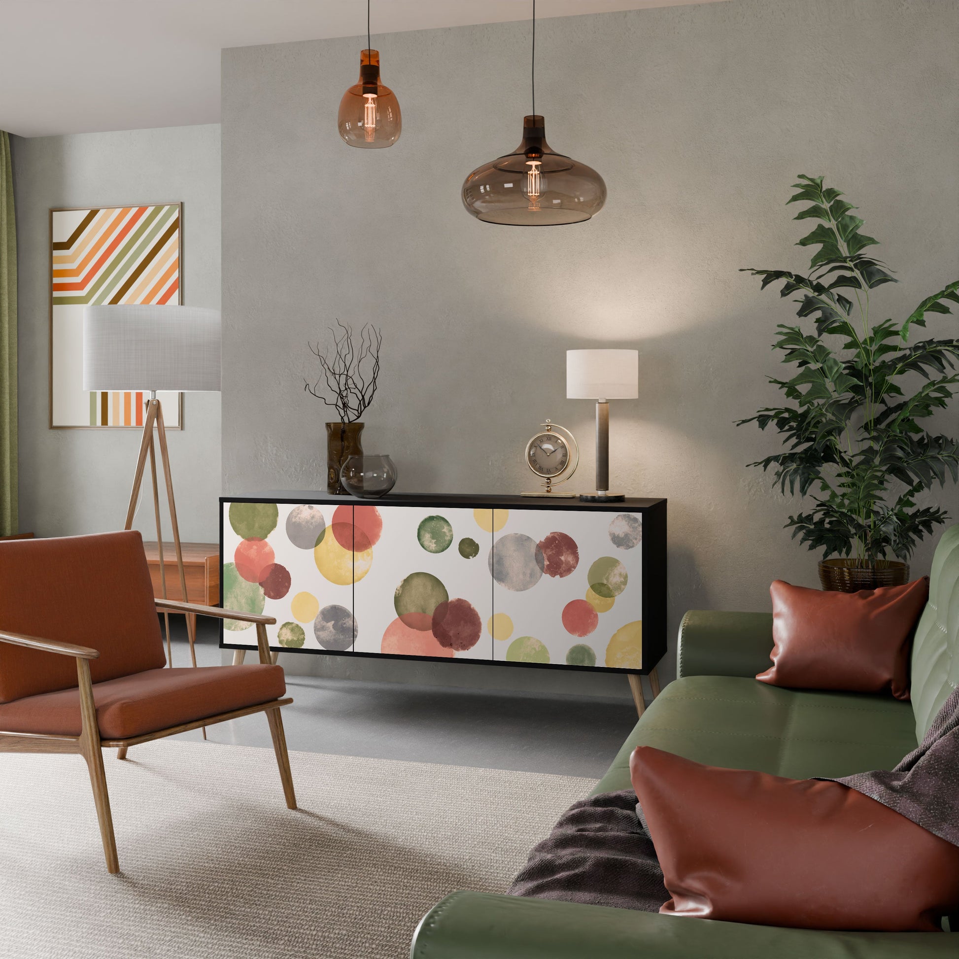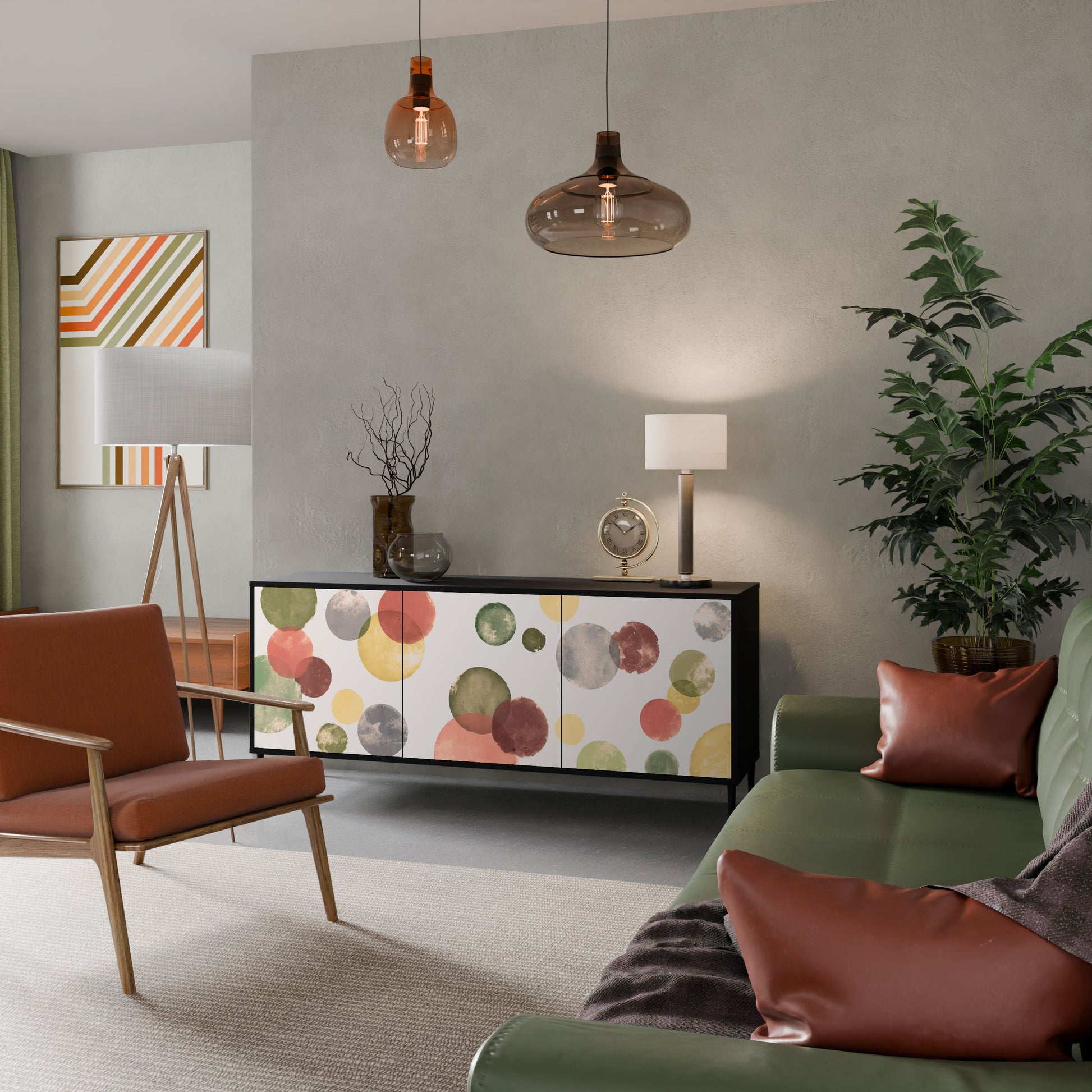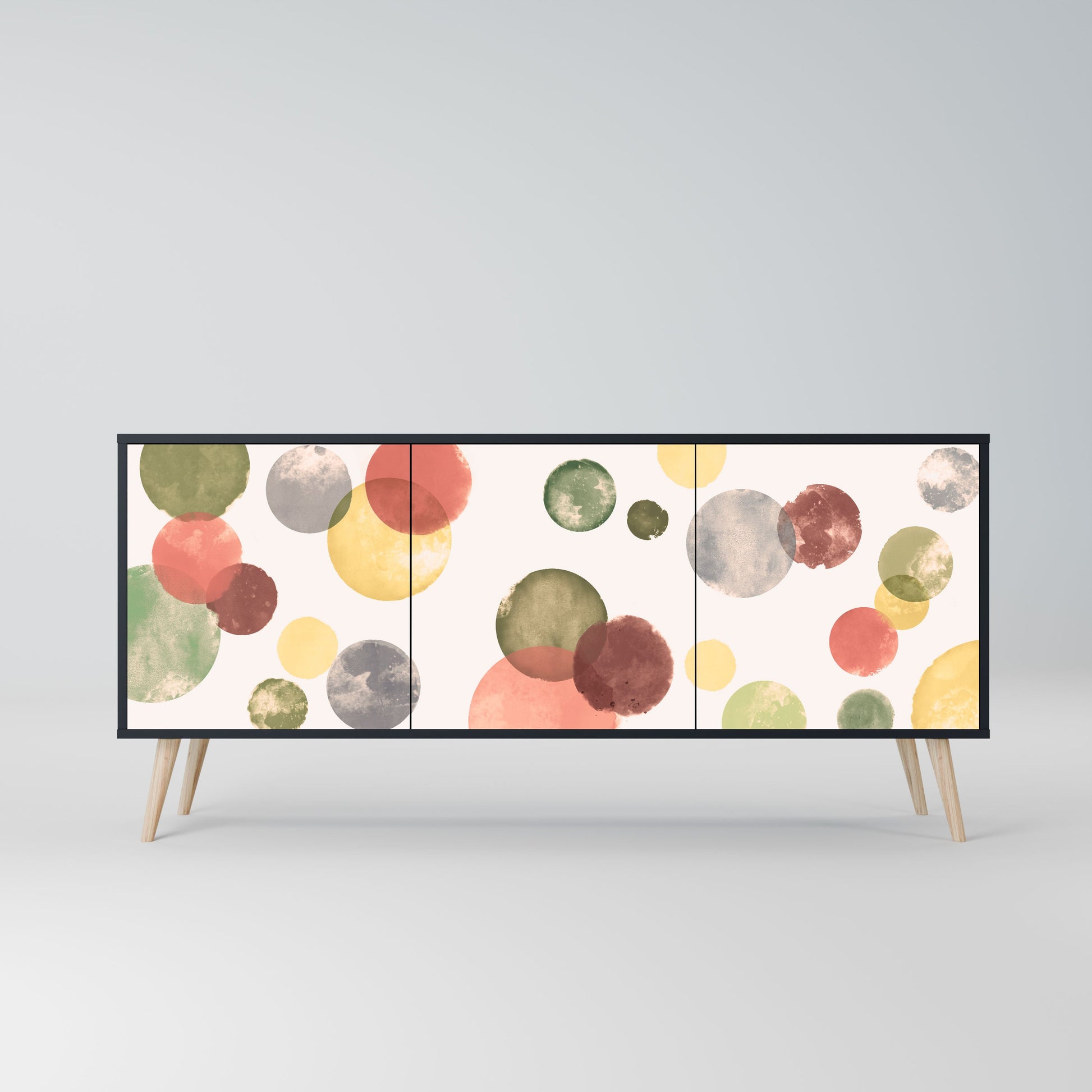 Elegance and functionality in a single piece of furniture – our 3-Door Sideboard with a black body is the perfect solution for lovers of stylish, modern interiors. The black body emphasizes the bold character of the furniture, while the fronts with a unique print add an artistic touch. It fits perfectly in the living room, bedroom, or office, complementing both modern and industrial arrangements.