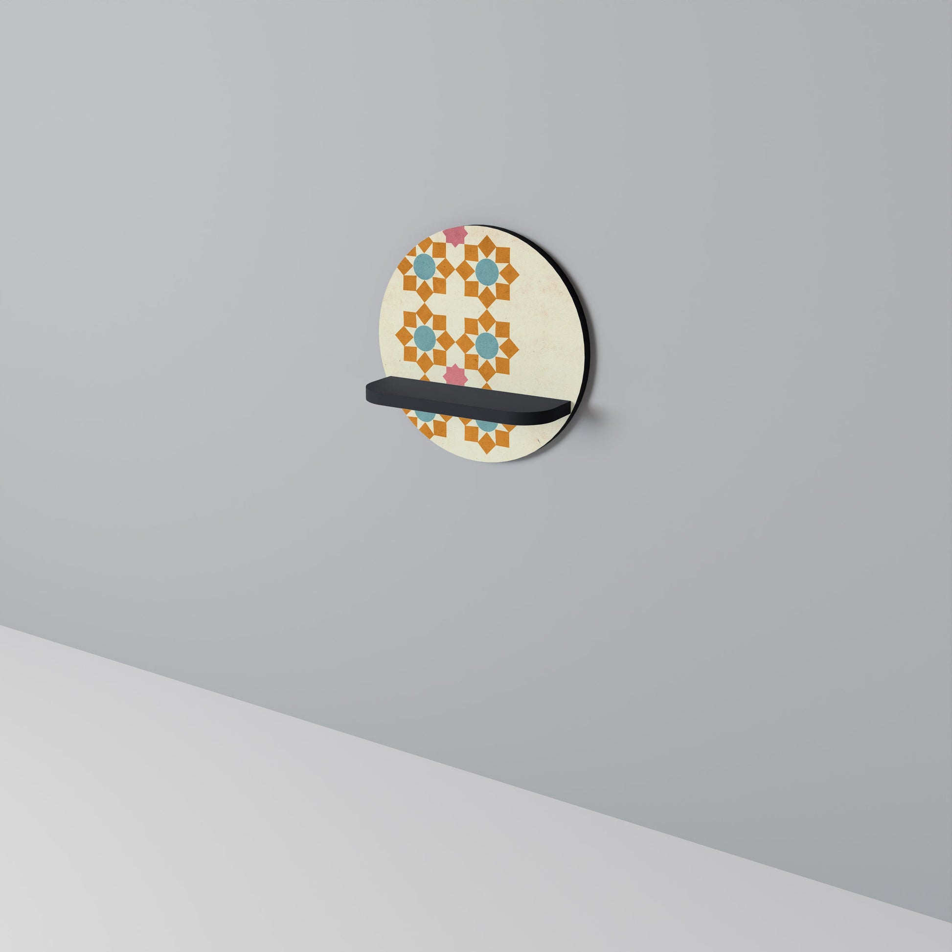 FLORAL DECOR Round Art Shelf In Black Finish