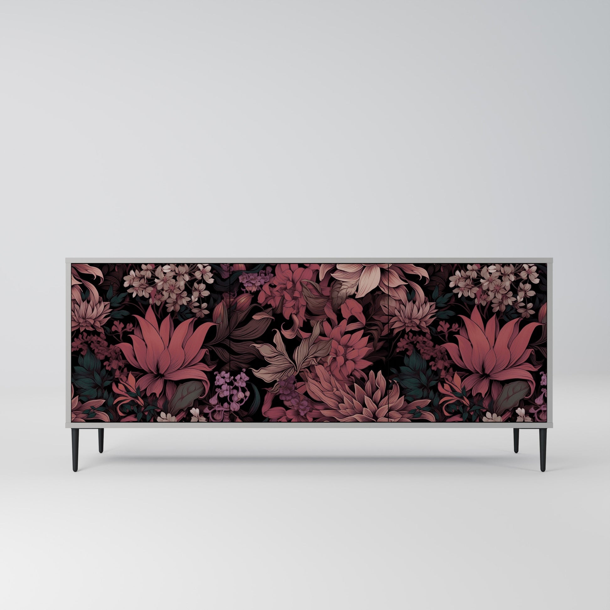 FLORAL WHISPER 3-Door Sideboard in Grey Finish