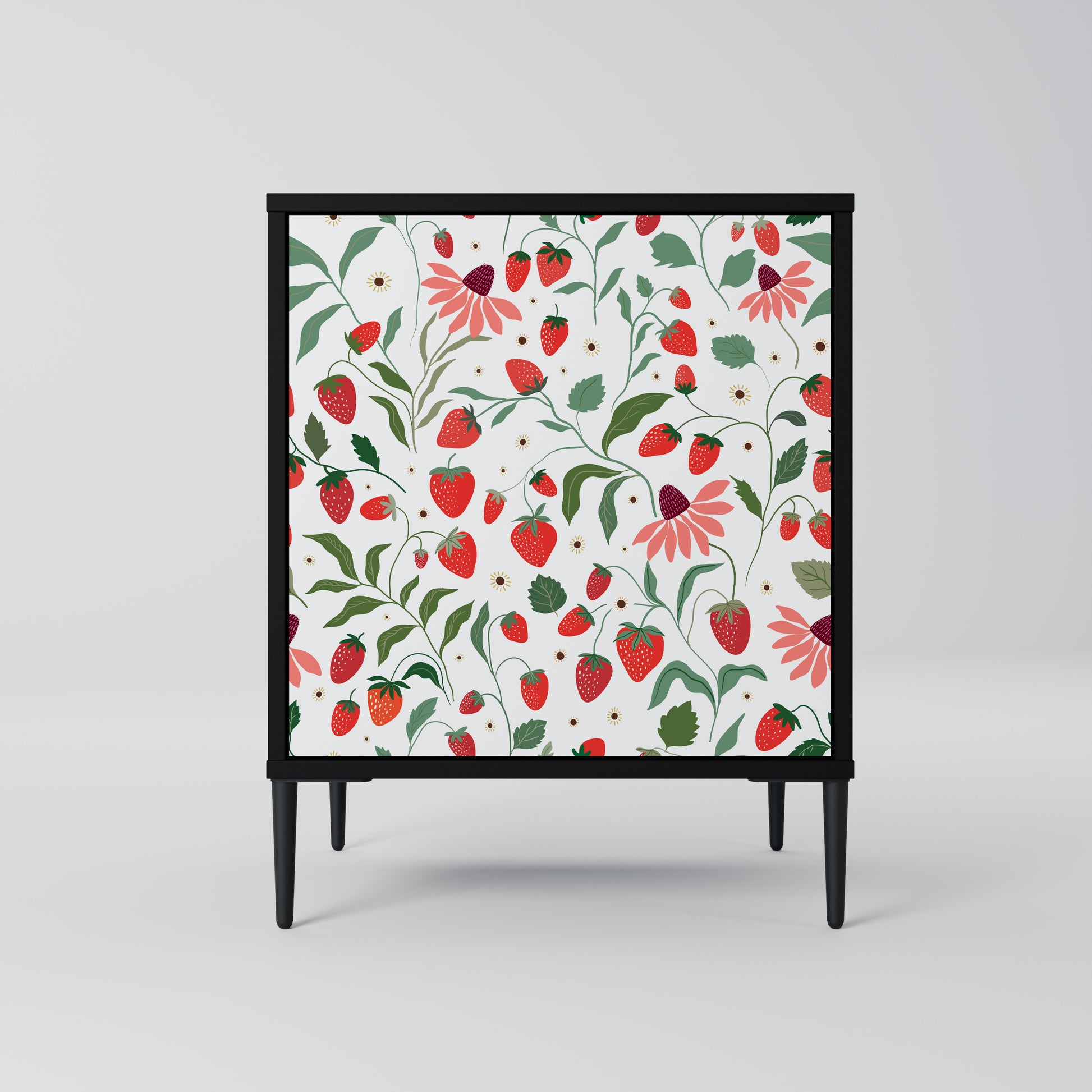 FLOWERS AND STRAWBERRIES 1-Door Sideboard in Black Finish