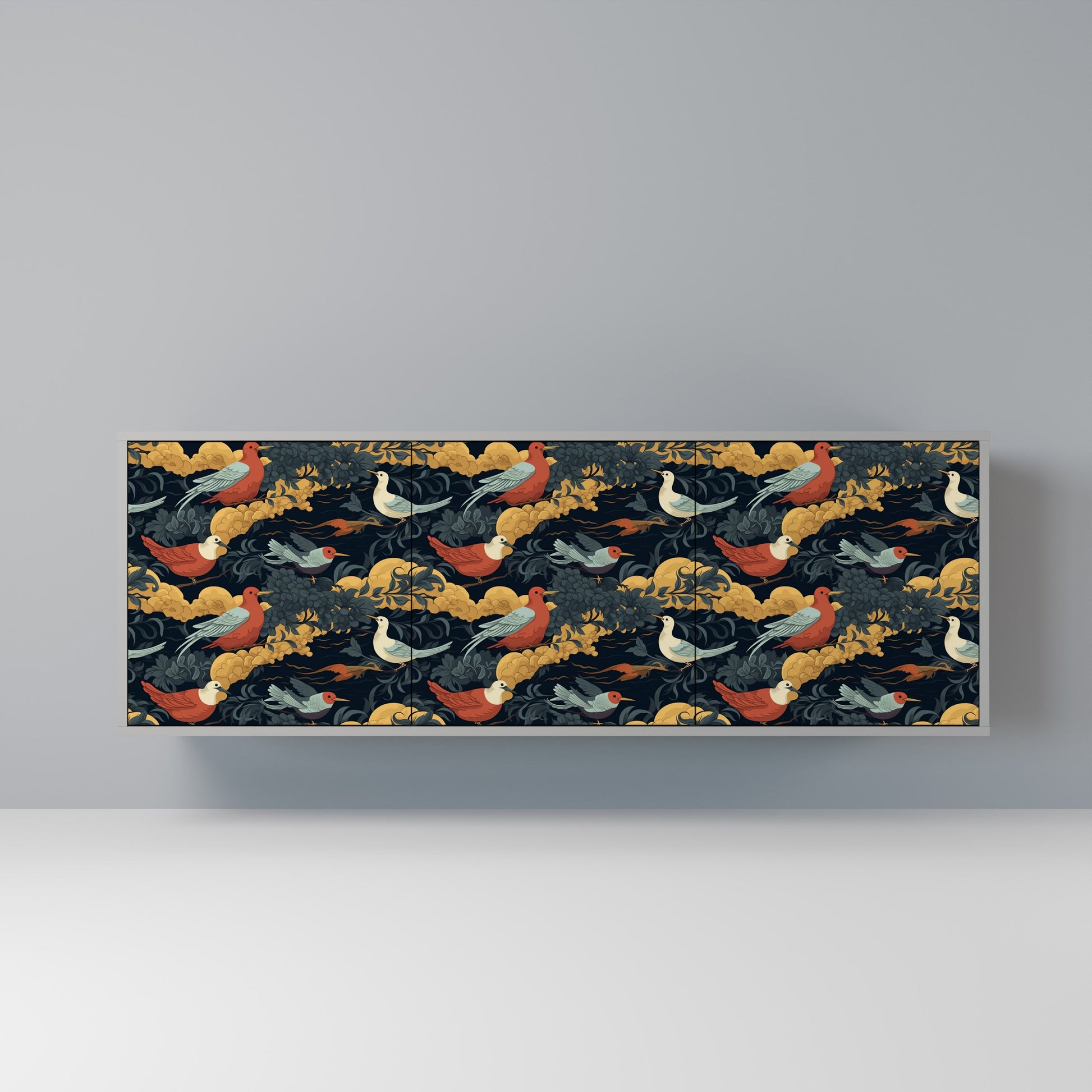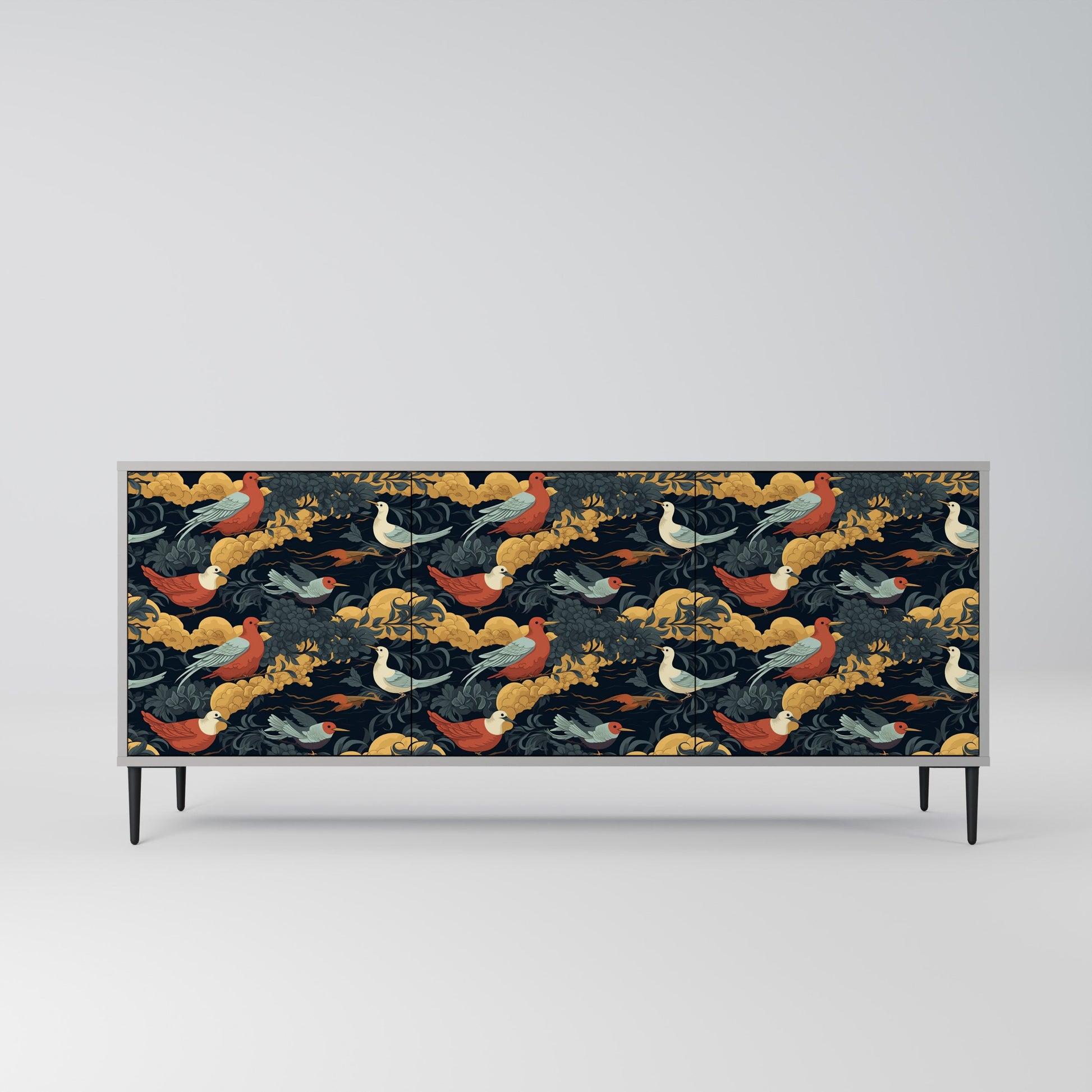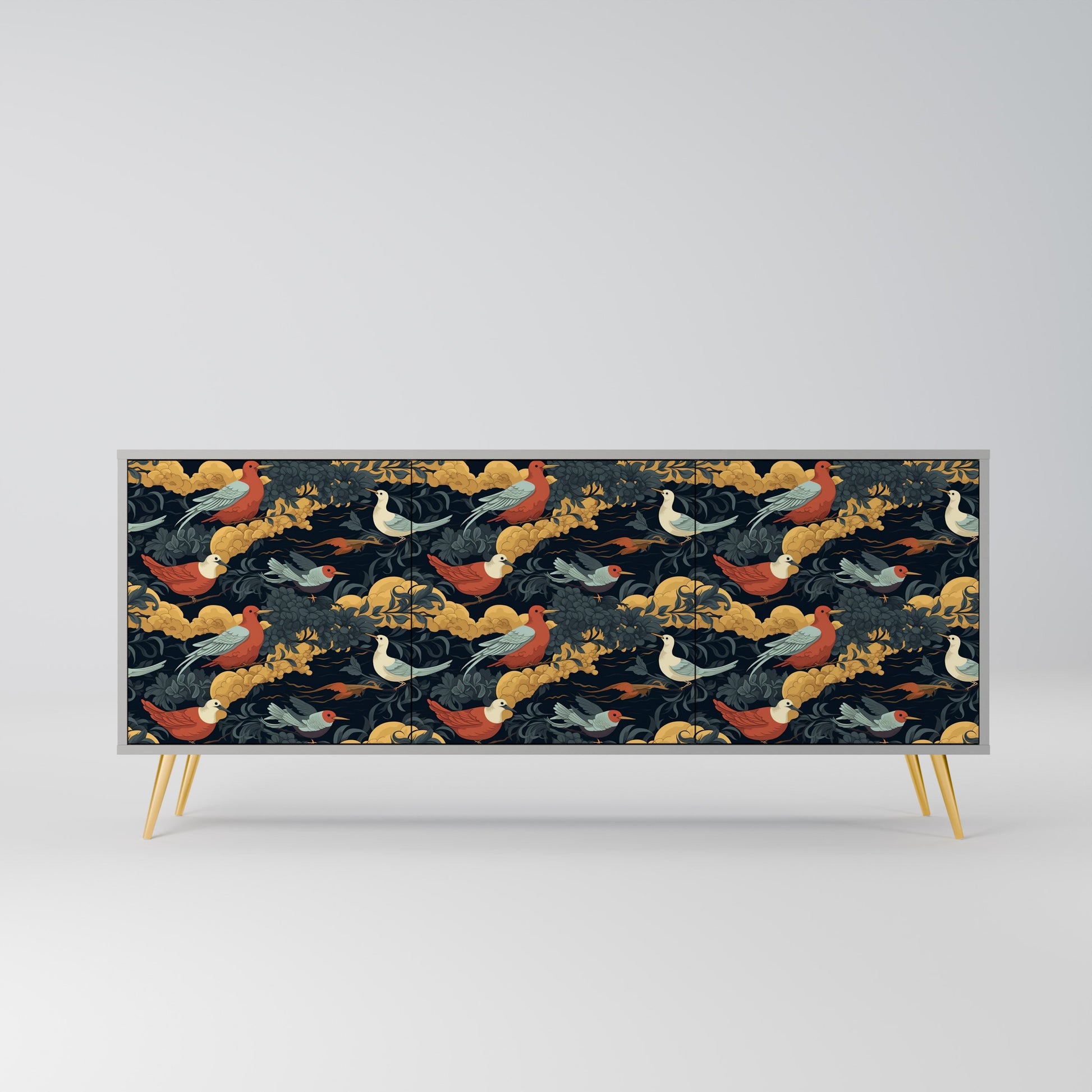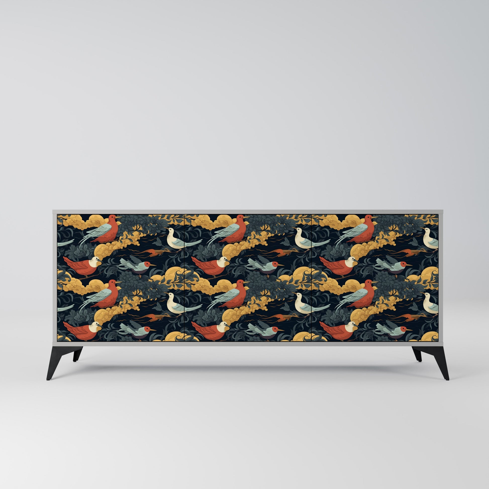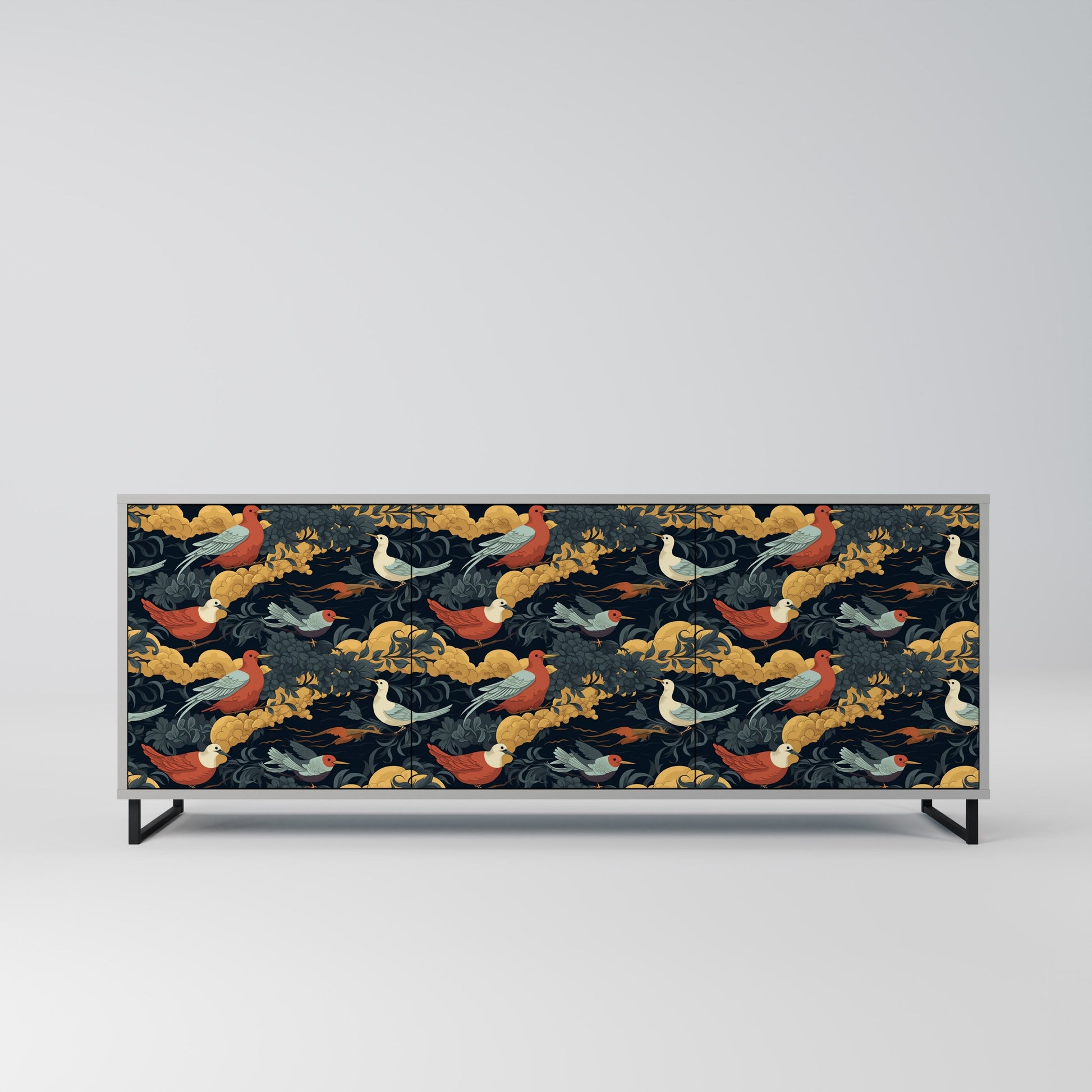 Elegance and functionality in a single piece of furniture – our 3-Door Sideboard with a grey body is the perfect solution for lovers of stylish, modern interiors. The grey body emphasizes the refined character of the furniture, while the fronts with a unique print add an artistic touch. It fits perfectly in the living room, bedroom, or office, complementing both modern and industrial arrangements.