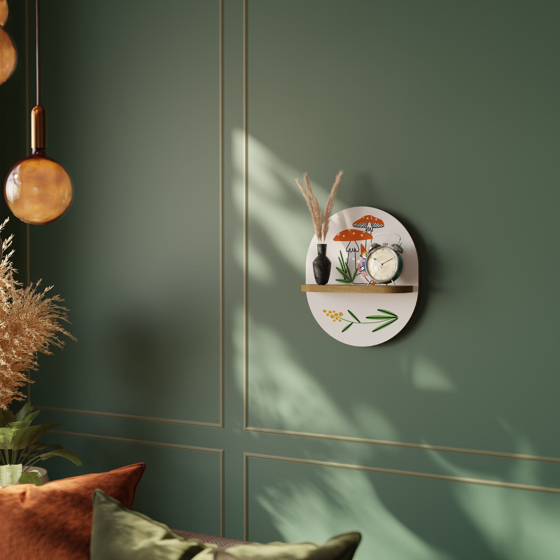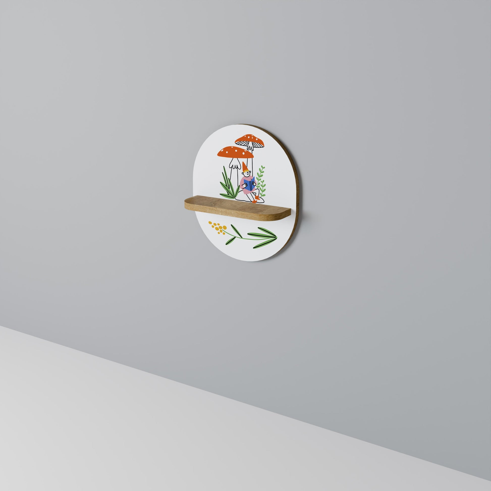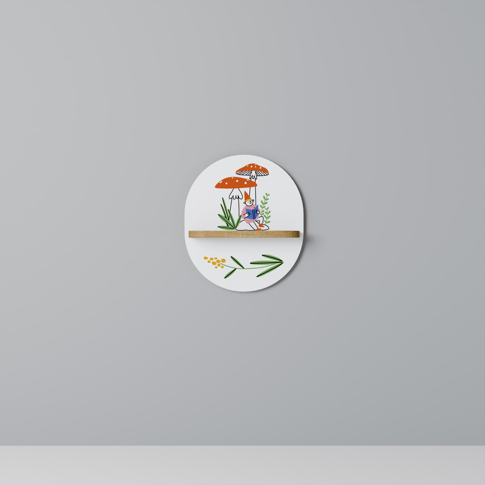 GARDEN GNOMES Oval Art Shelf In Oak Effect