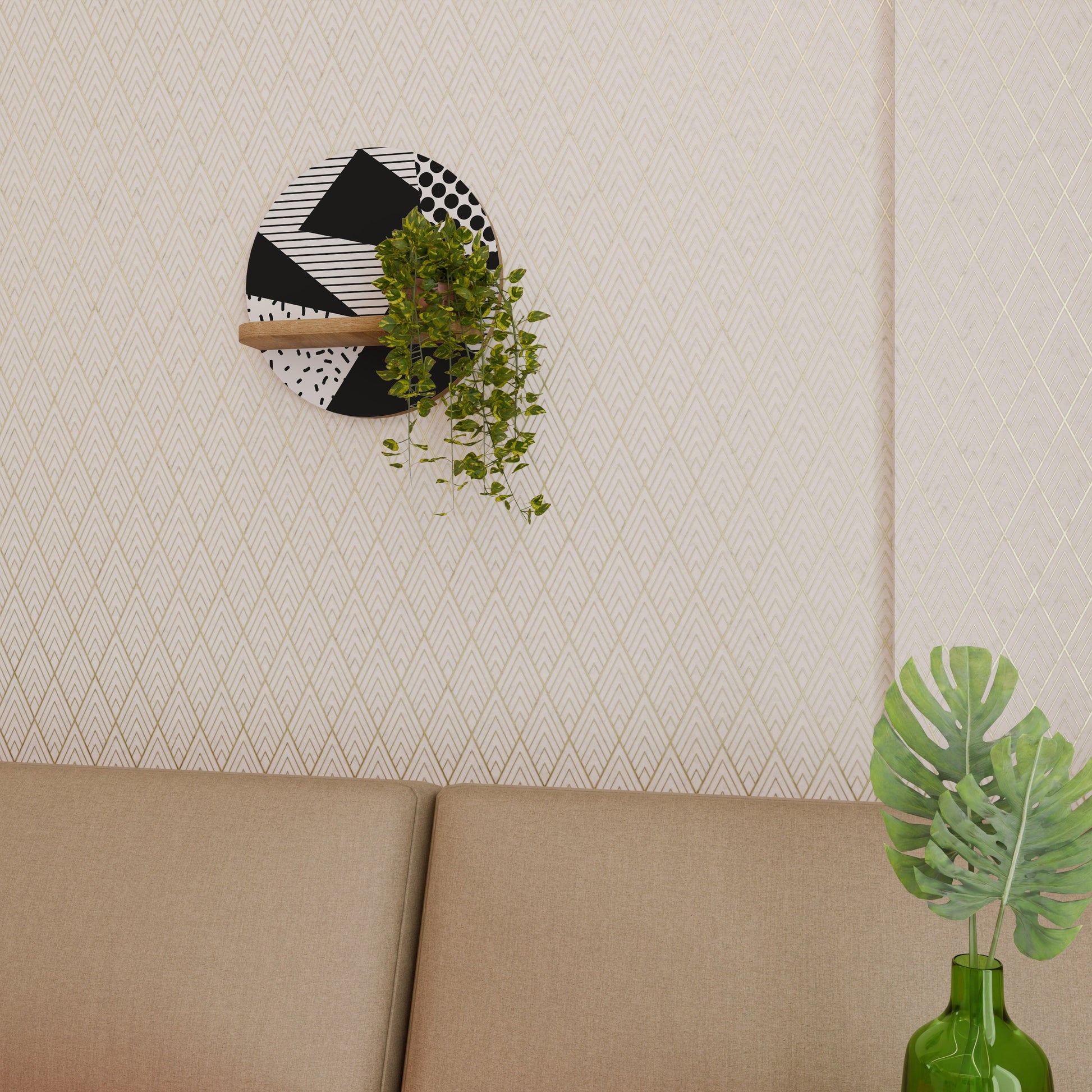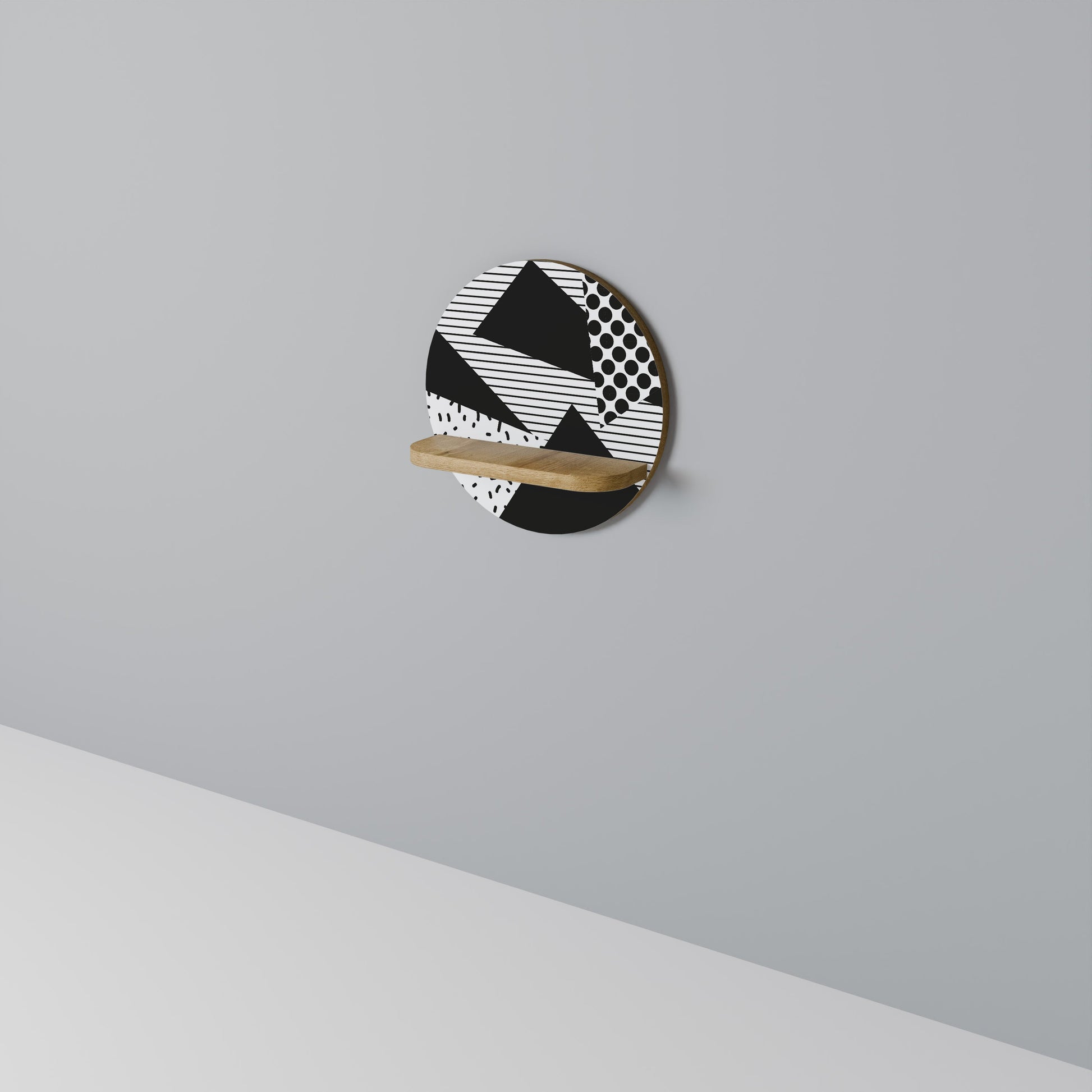 GEMOETRIC MONOCHROME Round Art Shelf In Oak Effect
