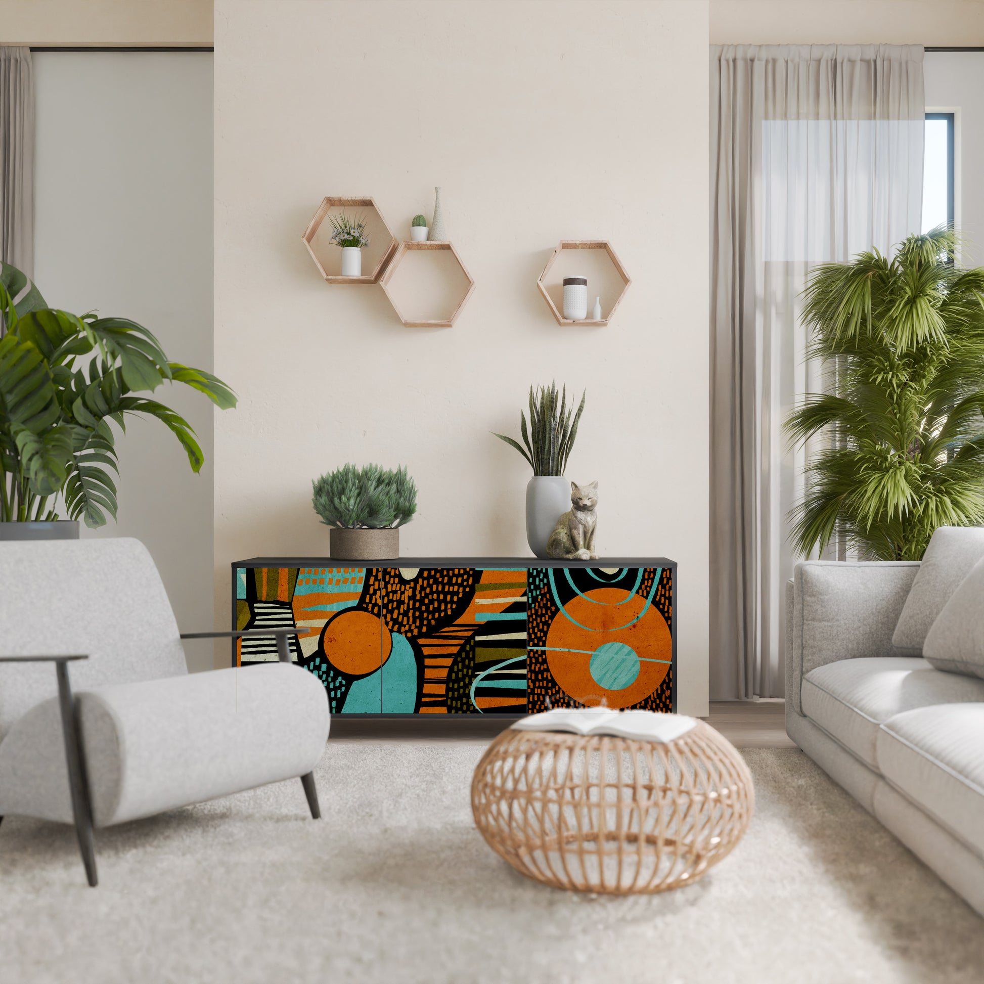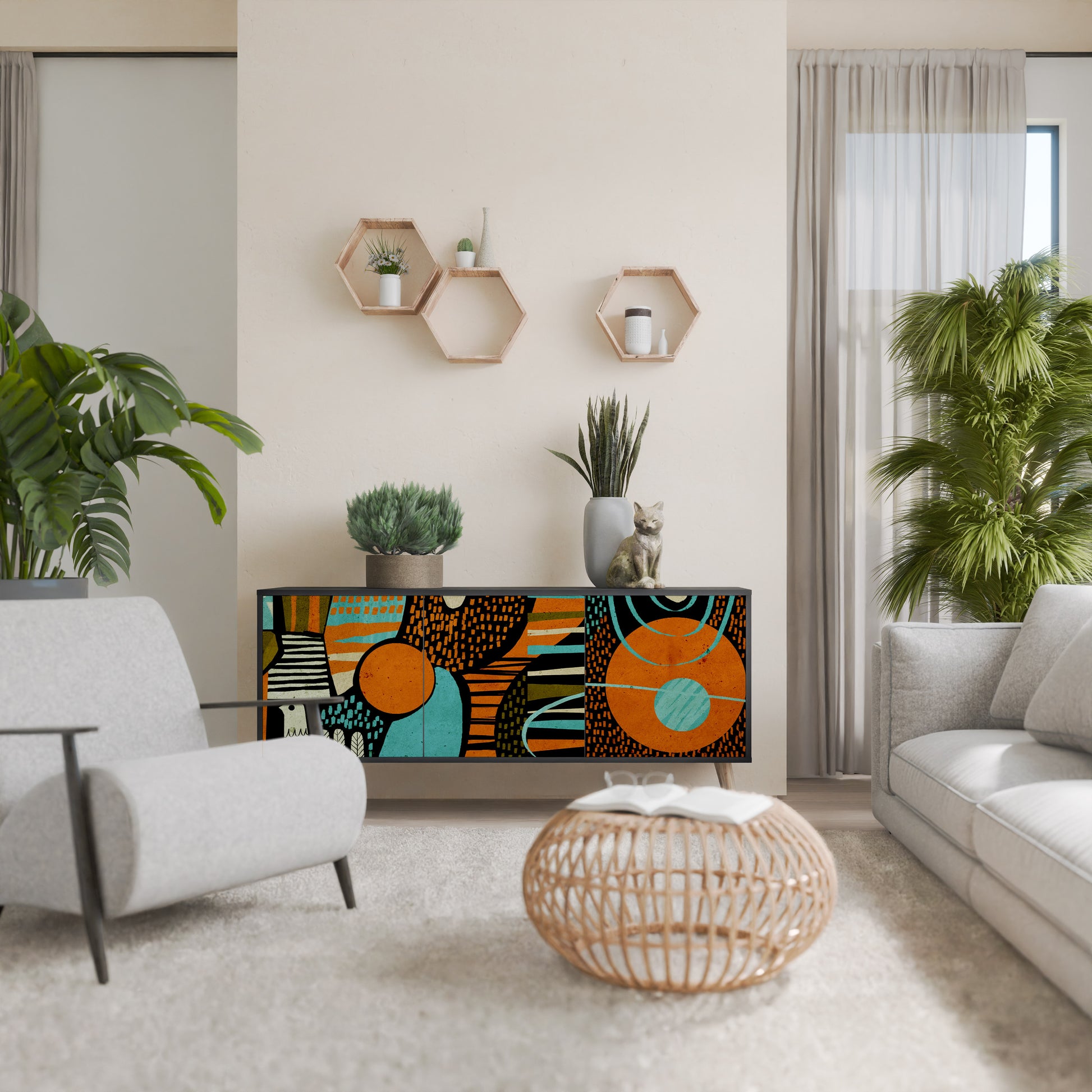 Elegance and functionality in a single piece of furniture – our 3-Door Sideboard with a black body is the perfect solution for lovers of stylish, modern interiors. The black body emphasizes the bold character of the furniture, while the fronts with a unique print add an artistic touch. It fits perfectly in the living room, bedroom, or office, complementing both modern and industrial arrangements.