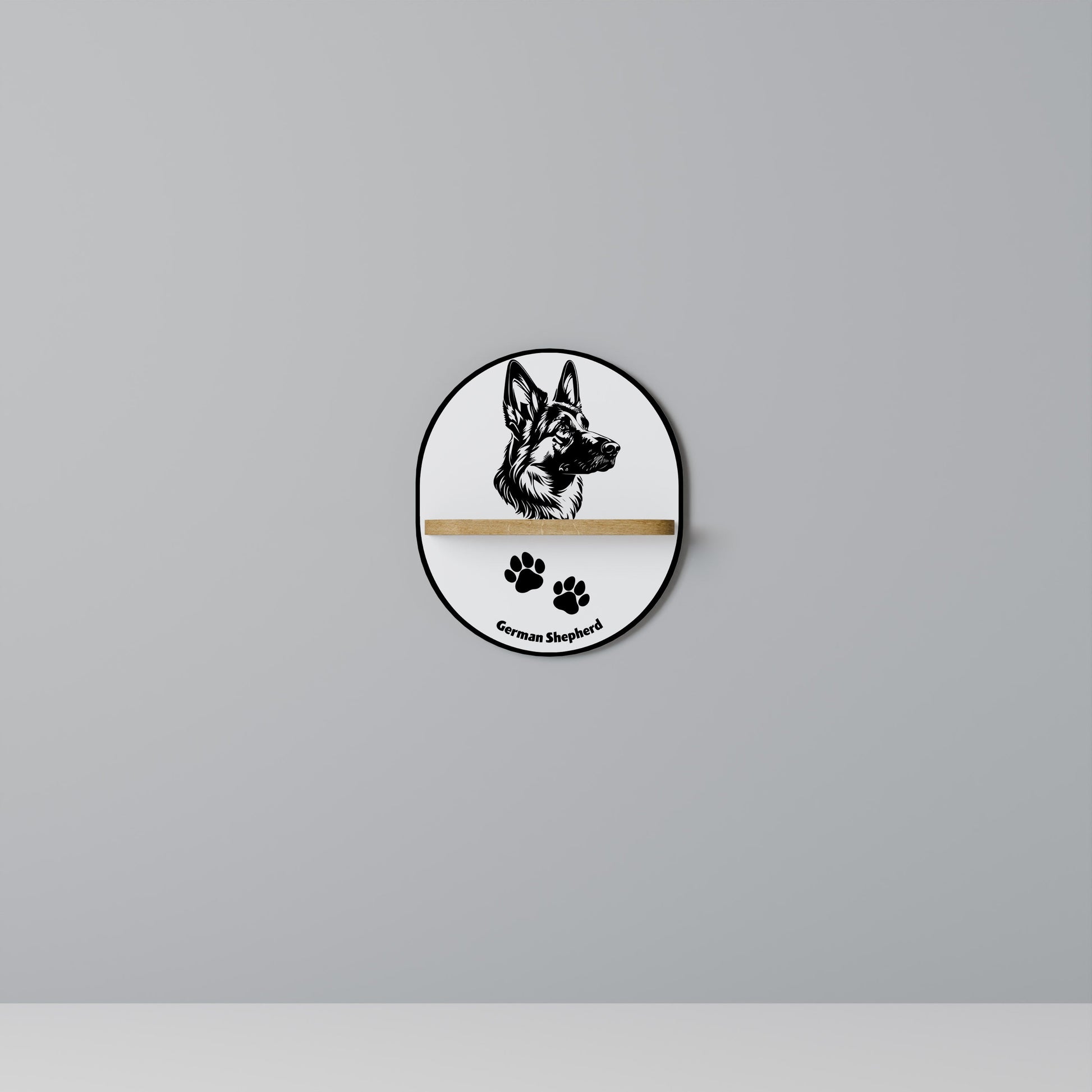 GERMAN SHEPARD Oval Art Shelf In Oak Effect