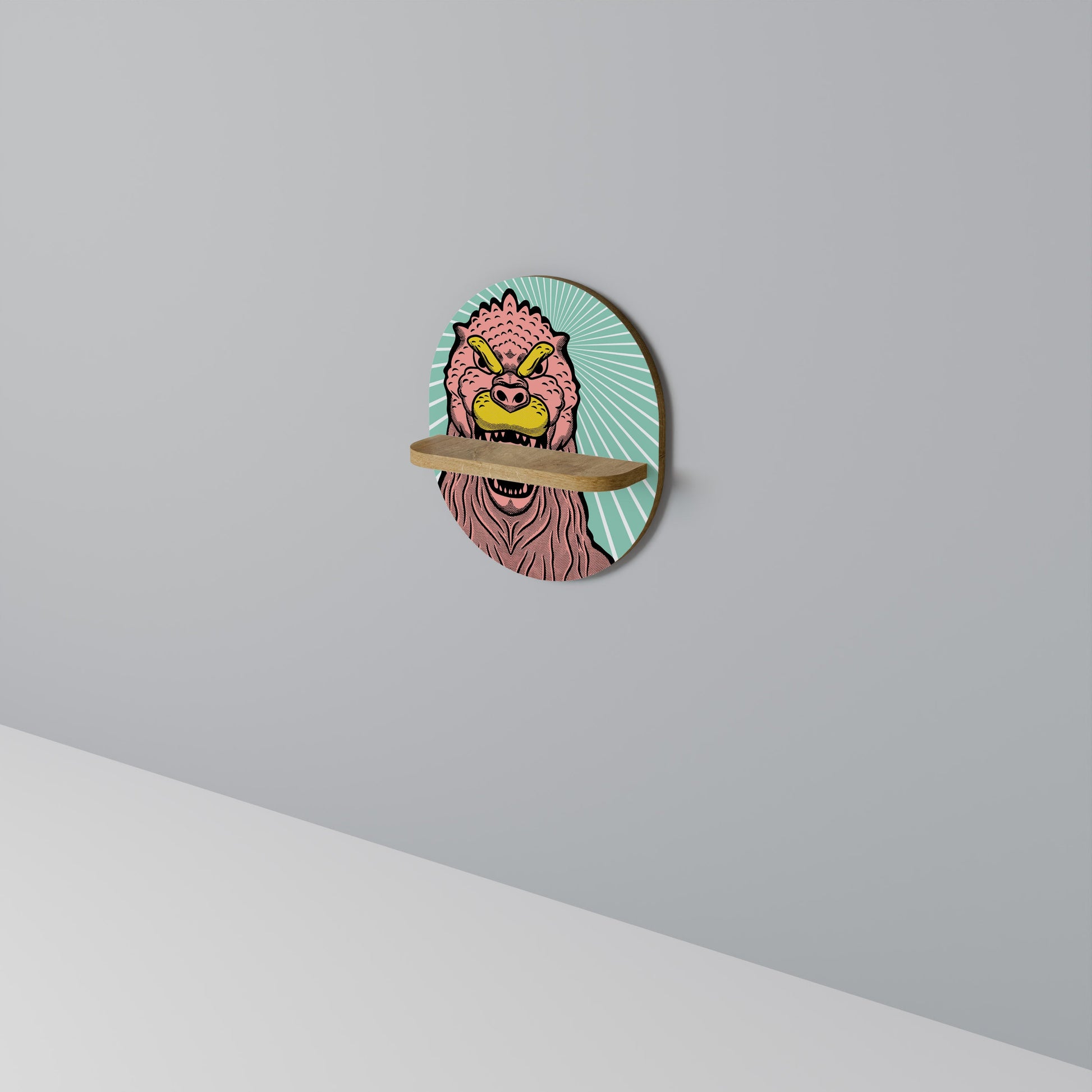 GODZILLA WELCOME Oval Art Shelf In Oak Effect