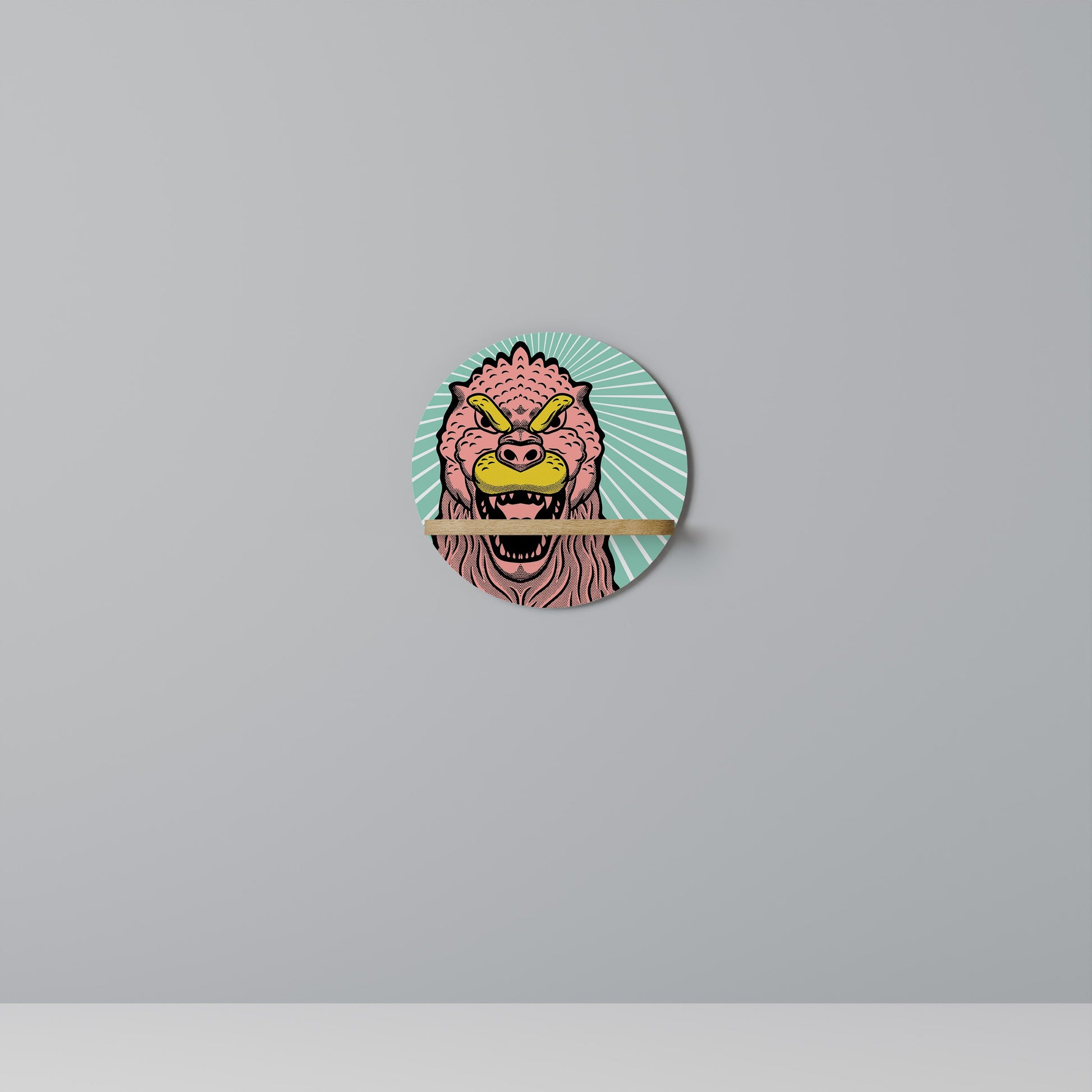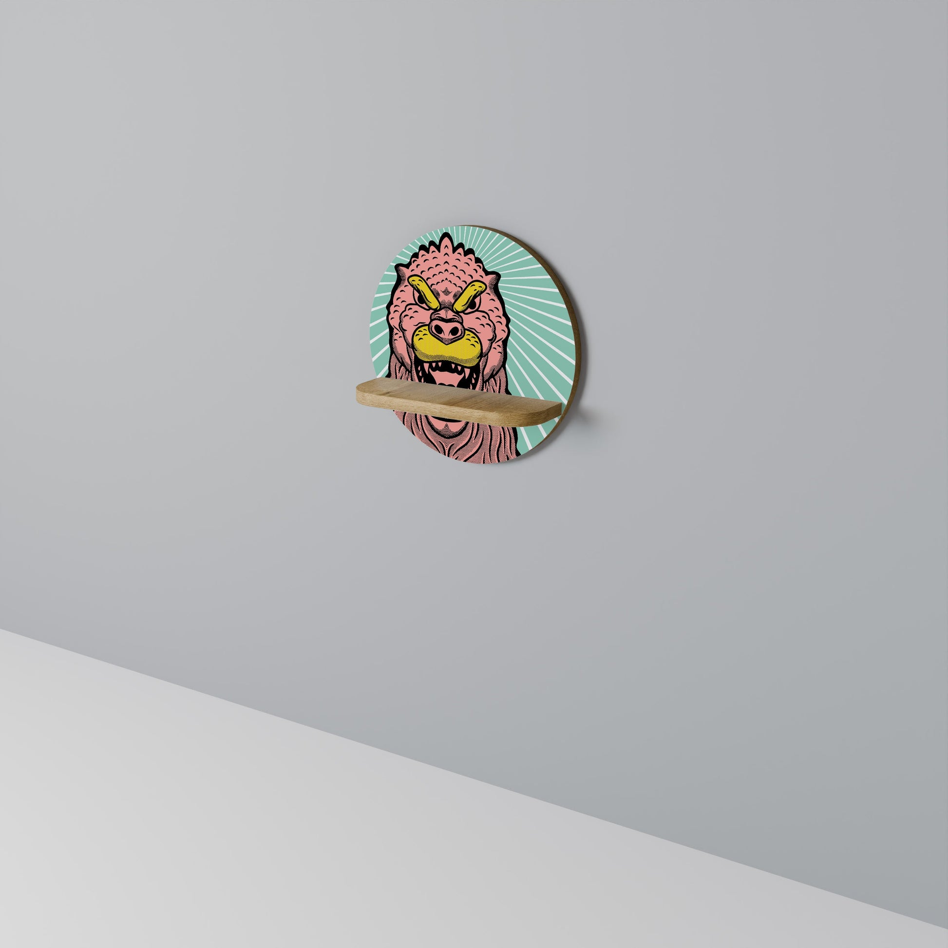 GODZILLA WELCOME Round Art Shelf In Oak Effect