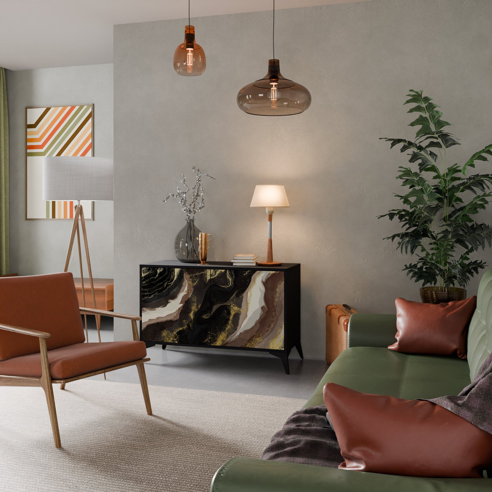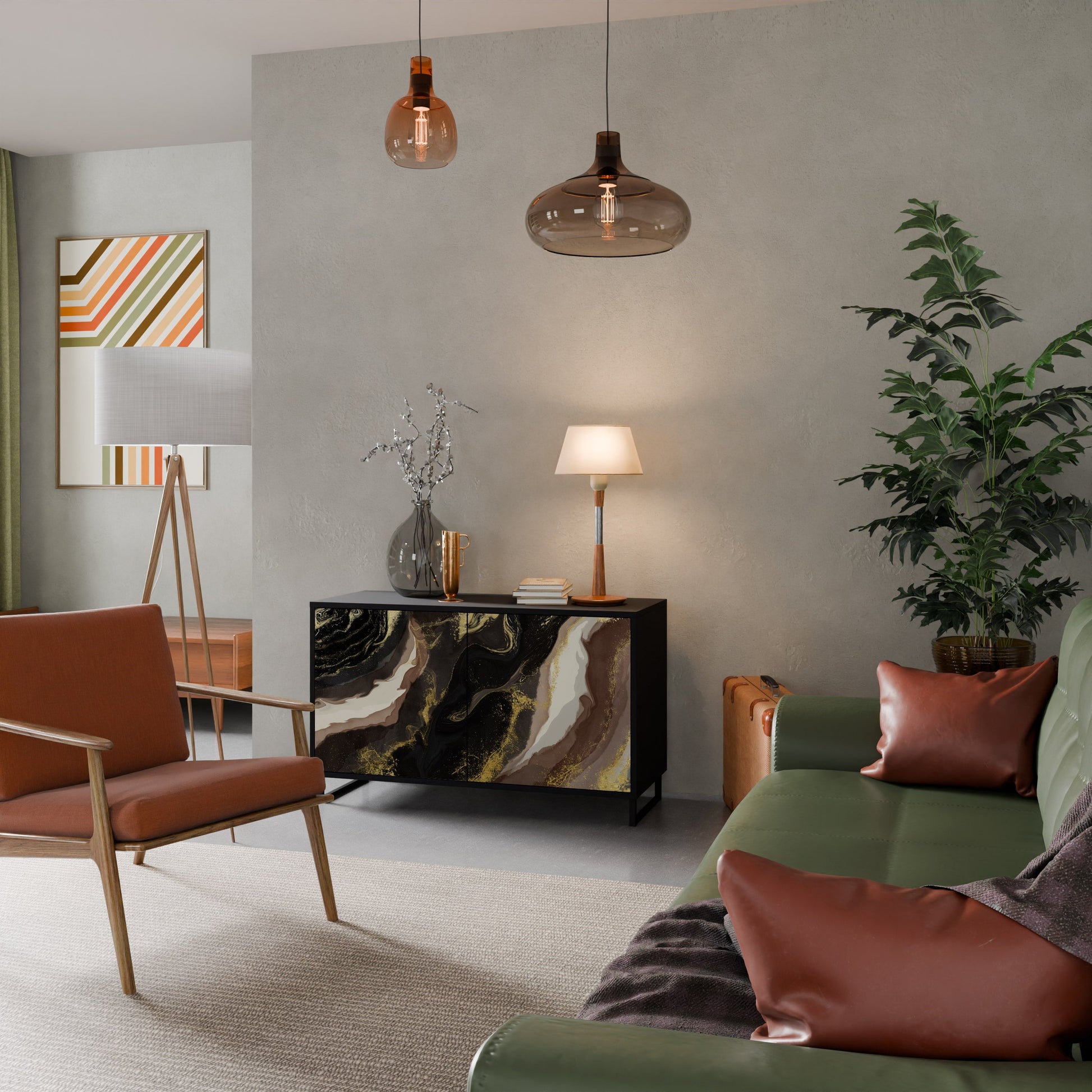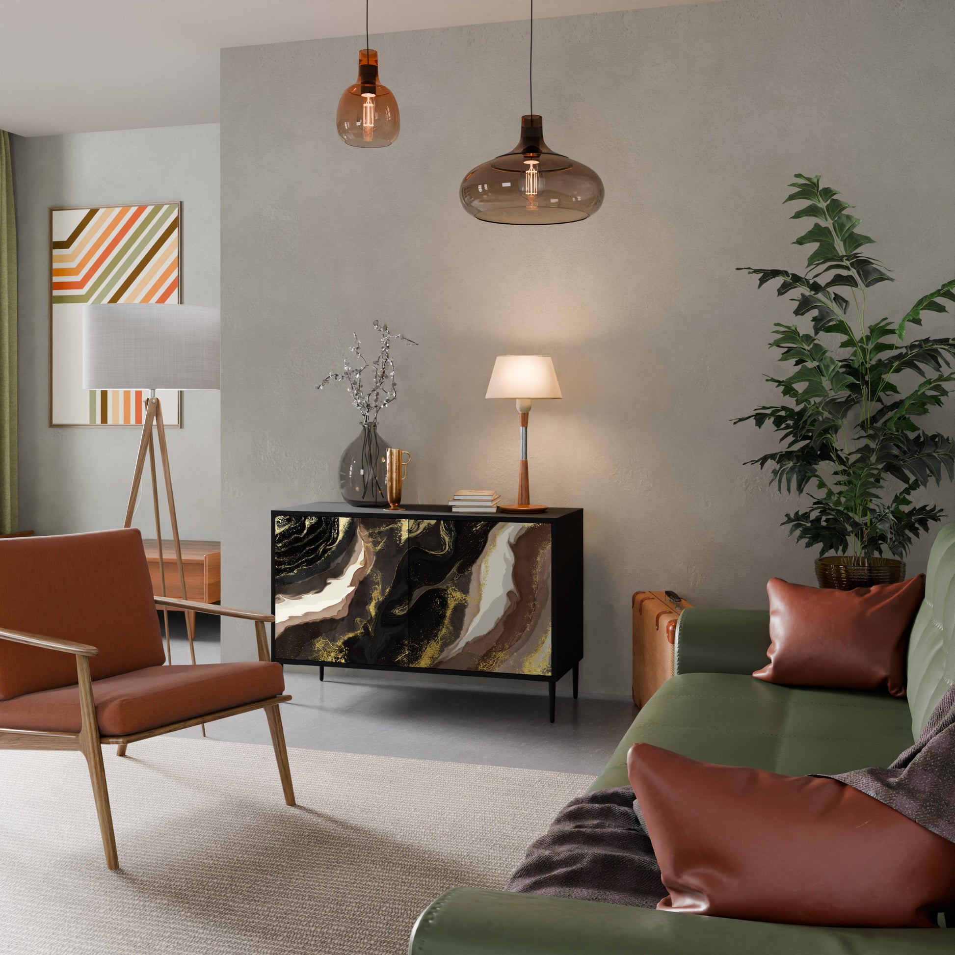 Elegance and functionality in a single piece of furniture – our 2-Door Sideboard with a black body is the perfect solution for lovers of stylish, modern interiors. The black body emphasizes the bold character of the furniture, while the fronts with a unique print add an artistic touch. It fits perfectly in the living room, bedroom, or office, complementing both modern and industrial arrangements.