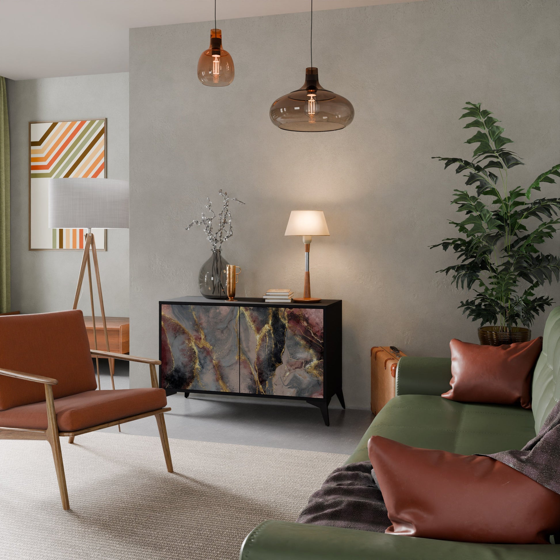 Elegance and functionality in a single piece of furniture – our 2-Door Sideboard with a black body is the perfect solution for lovers of stylish, modern interiors. The black body emphasizes the bold character of the furniture, while the fronts with a unique print add an artistic touch. It fits perfectly in the living room, bedroom, or office, complementing both modern and industrial arrangements.