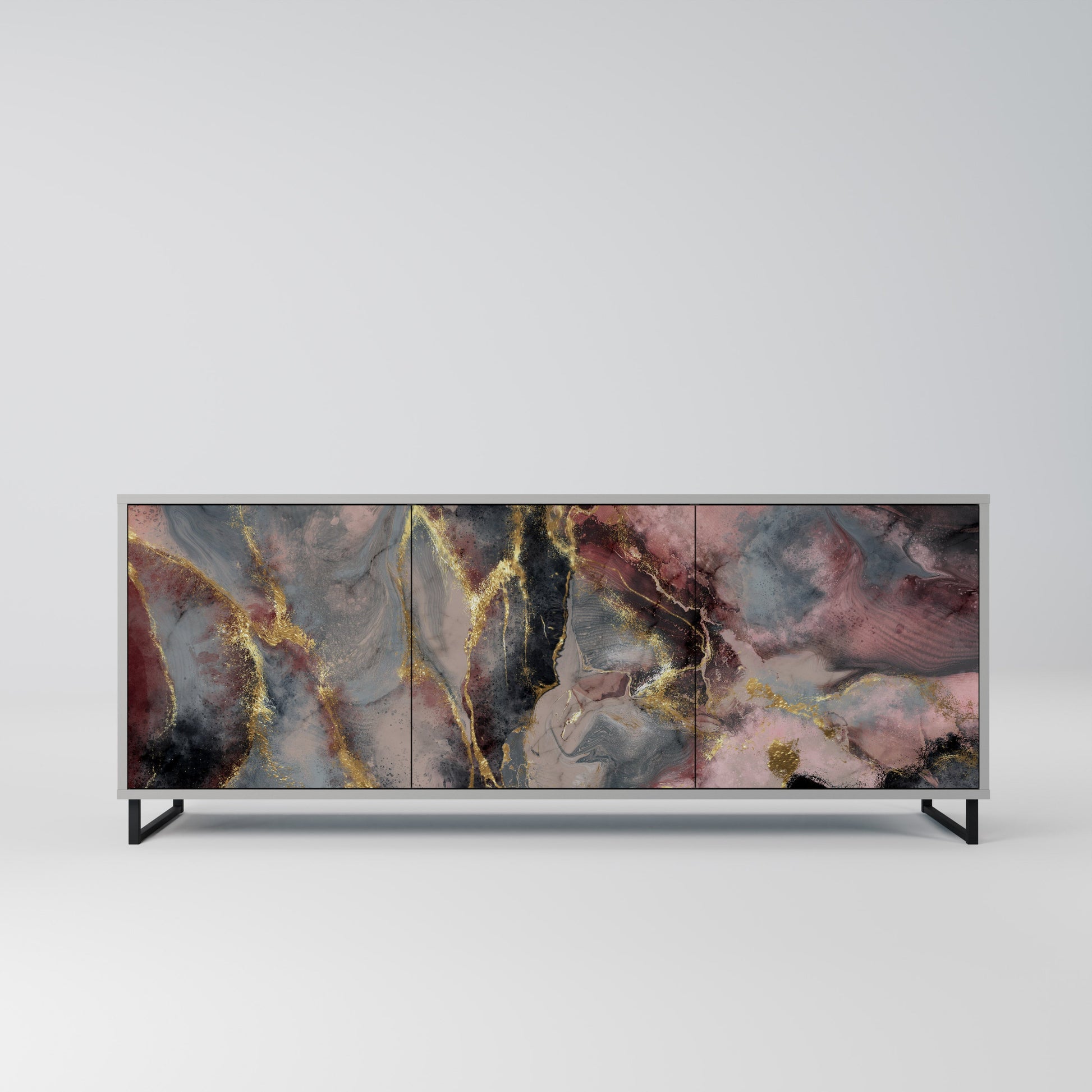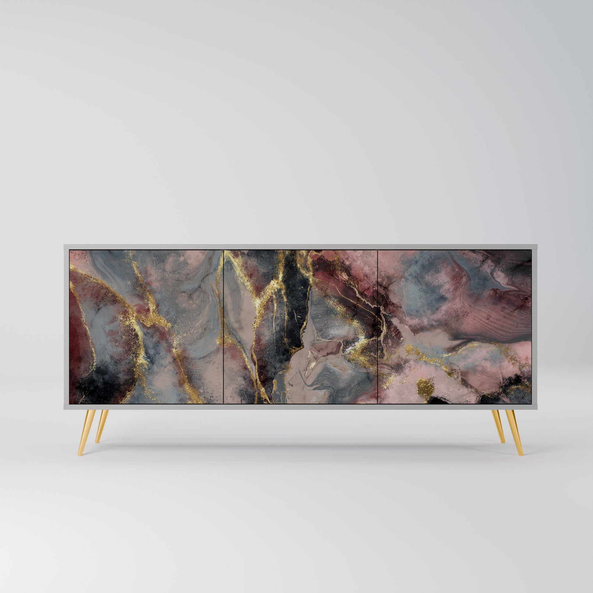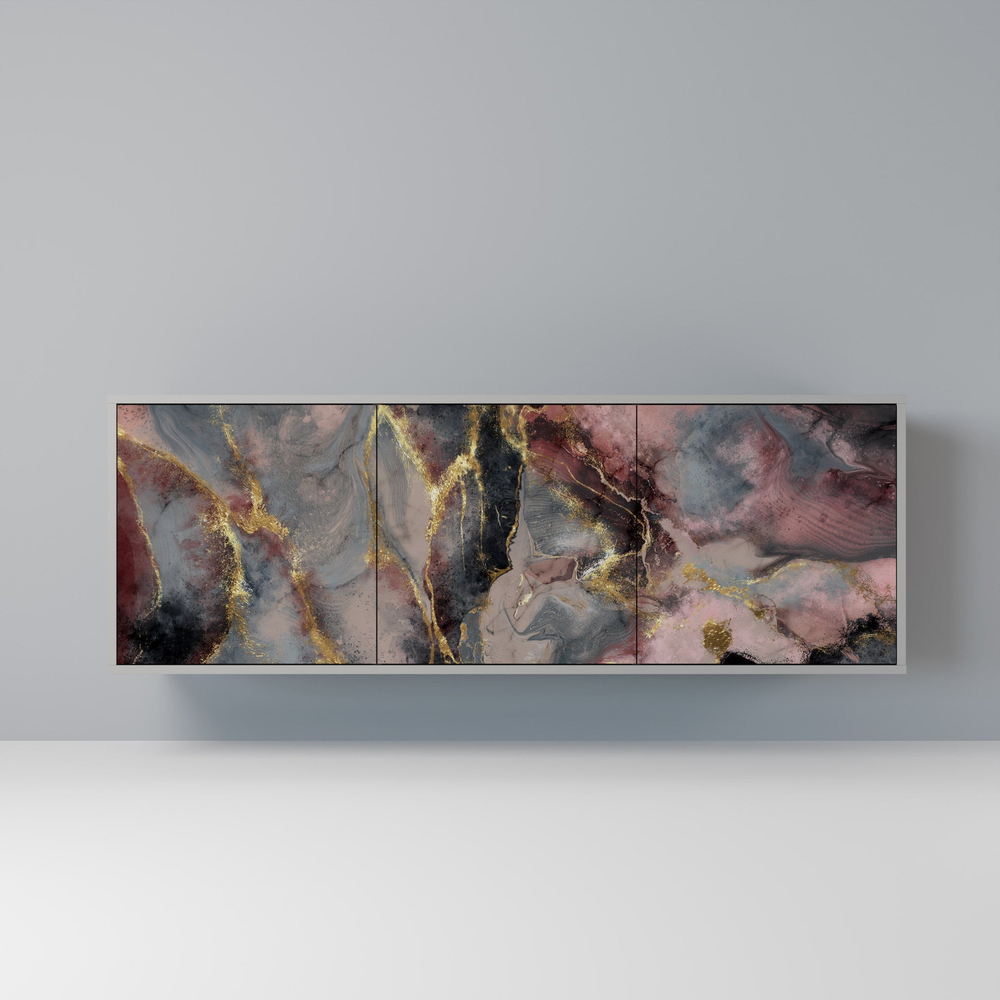 Elegance and functionality in a single piece of furniture – our 3-Door Sideboard with a grey body is the perfect solution for lovers of stylish, modern interiors. The grey body emphasizes the refined character of the furniture, while the fronts with a unique print add an artistic touch. It fits perfectly in the living room, bedroom, or office, complementing both modern and industrial arrangements.