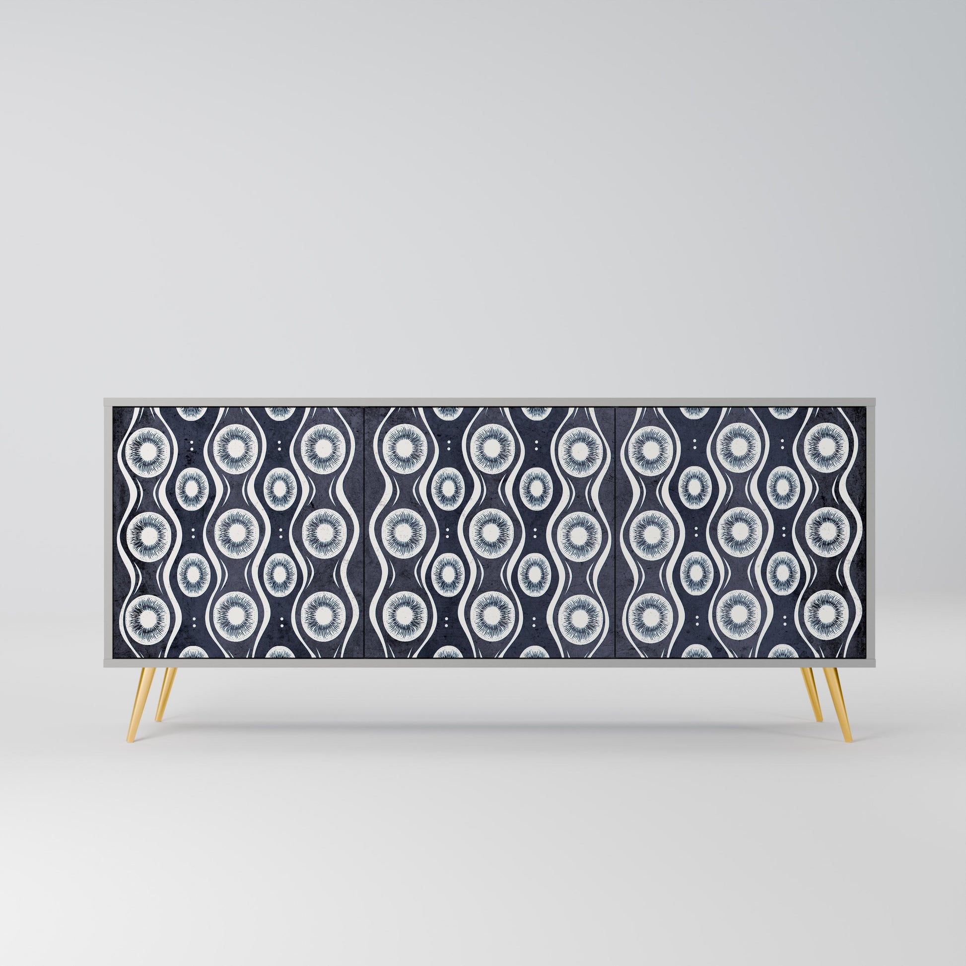 Elegance and functionality in a single piece of furniture – our 3-Door Sideboard with a grey body is the perfect solution for lovers of stylish, modern interiors. The grey body emphasizes the refined character of the furniture, while the fronts with a unique print add an artistic touch. It fits perfectly in the living room, bedroom, or office, complementing both modern and industrial arrangements.