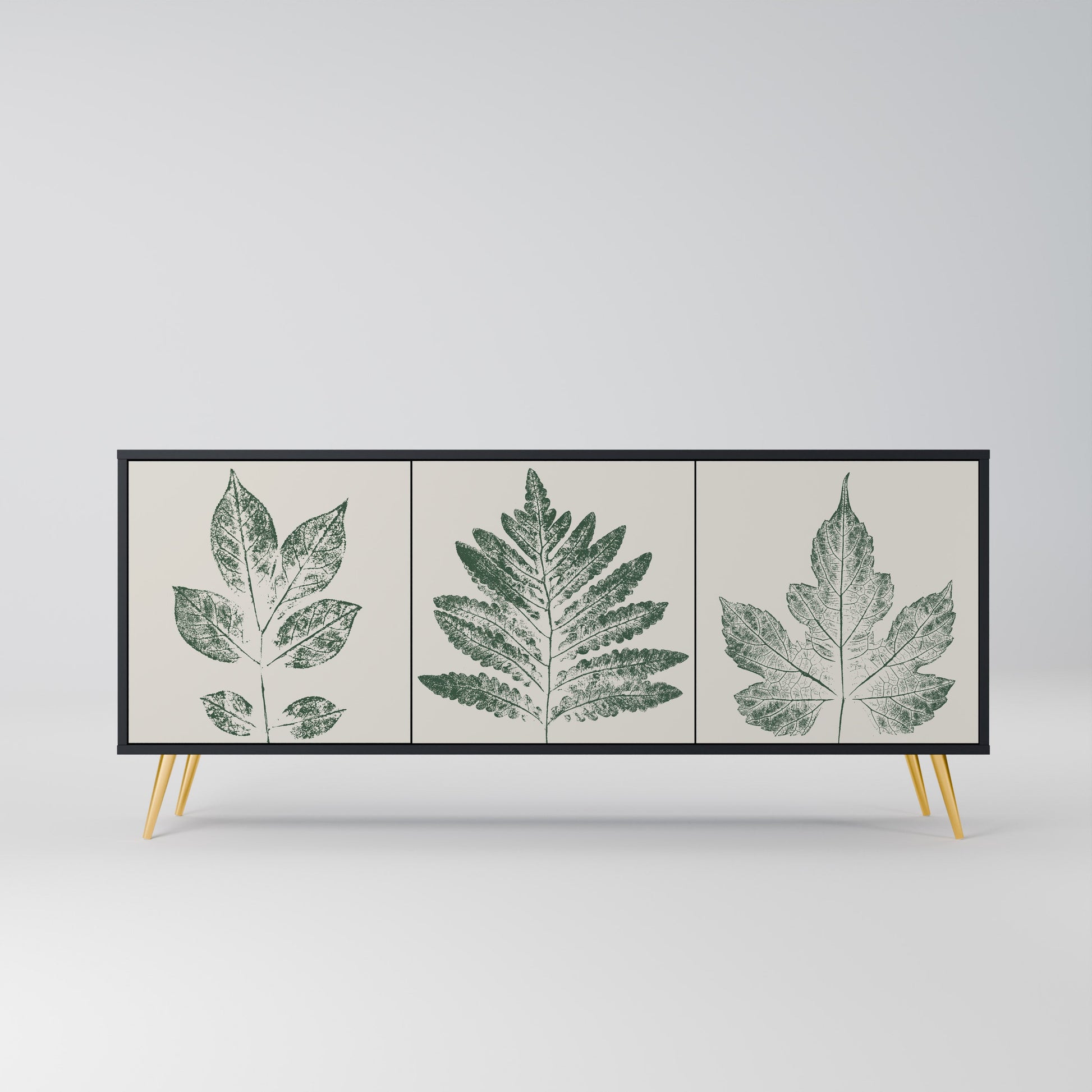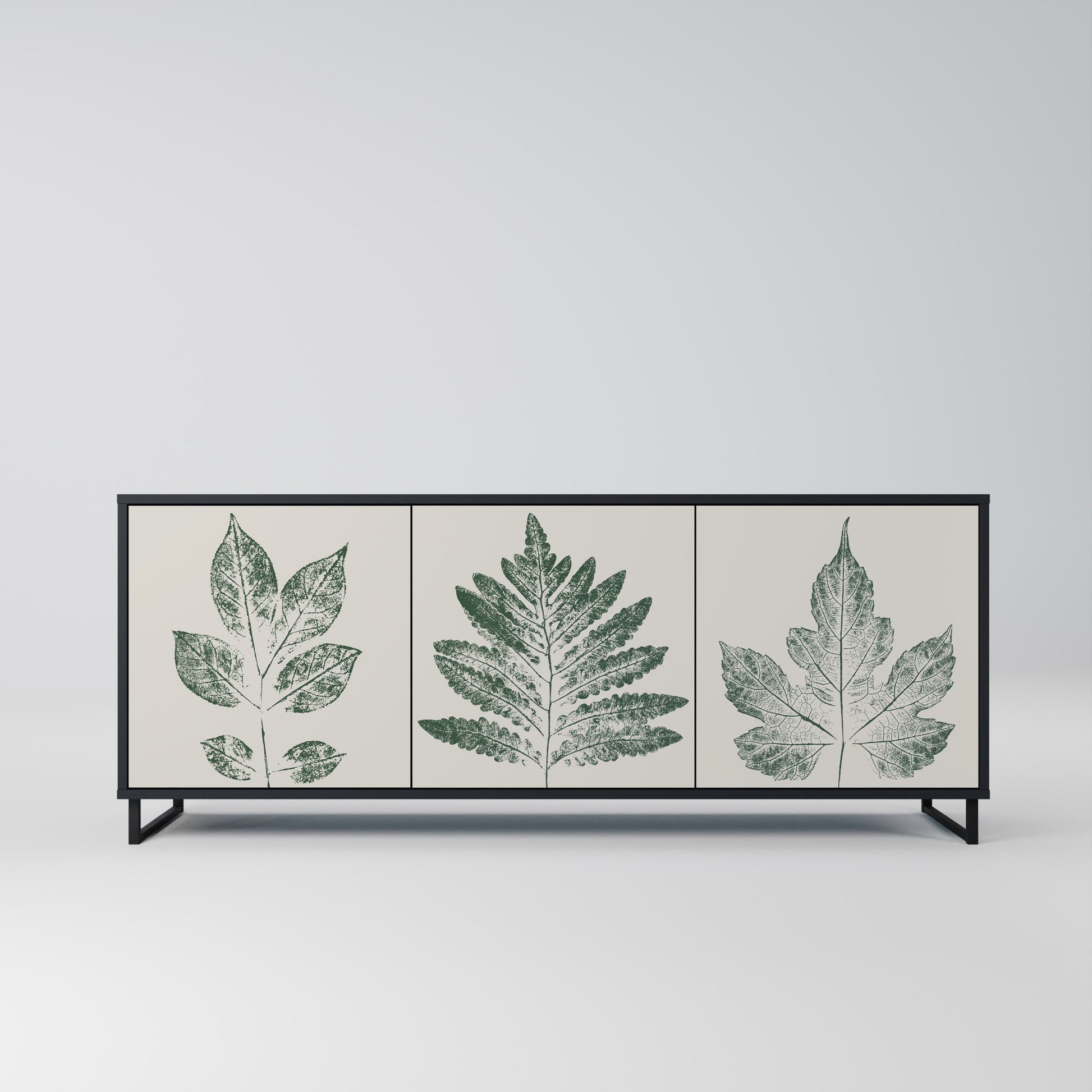 GREEN LEAFY STAMPS 3-Door Sideboard in Black Finish