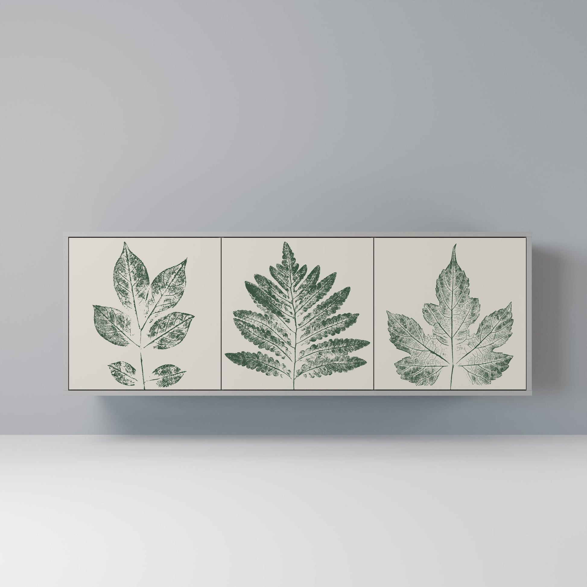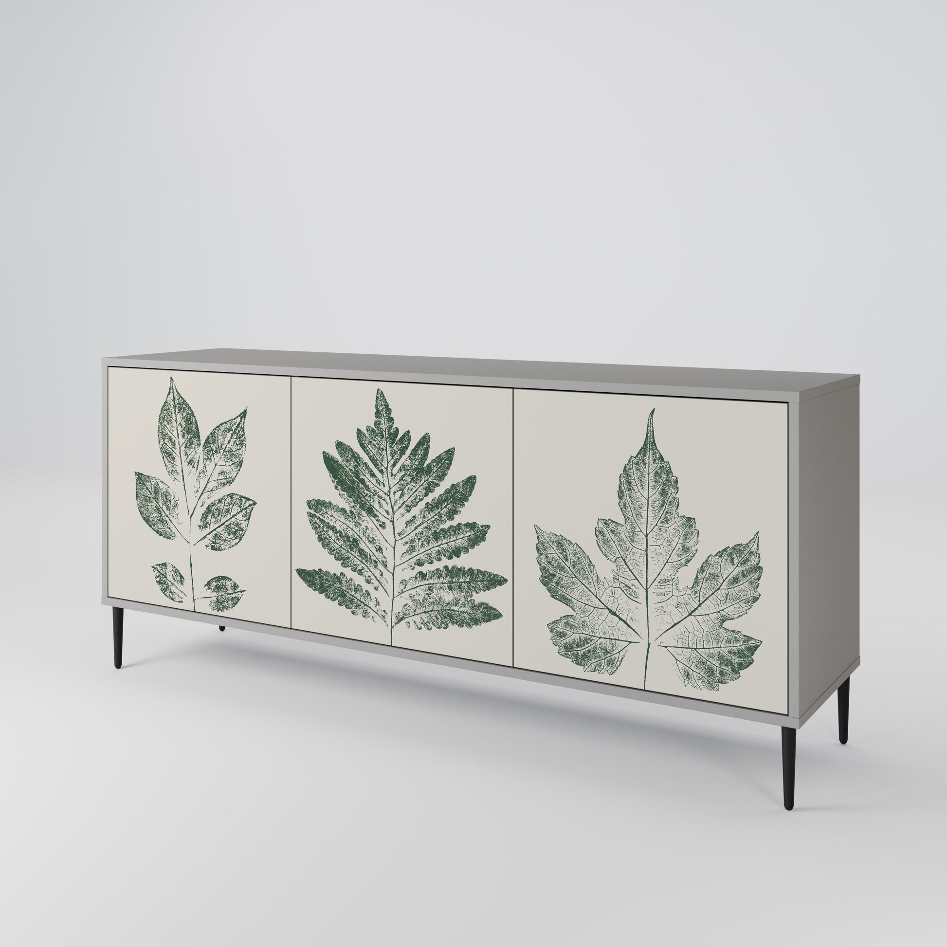 GREEN LEAFY STAMPS 3-Door Sideboard in Grey Finish