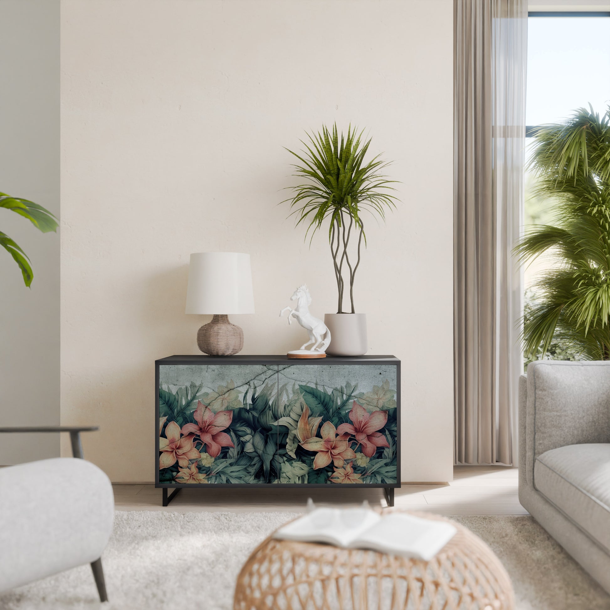HEAVENLY BLOOM 2-Door Sideboard in Black Finish