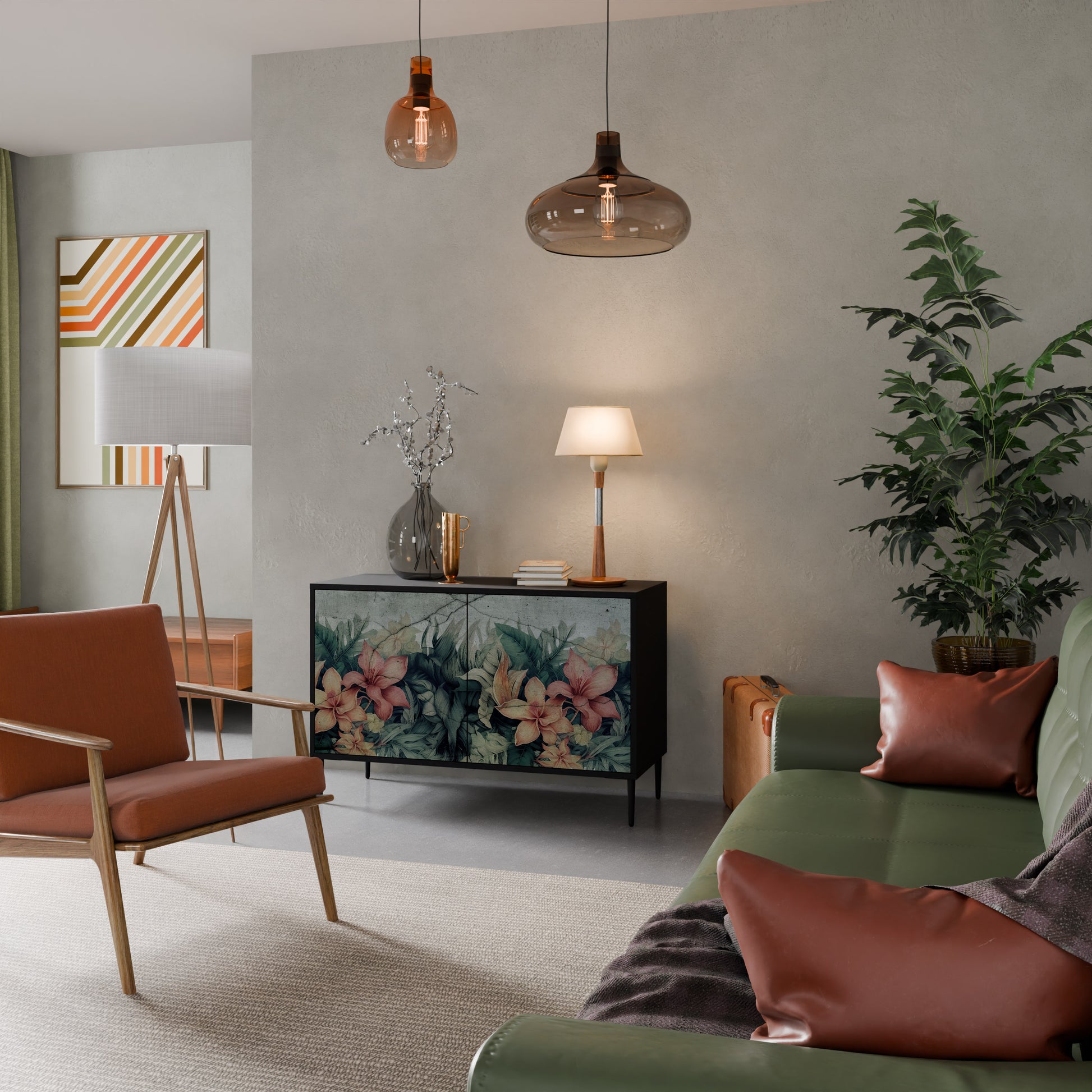 Elegance and functionality in a single piece of furniture – our 2-Door Sideboard with a black body is the perfect solution for lovers of stylish, modern interiors. The black body emphasizes the bold character of the furniture, while the fronts with a unique print add an artistic touch. It fits perfectly in the living room, bedroom, or office, complementing both modern and industrial arrangements.