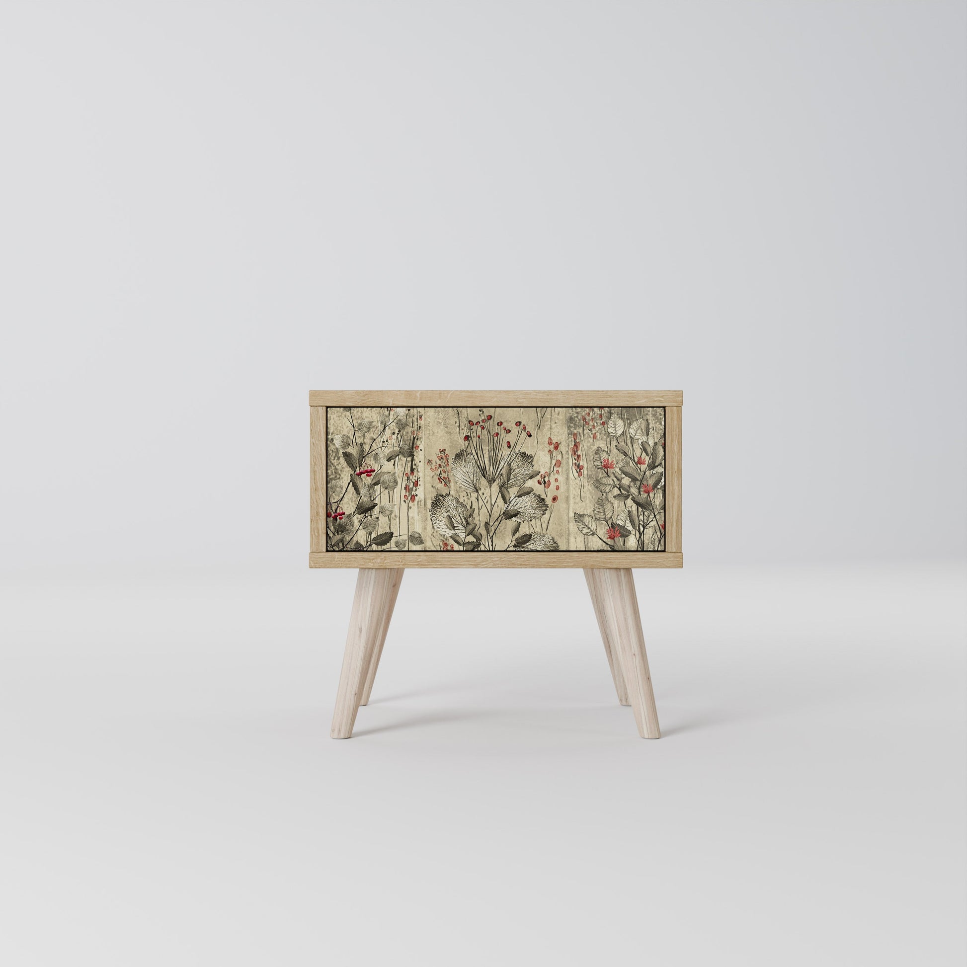 Discover functionality and elegance in a compact form with our bedside unit with a drawer. This practical and stylish piece of furniture perfectly combines the natural beauty of wood with modern design on the drawer front, creating a harmonious element for any bedroom.