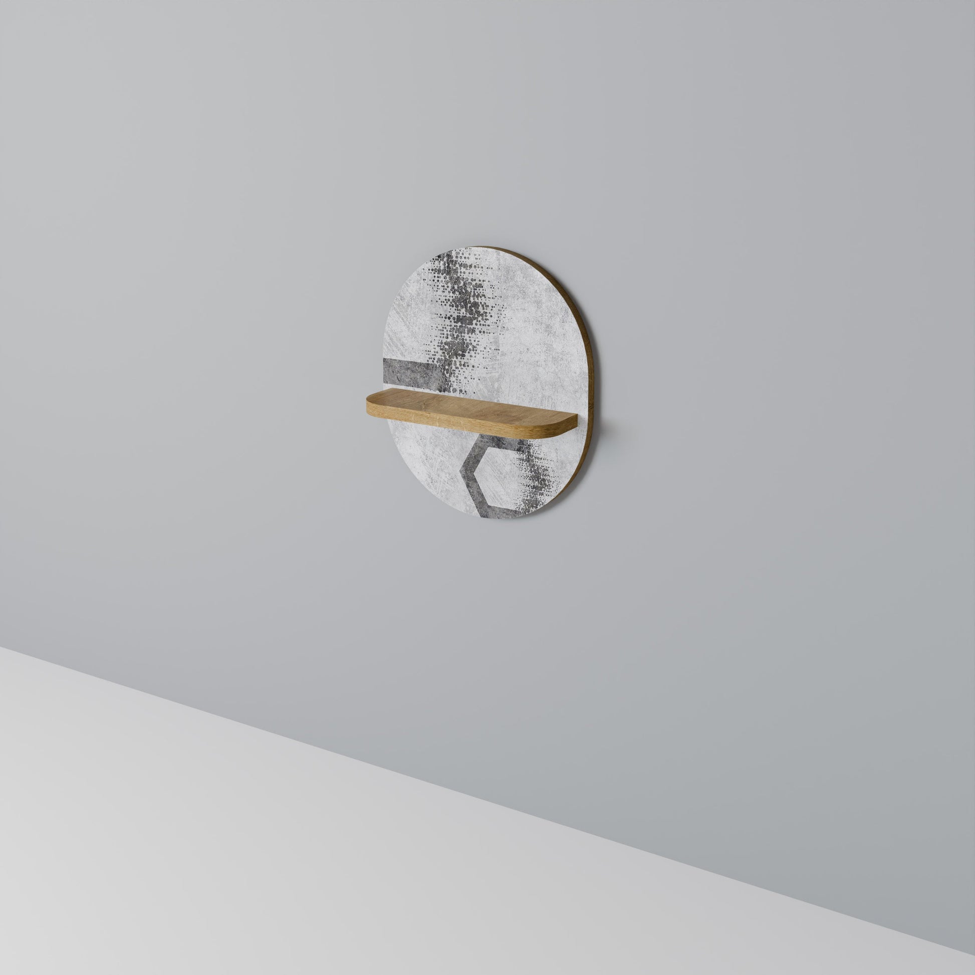 HEXAGONAL FIGURES Oval Art Shelf In Oak Effect