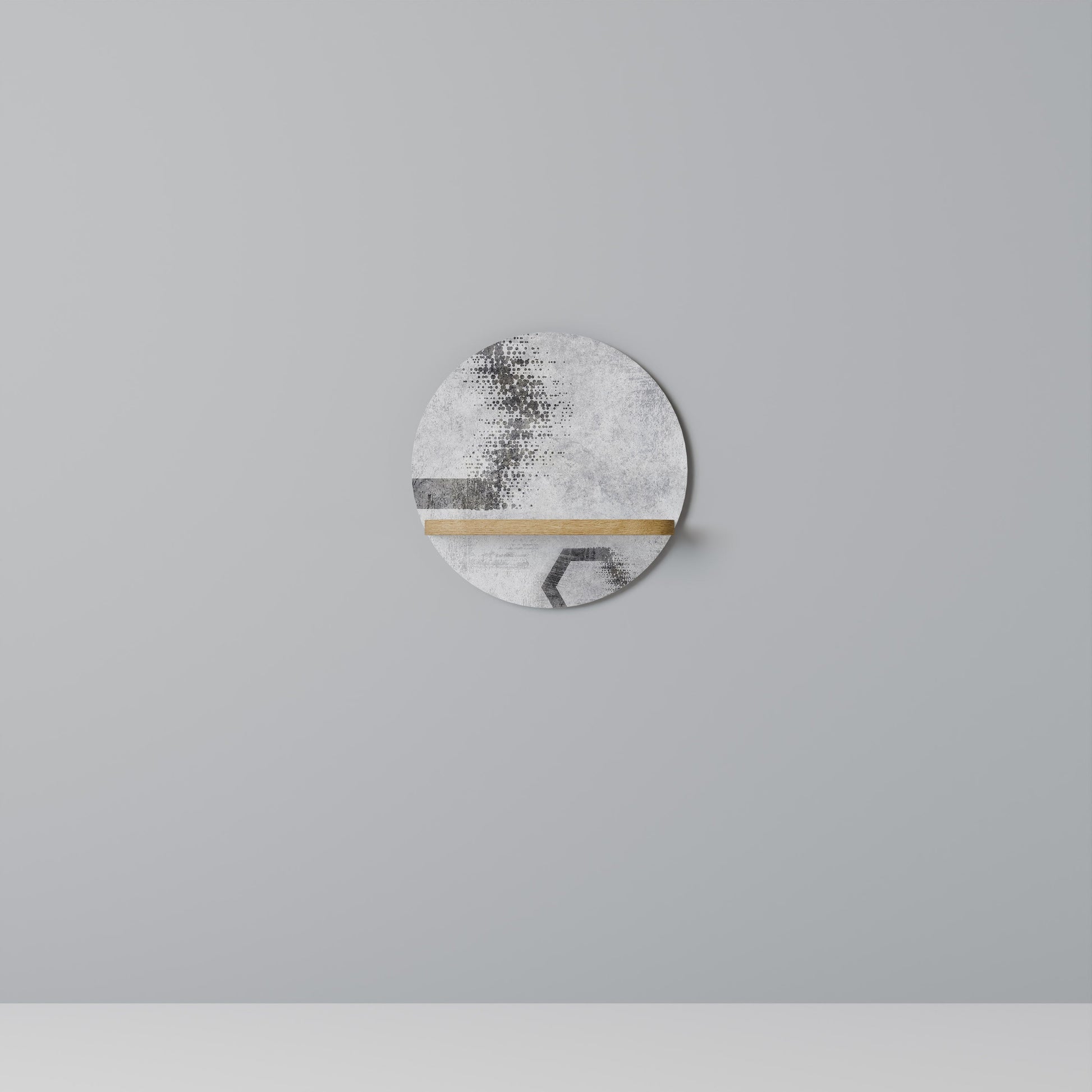 HEXAGONAL FIGURES Round Art Shelf In Oak Effect