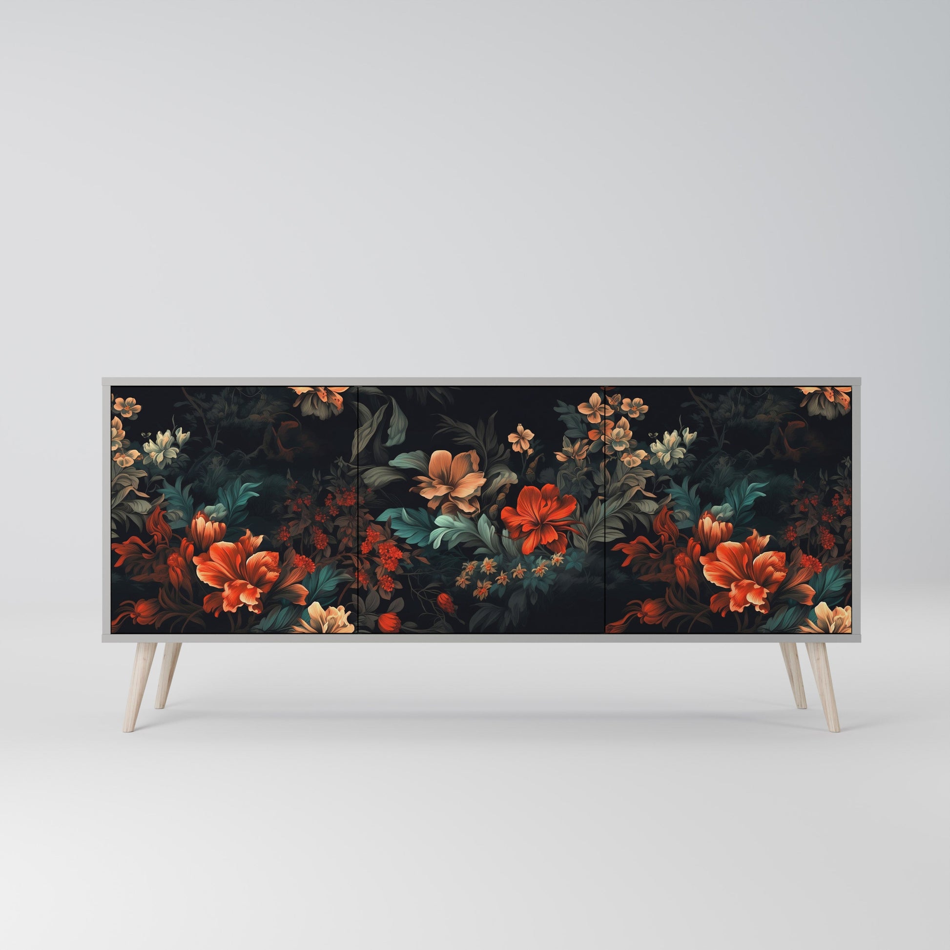 IMAGINARY BLOSSOM 3-Door Sideboard in Grey Finish