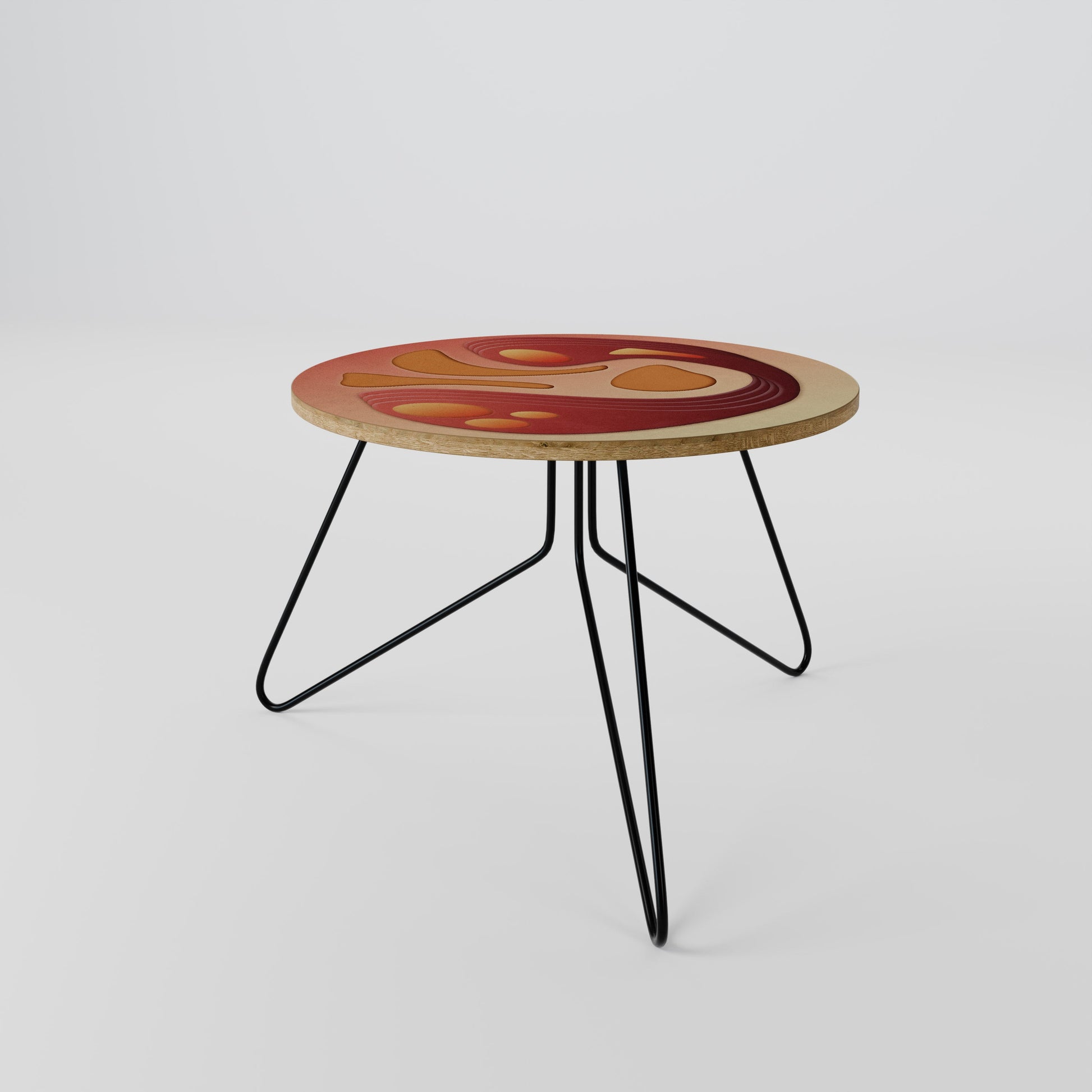 The tabletop features a high-quality printed motif, adding a distinctive artistic accent to your space. Crafted from durable chipboard covered with laminate, it ensures long-lasting use and resistance to daily wear.