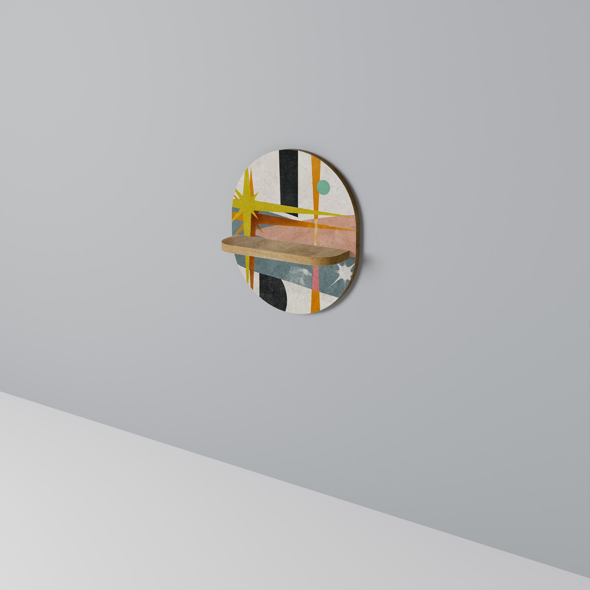 INTERSTELLAR VIBES Oval Art Shelf In Oak Effect