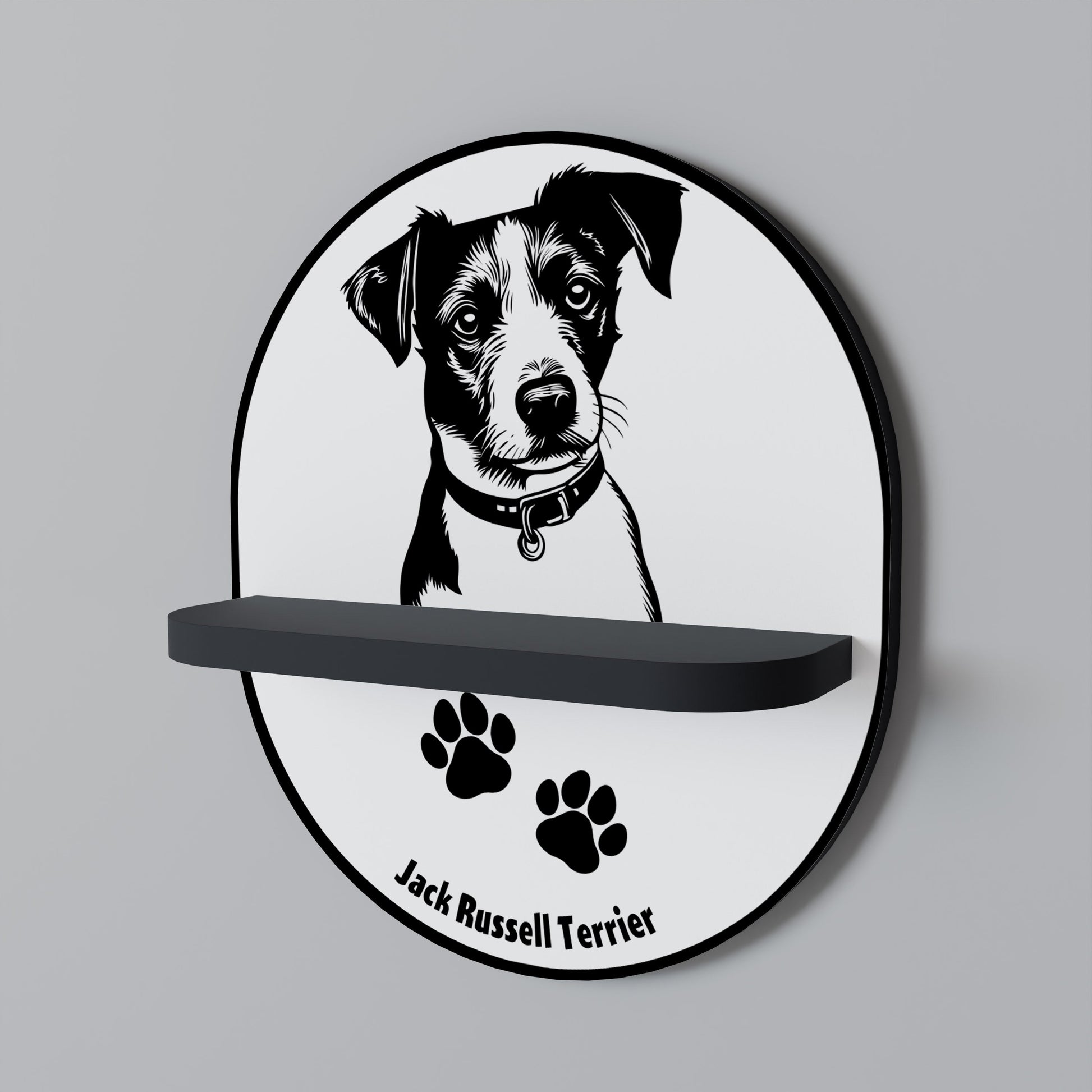JACK RUSSEL TERRIER Oval Art Shelf In Black Finish
