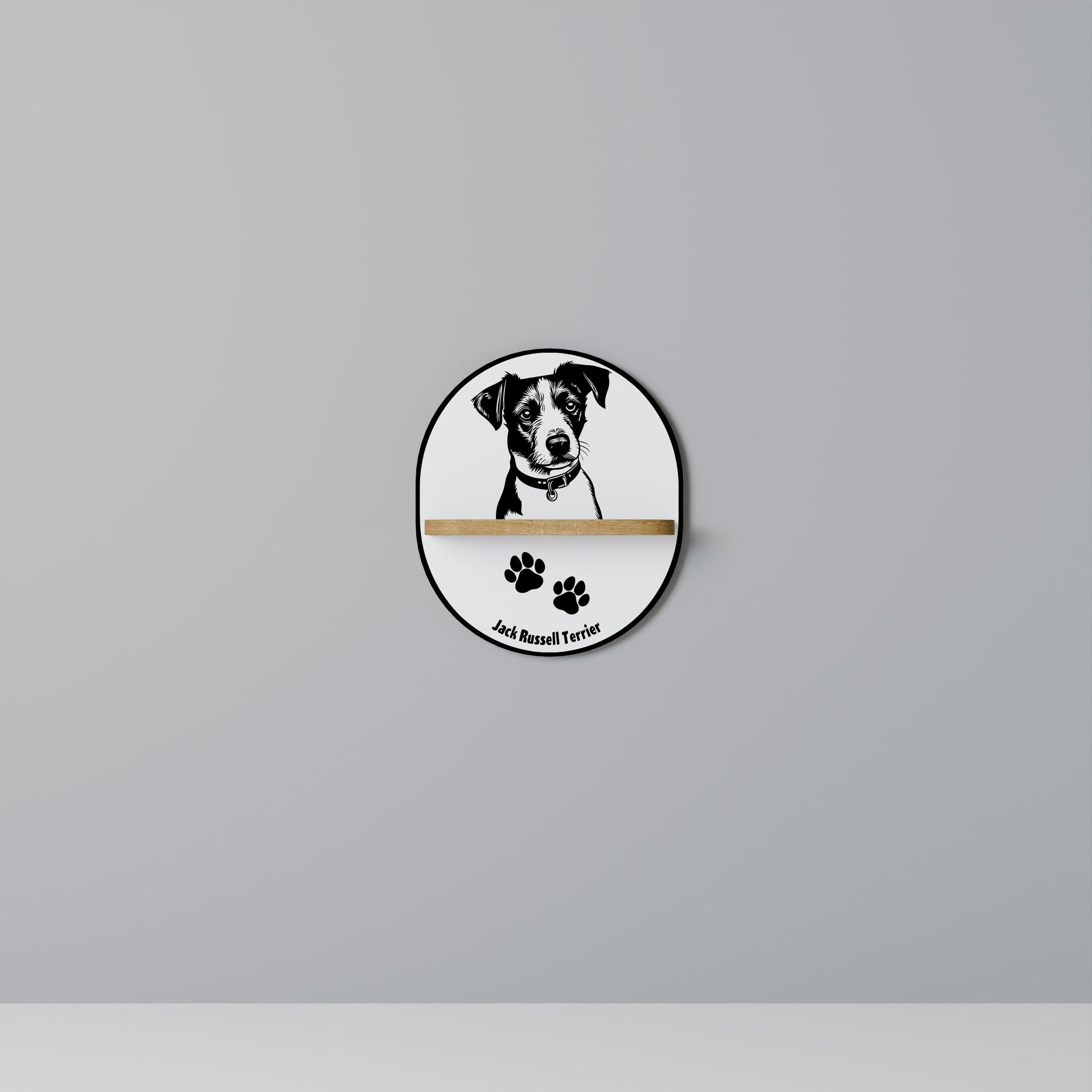 JACK RUSSEL TERRIER Oval Art Shelf In Oak Effect
