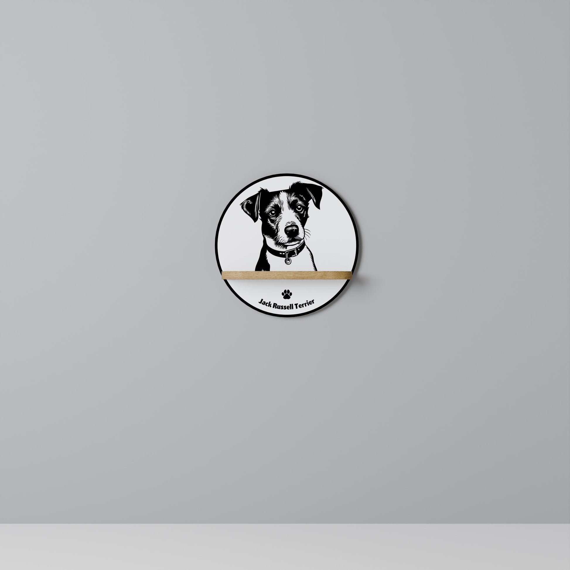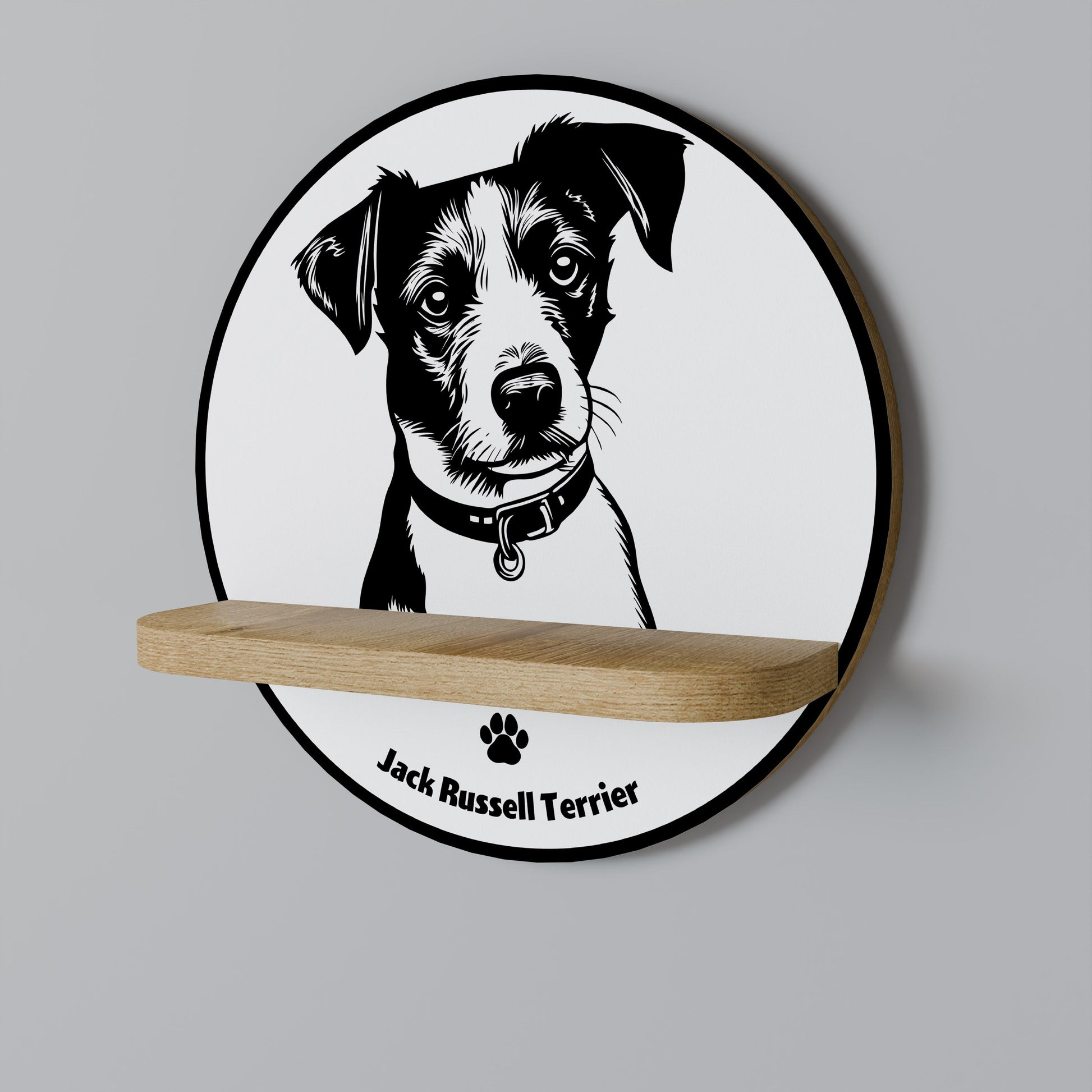 JACK RUSSEL TERRIER Round Art Shelf In Oak Effect